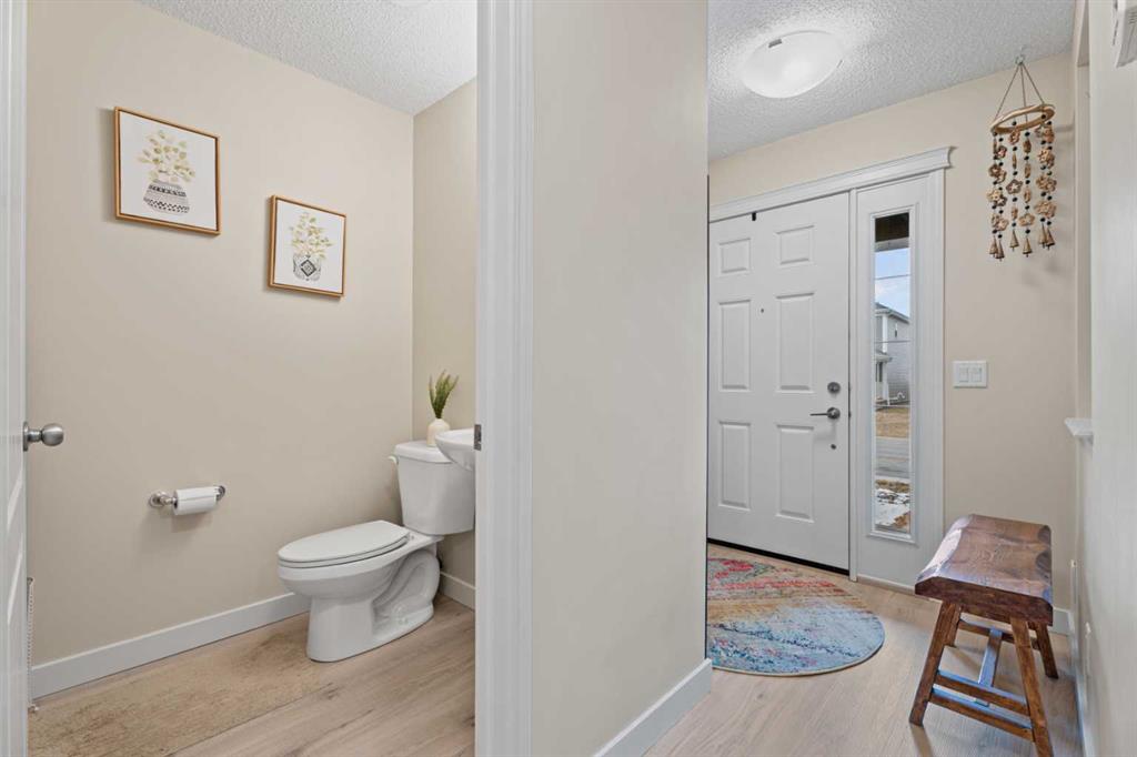 The main level features a bright and open layout with a stylish kitchen complete with granite countertops, stainless steel appliances, and a convenient eat-up bar. The adjoining dining area and cozy living room with gas fireplace create an ideal space for both everyday living and entertaining. A 2-piece bathroom completes the main floor.