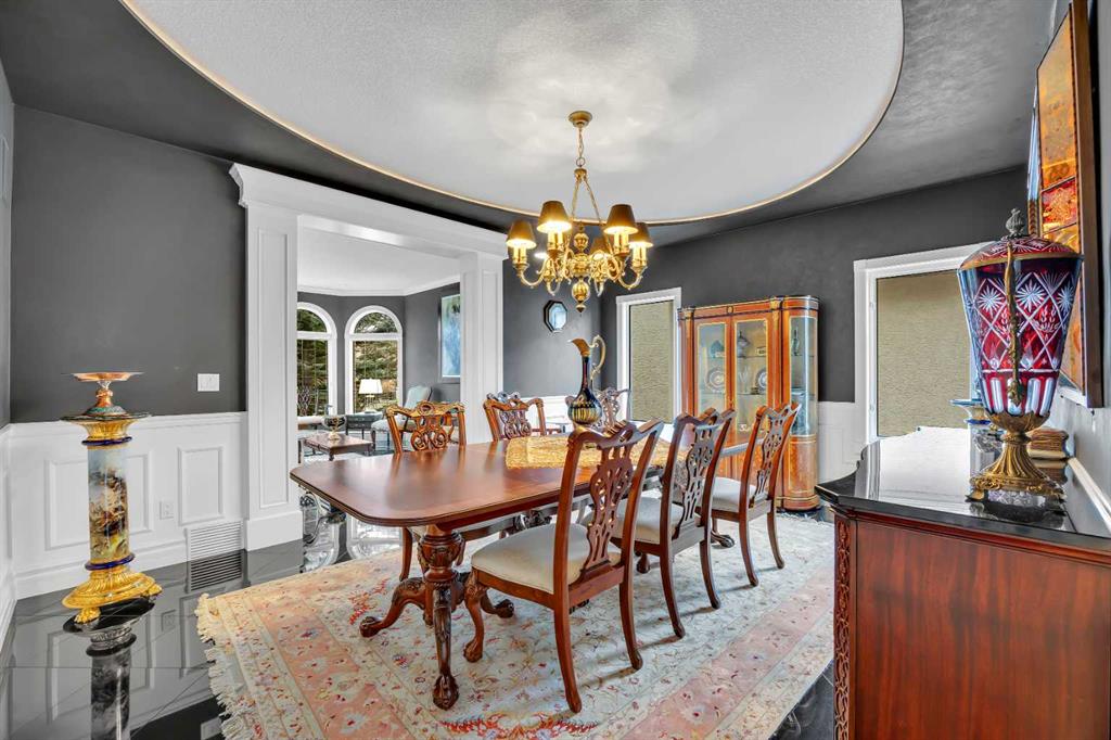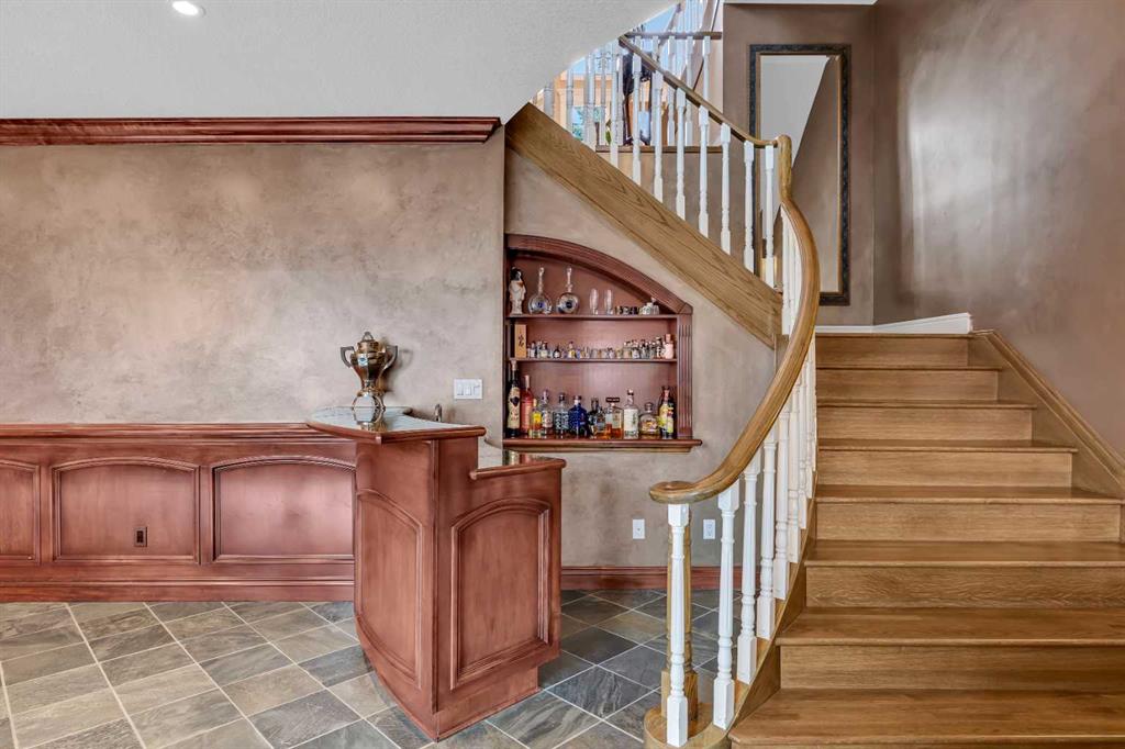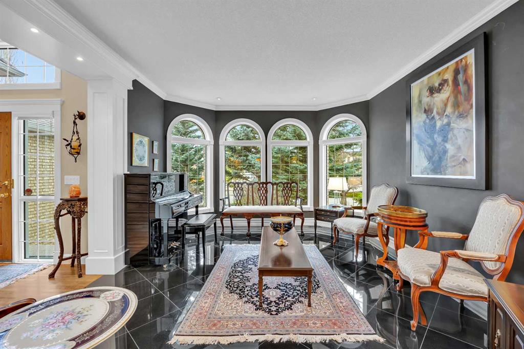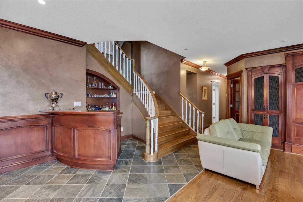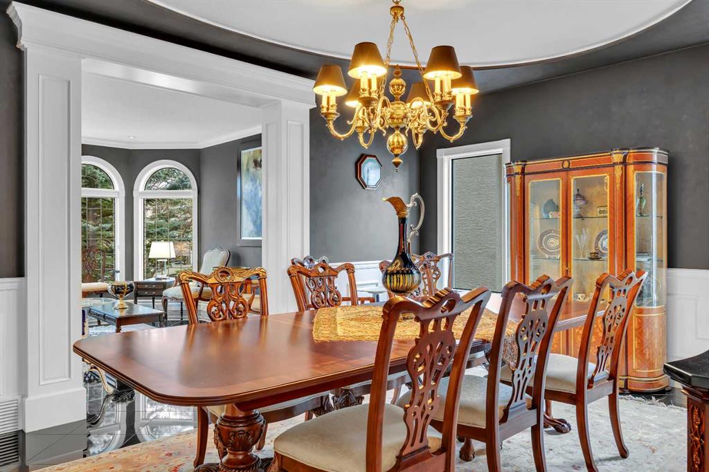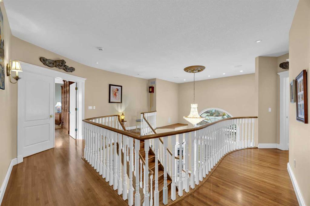 From the moment you step inside, the scale and attention to detail are immediately apparent. A grand dual access staircase, luxury crystal chandelier, and custom millwork create a striking first impression, while the thoughtful layout balances refined entertaining with comfortable everyday living. The acoustically designed piano room is also ideal as a whisky lounge, adding a unique and sophisticated touch.