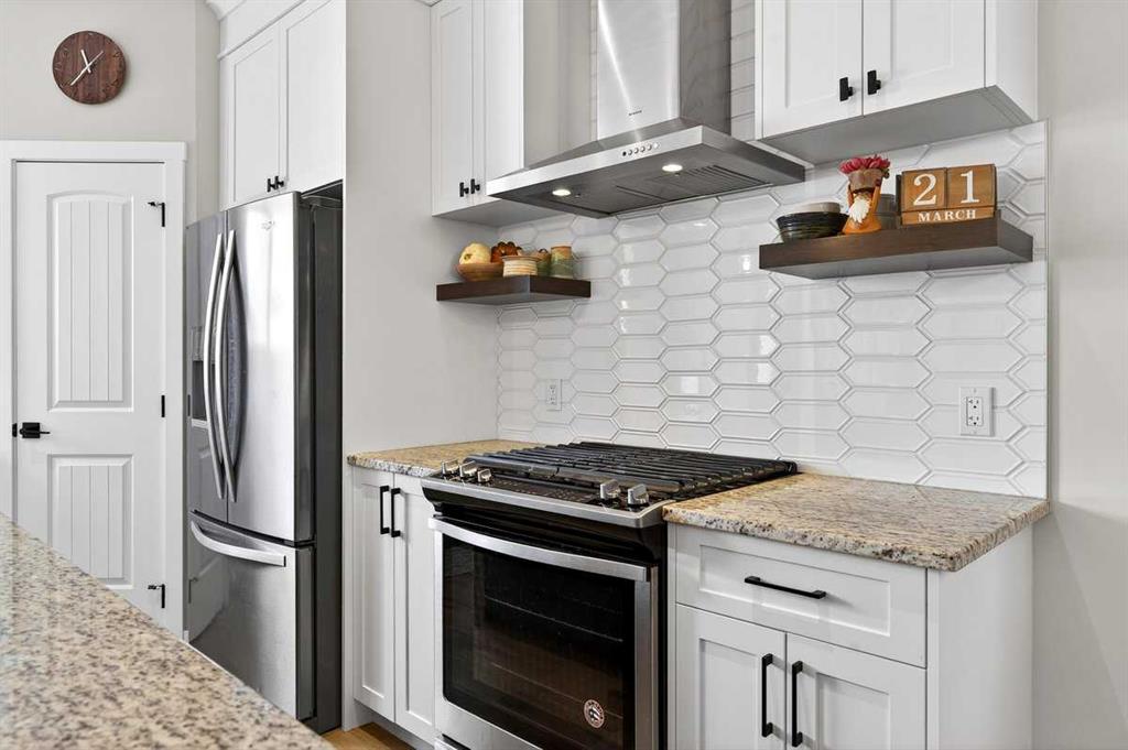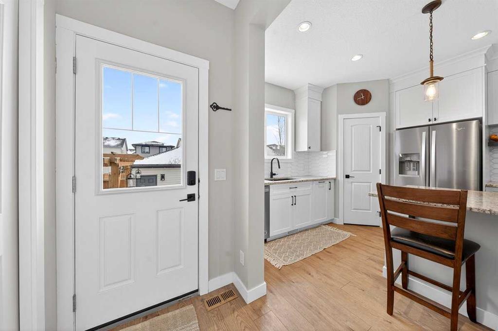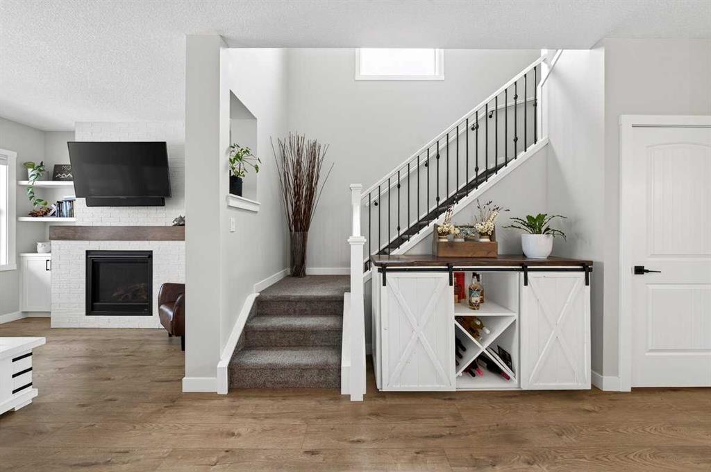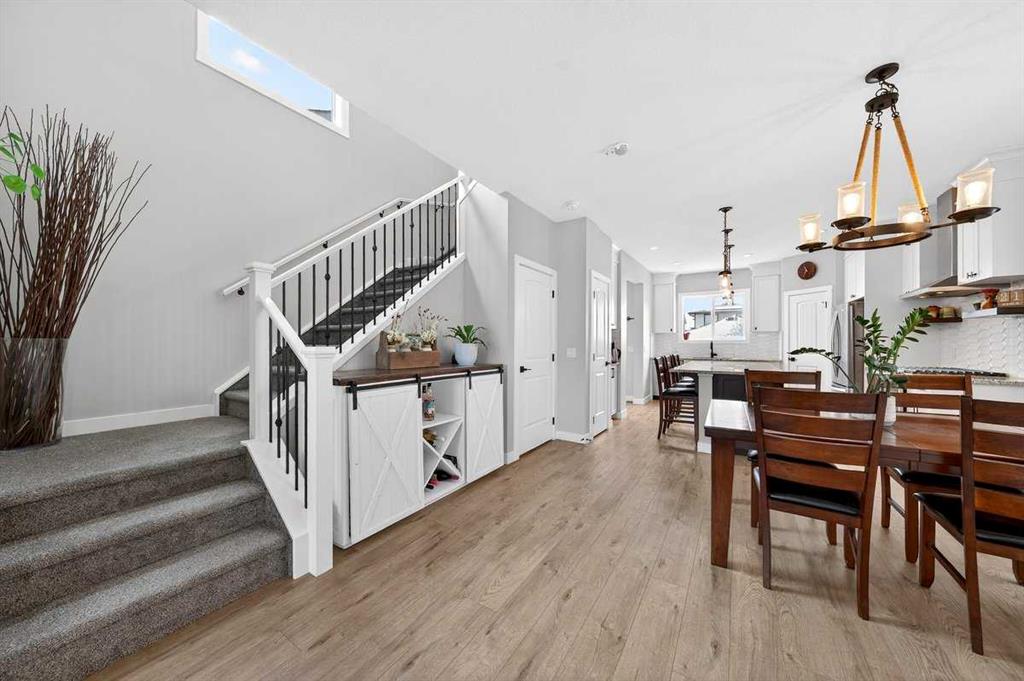 The main level showcases a bright, open-concept floor plan enhanced by elegant custom interior finishings and durable vinyl plank flooring. The well-appointed kitchen features a functional breakfast bar and a spacious pantry, seamlessly flowing into the living and dining areas—ideal for both everyday living and entertaining.