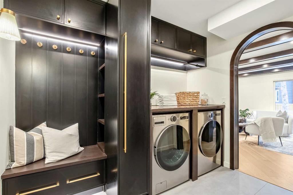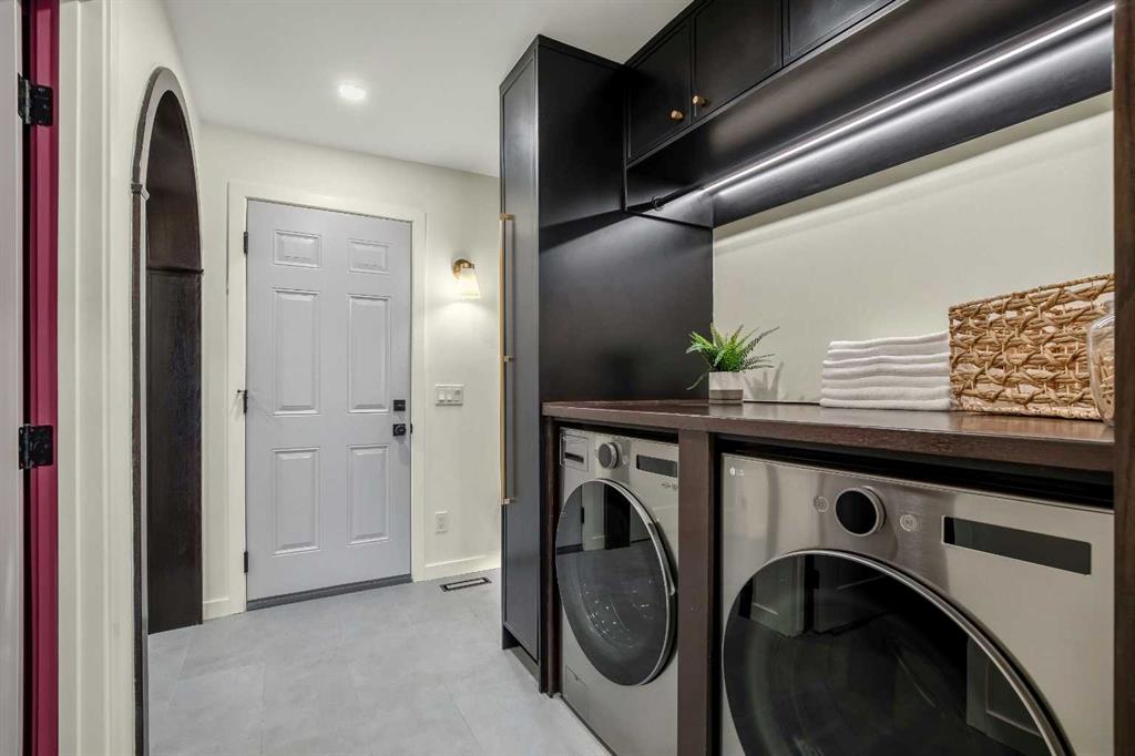 Welcome to Eleanor—an elegant, elevated, and exceptionally well-crafted home in the sought-after community of Oakridge. A fully renovated down to the studs home with over $600,000+ INVESTED (including all-new plumbing, electrical, and HVAC runs completed with all required city permits). Nestled on a quiet, tree-lined street, this home offers four rooms, a dedicated office and 2,366+ sq ft of living space, and an additional 500+ sq ft of crawl-space storage. Situated on an expansive ~7,000 sq ft lot, only minutes away from South Glenmore Park, scenic pathways, and steps from Louis Riel School, Oakridge Community Centre, Stoney Trail, tennis and pickleball courts, and more. The exterior of the home is striking yet inviting, featuring Hardie and Smart Panel siding, stained cedar soffits, new roofing and eavestroughs, and meticulously designed landscaping. The entry is equally refined, with a cedar-covered patio, garden-ready planters, and a stunning entrance inviting you home. Inside, sunlight fills every room through energy-efficient triple-pane windows, highlighting diagonal white oak floors, curved oak arches, columns, beams, and white-oak butcher block shelving throughout. The main level is anchored by a Nordic-inspired kitchen with Taj Mahal stone, chocolate coloured white oak cabinetry with dovetail drawers and fluted detailing, a ~10-foot island with drop-down seating, a built-in coffee bar, and a glass wine display. Built-in appliances include a Fisher & Paykel fridge, freezer, and dishwasher, a Bosch 6-burner range, ZLINE convection oven, and Silhouette dual temp wine fridge. The kitchen connects to the rear deck, creating a seamless transition between indoor and outdoor living. On the same level is the formal dining room and first living area, centred around a striking fireplace feature wall. Steps down, the main living room boasts dark oak ceiling beams, a second fireplace framed by custom arched cabinetry, a refined wet bar, and access to the backyard patio. This level also includes a glass-enclosed office, powder room, laundry, mudroom, and access to the finished oversized double car garage with epoxy floors and EV and garage heater rough-ins. Upstairs, the primary is a serene retreat featuring a fluted soaker tub, oversized double shower, champagne bronze fixtures, a walk-in closet, and a built-in makeup vanity. Two additional well-sized bedrooms with built-in closets and a beautifully finished full bath complete the level. The basement includes a rec room/flex room, an additional fourth bedroom, a three-piece bath with spa-calibre shower, cedar sauna and ample storage. Heated floors and champagne bronze fixtures are featured in all bathrooms. Finally, there’s new batt and blow-in insulation throughout, a tankless water heater, central A/C, sump pump, solid core doors, smart home features, camera CAT-6 roughed-in, new drywall and a BBQ gas line on the deck. Eleanor embodies refined design and understated luxury—a rare opportunity to make her your home!