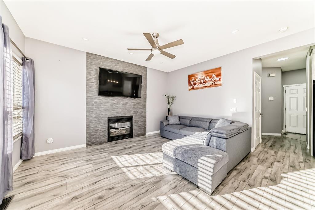 Welcome to this beautifully upgraded home located on a quiet street in the heart of Saddleridge. Thoughtfully designed with functionality and comfort in mind, this home offers an open-concept layout featuring 9 ft ceilings on the main floor, a spacious great room with a cozy gas fireplace, and a main floor laundry for added convenience.