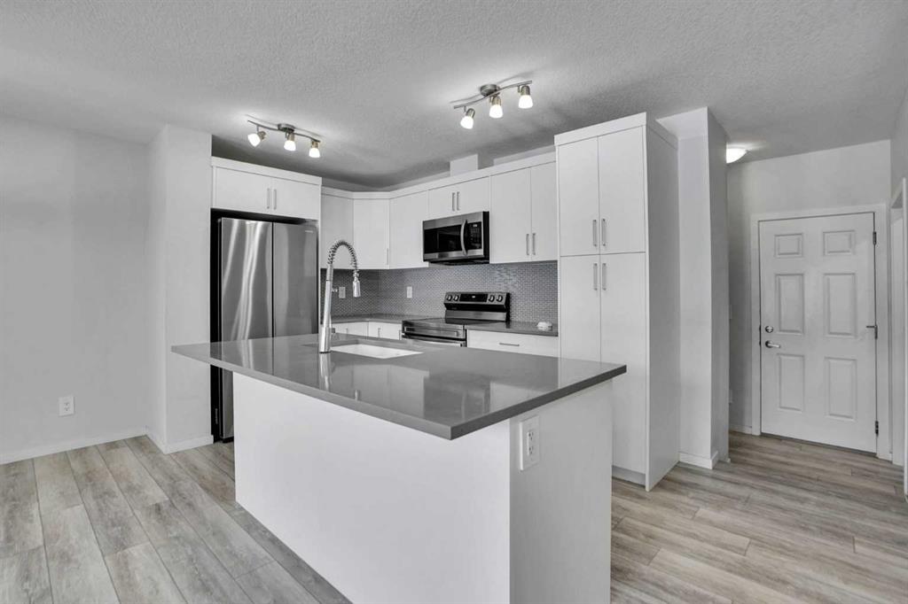 NO CONDO FEES – Discover exceptional value and stylish living at 216 Windbury Lane SW, a beautifully upgraded 3-bedroom, 2.5-bath townhome nestled in the heart of South Windsong, Airdrie. Perfectly positioned directly across from a park and scenic walking paths, this home offers the ideal blend of comfort, location, and modern design—with zero condo fees. Step into a bright and inviting open-concept main floor featuring luxury vinyl plank flooring, knock-down ceilings, and an abundance of natural light. The designer kitchen is the true showpiece, showcasing sleek quartz countertops, stainless steel appliances, upgraded cabinetry, and a large central island with bar seating, making it perfect for hosting or enjoying casual family meals. Upstairs, the spacious primary suite offers a tranquil retreat with a luxurious tiled ensuite shower, while two additional bedrooms provide ample space for kids, guests, or a home office. Both bathrooms are finished with high-end tilework and modern fixtures for a spa-like feel. Enjoy the convenience of an attached garage, a private driveway, and a fully landscaped exterior—all just minutes from top-rated schools, shopping, and quick access to Deerfoot Trail, CrossIron Mills, and North Calgary. Whether you’re a first-time buyer, a growing family, or looking to downsize without sacrificing style, this move-in-ready gem delivers the perfect balance of function and flair—all with no condo fees. Don’t miss this rare opportunity!