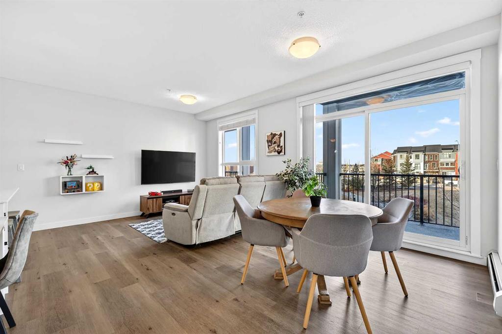 Welcome to this immaculate corner unit featuring TWO TITLED PARKING STALLS (one above ground and the other in the parkade). As you enter, you’re greeted by 9-foot ceilings, an abundance of natural light and a bright open-concept layout with durable luxury vinyl plank flooring throughout the main living space. The modern kitchen showcases modern shaker-style cabinetry with soft close drawers, quartz countertops, upgraded stainless steel appliances with a Samsung French-door refrigerator with ice maker, a sleek chimney hood fan, and a stunning marble herringbone tile backsplash. The extended island provides ample seating and is complemented by stylish pendant lighting, while a convenient pantry with built-in microwave adds extra functionality. The spacious primary bedroom features a walkthrough closet leading to a private ensuite with dual vanities. A second bedroom and full four-piece bathroom offer flexibility for guests, family, or a home office. Step outside to enjoy the generous wrap-around corner balcony complete with a BBQ gas line—perfect for entertaining or relaxing. Ideally located minutes from shopping, dining, and everyday amenities, with easy access to Macleod Trail for a quick commute. Don’t miss this exceptional opportunity—call your favourite realtor to book your private showing today.