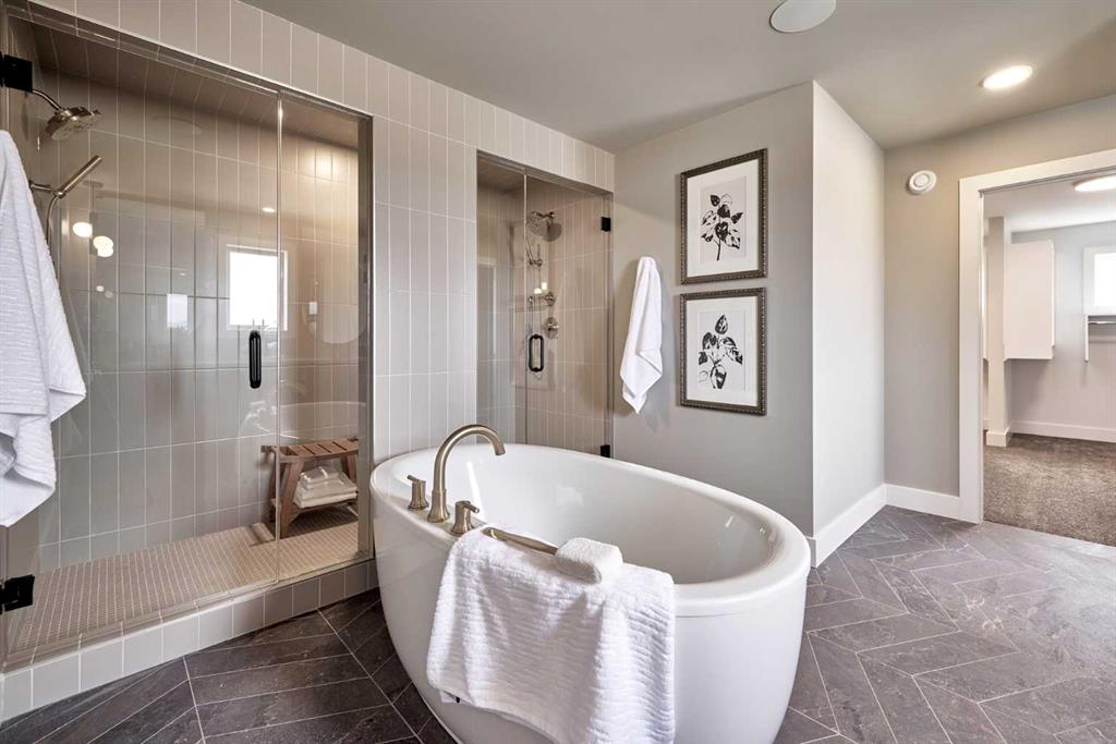 **4,745 TOTAL SQ.FT | 6 BEDS | 5 BATHS (2-ENSUITES) | FINISHED WALKOUT | 3-CAR GARAGE | PIE LOT** Located on a quiet cul-de-sac in Aspen Summit, this brand-new executive walkout by Crystal Creek Homes sits on a generous pie-shaped lot and includes a triple-car garage, premium finishes, and a fully developed lower level. Selections were inspired by Crystal Creek’s previous showhome. The main floor includes an open-to-above great room that brings in natural light, a gourmet kitchen with a gas range, custom hood fan, premier appliances, a prep kitchen, and a large pantry. The dining area features built-in cabinetry and a beverage centre, and the spacious main-floor office provides a quiet place to work or study. Upstairs, the primary suite offers a spa-inspired ensuite and an oversized walk-in closet with direct access to the laundry room. Three additional bedrooms complete this level—one with its own ensuite and two connected by a Jack and Jill bathroom—along with a large bonus room overlooking the great room below.The walkout basement adds two more bedrooms, a full bathroom, a rec room with a fireplace and wet bar, and a games area that opens to a broom-finished concrete patio. Mechanical highlights include dual furnaces, air conditioning, a water softener, radon rough-in, and full builder warranty. Everyday comfort is built in at every level. Aspen Woods is known for its estate homes, established parks, top-rated schools, and close access to downtown, West District, Aspen Landing, and the Rockies. Homes with this level of scale, finish, and location are rarely available in Aspen Woods. Book your showing before it’s gone. (Photos are of the builder’s previous showhome with similar layout and finishes).