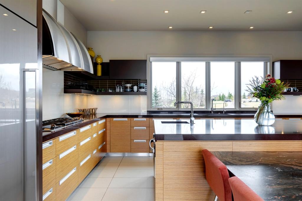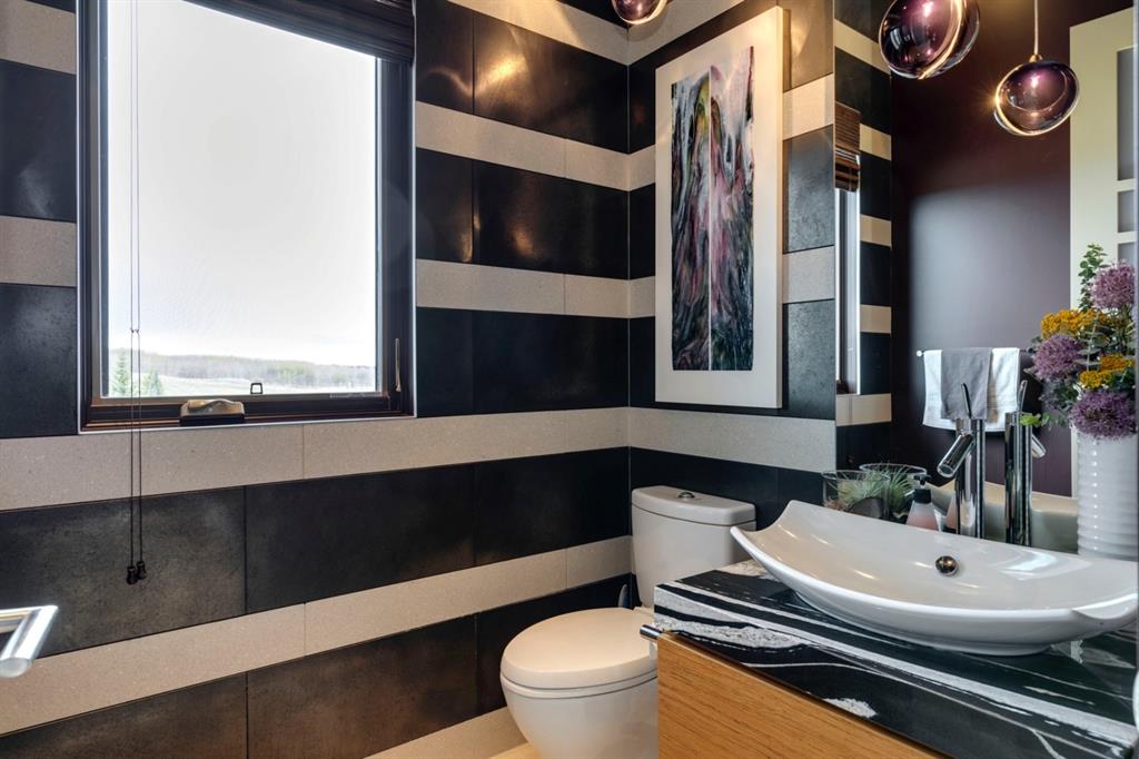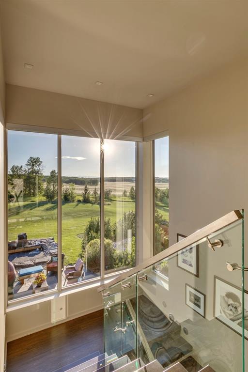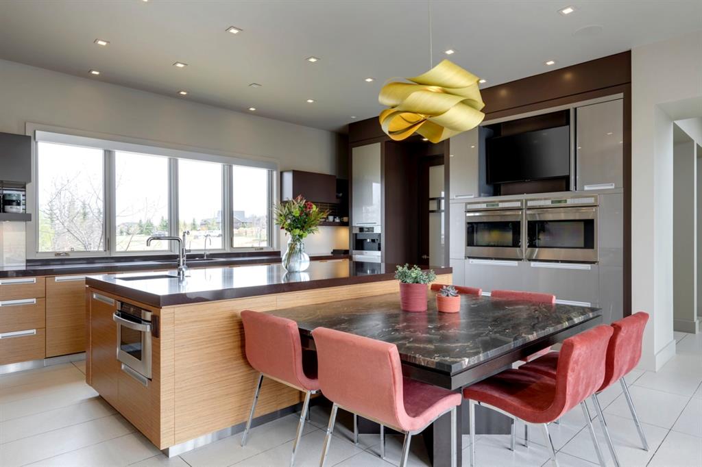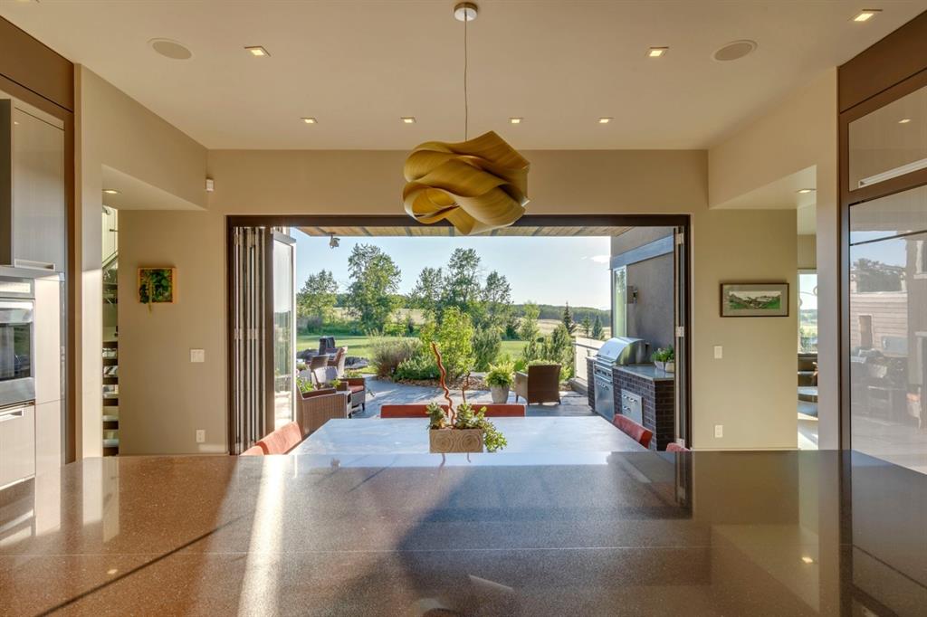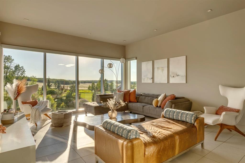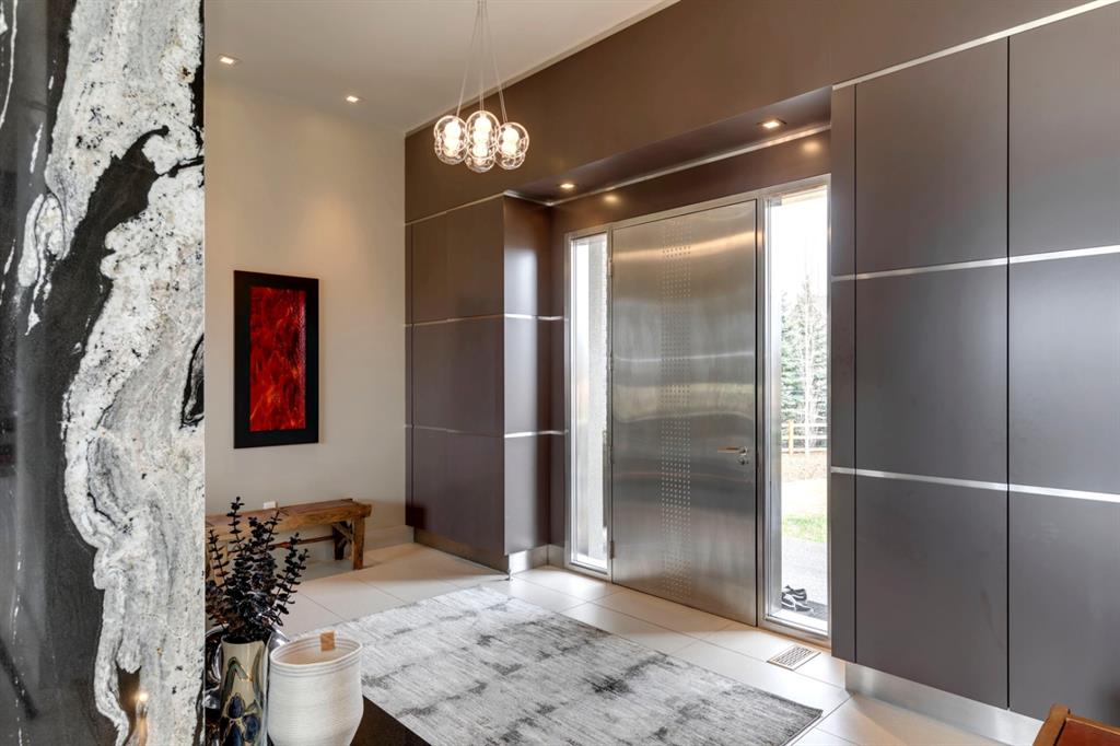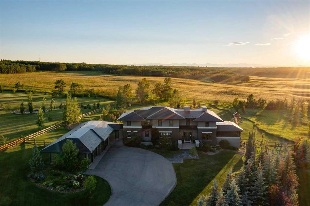 Architecturally inspired by Frank Lloyd Wright and designed to capture breathtaking west-facing views of the Rocky Mountains, this Built Green & Gold Certified, energy efficient estate is one of the most exceptional homes in Bearspaw. Thoughtfully curated on 2.91 pristine acres at the end of a quiet cul-de-sac, this 5 bedroom, 7 bath residence offers over 6,200 sq ft of developed living space, all warmed & cooled via advanced geothermal technology with in-floor heating. Striking floor-to-ceiling commercial grade windows frame the dramatic mountain vistas throughout the home. The chef’s kitchen is impeccably appointed with full Sub-Zero fridge & freezer, six-burner Wolf cooktop, custom hood fan, dual Wolf convection wall ovens, Wolf warming drawer, & Miele dishwasher & coffee station. A substantial quartz island provides abundant prep space, while the built-in kitchen table finished in Capolavoro honed granite adds warmth & texture. Entertain effortlessly as a 15.5-ft NanaWall opens to the spectacular backyard oasis, featuring a built-in Lynx BBQ, custom water feature, natural gas fireplace, & professionally designed landscaping with automated irrigation. The seamless indoor-outdoor flow is ideal for hosting gatherings large &/or small. The main level is completed by a spacious living area with dual-sided fireplace, a west-facing home office filled with natural light, formal dining room well suited for large gatherings, & a well-designed mudroom with extensive built-ins, laundry facilities, & a second floor laundry chute. A covered courtyard with motorized screens, sound system, & natural gas fire table creates an inviting outdoor lounge experience. A bright breezeway connects to the heated 4+ car garage, complete with dog wash & EV charging. The upper level hosts four generous bedrooms. The primary suite & fourth bedroom each feature private ensuites, while the second & third bedrooms share a Jack & Jill bath. The primary retreat rivals a six-star hotel, showcasing a custom built-in king bed & a Holt Renfrew-inspired walk-in dressing room. A thoughtfully designed kids’ media area completes this level. The walkout lower level is equally impressive, offering guest quarters, a media room with blackout blinds, custom banquet seating, wine room, wet bar, & a fitness studio with direct access to the private salt water hot tub. The spa-inspired bathroom features a rainfall steam shower & large infrared sauna, creating the perfect space for healthy detox & rejuvenation. A full Control4 smart home system provides advanced automation (lighting, audio video, temperature, blinds, irrigation, + security) all accessible via your smartphone. The property also has a radon mitigation system & reverse osmosis water throughout. Ideally located with quick access to the mountains, the airport, & the downtown core, this remarkable property offers a rare blend of architectural distinction, cutting-edge technology, & serene natural beauty, call for more information!