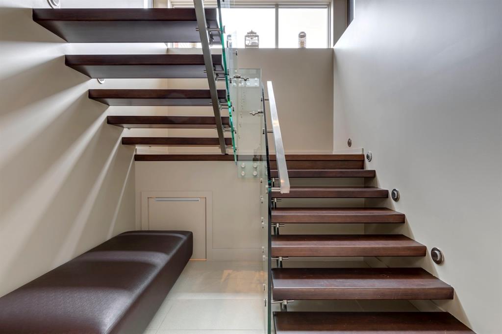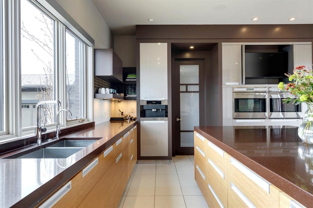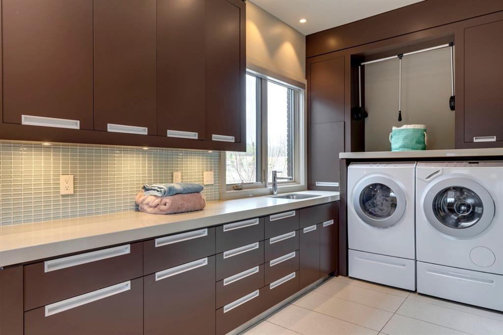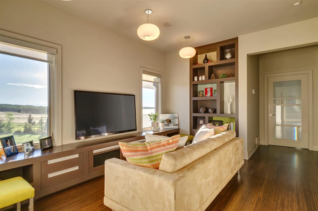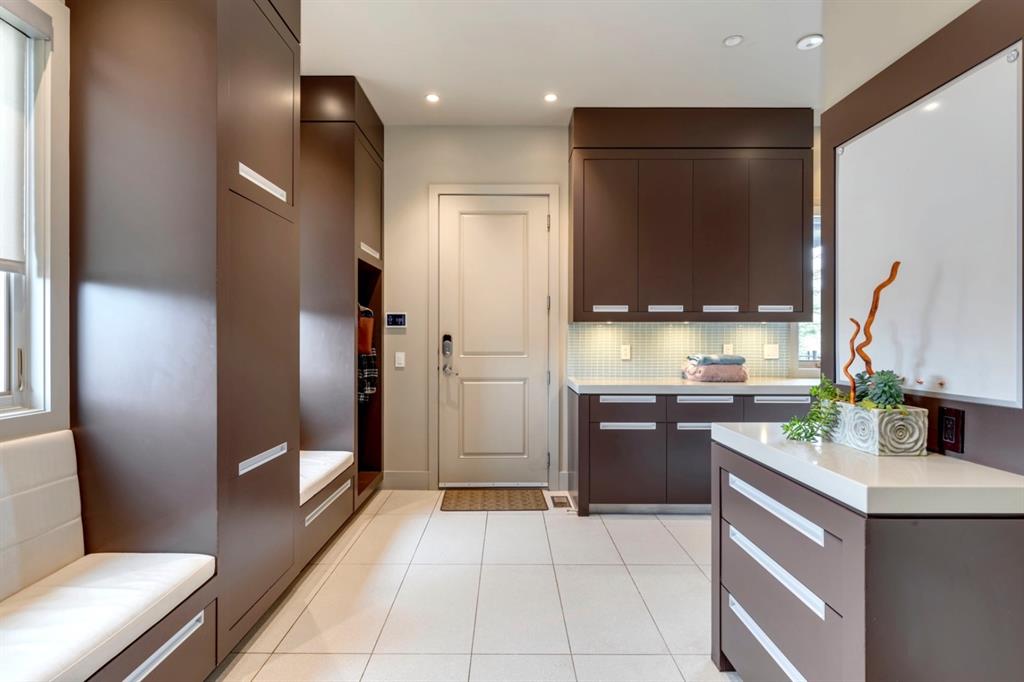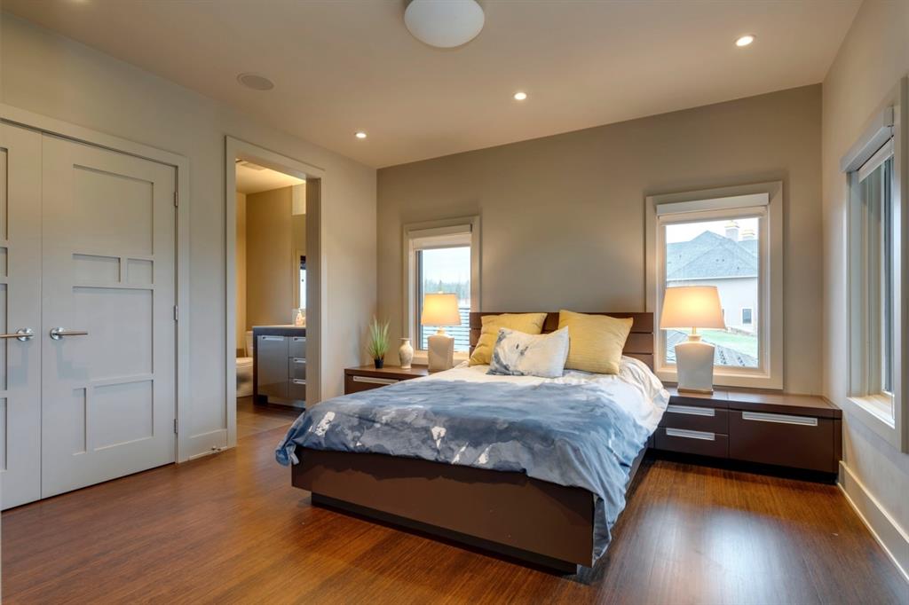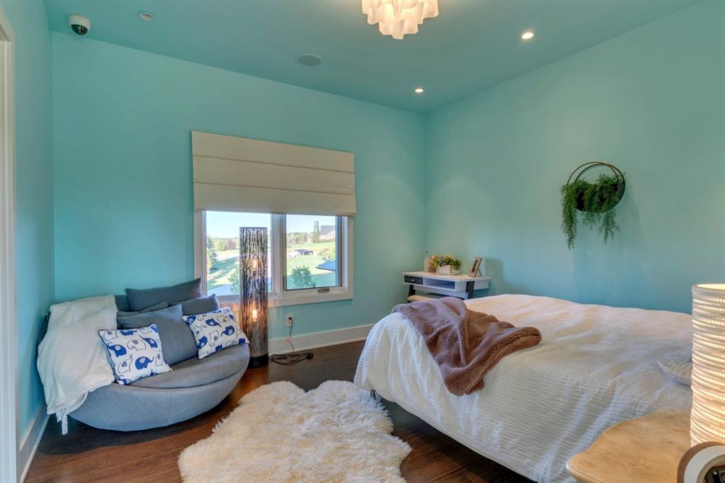 Architecturally inspired by Frank Lloyd Wright and designed to capture breathtaking west-facing views of the Rocky Mountains, this Built Green & Gold Certified, energy efficient estate is one of the most exceptional homes in Bearspaw. Thoughtfully curated on 2.91 pristine acres at the end of a quiet cul-de-sac, this 5 bedroom, 7 bath residence offers over 6,200 sq ft of developed living space, all warmed & cooled via advanced geothermal technology with in-floor heating. Striking floor-to-ceiling commercial grade windows frame the dramatic mountain vistas throughout the home. The chef’s kitchen is impeccably appointed with full Sub-Zero fridge & freezer, six-burner Wolf cooktop, custom hood fan, dual Wolf convection wall ovens, Wolf warming drawer, & Miele dishwasher & coffee station. A substantial quartz island provides abundant prep space, while the built-in kitchen table finished in Capolavoro honed granite adds warmth & texture. Entertain effortlessly as a 15.5-ft NanaWall opens to the spectacular backyard oasis, featuring a built-in Lynx BBQ, custom water feature, natural gas fireplace, & professionally designed landscaping with automated irrigation. The seamless indoor-outdoor flow is ideal for hosting gatherings large &/or small. The main level is completed by a spacious living area with dual-sided fireplace, a west-facing home office filled with natural light, formal dining room well suited for large gatherings, & a well-designed mudroom with extensive built-ins, laundry facilities, & a second floor laundry chute. A covered courtyard with motorized screens, sound system, & natural gas fire table creates an inviting outdoor lounge experience. A bright breezeway connects to the heated 4+ car garage, complete with dog wash & EV charging. The upper level hosts four generous bedrooms. The primary suite & fourth bedroom each feature private ensuites, while the second & third bedrooms share a Jack & Jill bath. The primary retreat rivals a six-star hotel, showcasing a custom built-in king bed & a Holt Renfrew-inspired walk-in dressing room. A thoughtfully designed kids’ media area completes this level. The walkout lower level is equally impressive, offering guest quarters, a media room with blackout blinds, custom banquet seating, wine room, wet bar, & a fitness studio with direct access to the private salt water hot tub. The spa-inspired bathroom features a rainfall steam shower & large infrared sauna, creating the perfect space for healthy detox & rejuvenation. A full Control4 smart home system provides advanced automation (lighting, audio video, temperature, blinds, irrigation, + security) all accessible via your smartphone. The property also has a radon mitigation system & reverse osmosis water throughout. Ideally located with quick access to the mountains, the airport, & the downtown core, this remarkable property offers a rare blend of architectural distinction, cutting-edge technology, & serene natural beauty, call for more information!