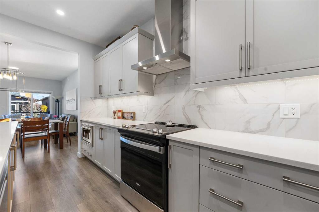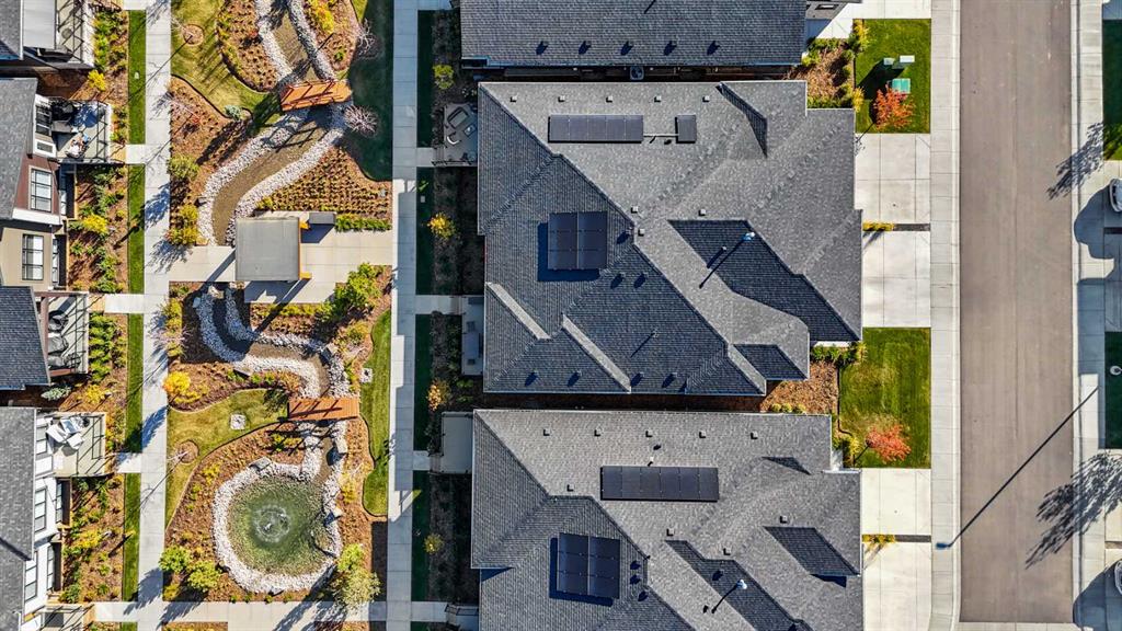Welcome to THE STREAMS of Mahogany, a must-see lakeside complex community where everyday living feels elevated. Perfectly positioned directly on to the center park, this 3 bedroom bungalow duplex is set within a quiet and picturesque lake community offering an exceptional walking score. Scenic pathways, neighbourhood paths, and lush green spaces surround the home, while shops, services, and amenities are all just steps away. One of the most alluring features of this home is its peaceful setting and sun-filled mornings. Natural light pours in as the day begins, making coffee on the deck a refreshing daily ritual. The thoughtfully designed landscape and flowing water features enhance the overall vibe, creating a setting that is as calming as it is visually stunning. Inside, the floor plan is immediately inviting, showcasing soaring 9 foot ceilings and a spacious open-concept design. The kitchen is both striking and functional, featuring stone countertops, sleek stainless steel appliances, a large centre island, and an abundance of cabinetry. The living room is warm and welcoming, anchored by a modern electric fireplace and framed by beautiful windows. The primary bedroom is conveniently located off of the family room and offers and unforgettable ensuite that is nothing short of captivating. Dual vanities, a deep soaker tub, a stand-alone glass shower, and a generous walk-in closet. Throughout the home, you’ll appreciate the exceptional number of cupboards and closets; a rare and valuable feature, especially in newer homes. The fully finished lower level adds versatility, offering a large entertainment and recreational space complete with a stylish bar area, effective acoustic insulation, and substantial additional storage. 2 spacious guest bedrooms and a full bathroom make this level ideal for hosting family and friends while maintaining privacy and comfort. Enjoy all the advantages of condo living without the annoyance of condo living – No elevators, noise, or parking frustrations. The double attached garage ensures year-round convenience, while the community’s communal BBQ and gathering areas foster a welcoming sense of connection through neighbourhood events and casual social gatherings. Built with efficiency and sustainability in mind, this home includes solar panels, triple-pane windows, a high-efficiency furnace with MERV 13 filtration, UV-C air purification system, HRV, Navien tankless hot water, dual-zone heating, EV charging rough-in, and Built Green Canada certification — offering modern comfort and long-term peace of mind. This is a lifestyle defined by space, serenity, and sophistication. Welcome home!