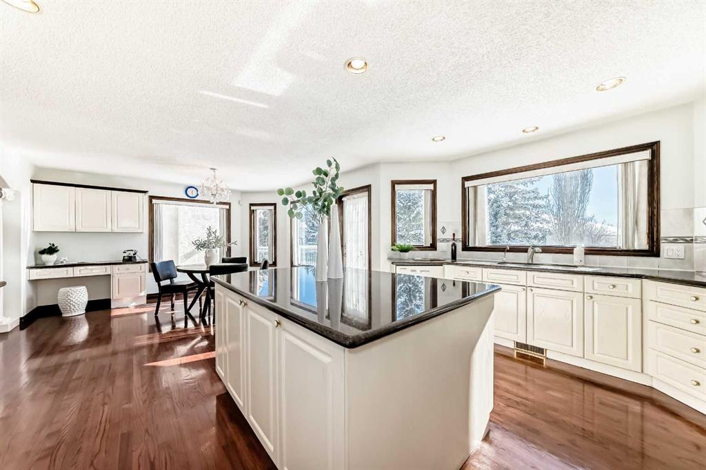 **Open House this Saturday and Sunday March 7th &8th 11am-2pm** First time on the market, this custom-built former show home has a lot to offer: over 5,000 sq. ft. of developed living space, 3,367 sq. ft. above ground plus a 1,646 sq. ft. legal walkout, in-floor heated basement suite. Ideal for a multi-generation family or a live-up, rent-down setup. Located in a quiet cul-de-sac, steps from open green space in the decadent Scenic Acres neighborhood. The estate home welcomes you with a bright foyer, office, and living room with a 17 ft high ceiling. The well-appointed living room features a masonry mantel fireplace with four southwest-facing windows to let in sunlight. Adjacent is a gorgeous formal dining room, perfect for entertaining large groups of guests. To the left, your gourmet kitchen offers a gas stove, new refrigerator, a huge central island with side wine shelves, a walk-in pantry, and abundant cabinetry with granite countertops. Another generously sized dining area allows you to enjoy family gatherings or host more guests. Then comes your huge family room with a second gas fireplace surrounded by real wood shelves. A 2-piece bathroom and a spacious laundry room complete the main floor. The curved stairs lead you up. You will fall in love with the curved-stair hall that connects to your huge and private master bedroom suite and the other 3 bedrooms. Sipping your morning coffee or relaxing on your sitting area couch facing the large bay window, you will enjoy the distant mountain views. The jacuzzi spa tub is another retreat for you to relieve daily stress. Down the hall, three good-sized bedrooms and a 5-piece bathroom finish the second floor. Oak hardwood floor is throughout most of the main and second levels. New carpet down the stairs to the basement flex room leads you to the rarely found 2–3 bedroom walk-out legal suite basement. (The current exercise room could be converted to a third bedroom if needed.) The in-floor-heated suite could comfortably accommodate extended family members or be easily rented long-term or short-term as a great mortgage helper. Upgrade includes: hot water tank installed in 2026, Poly B replaced in 2026, engineered flooring throughout the basement in 2021, all window and door frames are made of high-quality real wood, new kitchen and engineering hardwood floor in the basement in 2020, new refrigerator and dishwaser