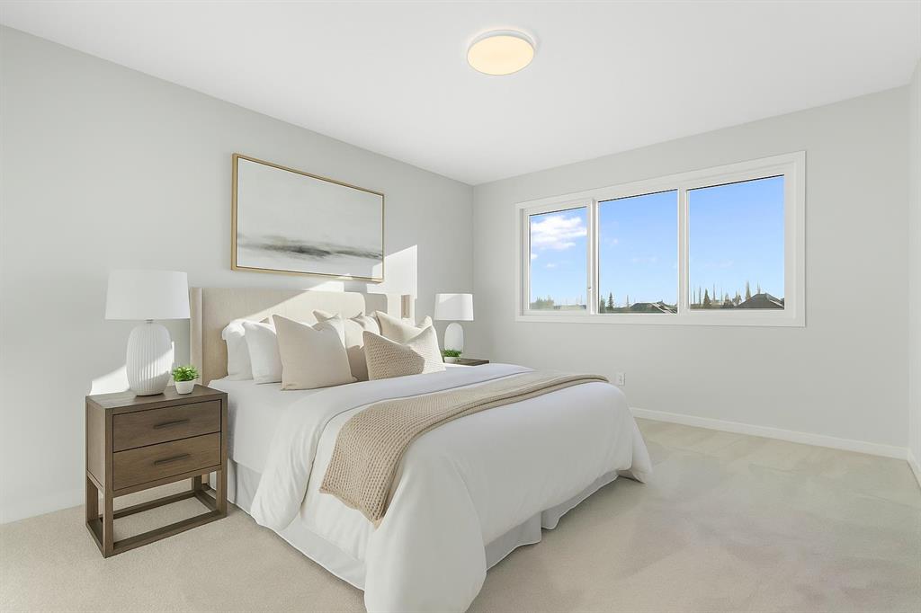 In the heart of West Grove, where family living meets elevated design, this 5 bedroom, 3.5 bath home delivers the perfect balance of warmth, versatility, and modern style. Every inch of its 2857 sq. ft. of developed living space has been thoughtfully designed for real life – where entertaining, relaxing, and everyday moments unfold effortlessly. Step inside and feel the natural flow of the open-concept main floor – anchored by floor-to-ceiling glass sliding doors that bathe the space in light and extend seamlessly to a large backyard deck, creating a beautiful connection between indoors and out. The great room’s electric FIREPLACE adds a cozy center piece for evenings in, while the kitchen shines with two-toned cabinetry, white QUARTZ countertops, and pot lighting that elevates the ambiance. Choose your own appliances at the builder’s supplier with an allowance of $8954. A large pantry and mudroom add practical function for busy mornings and grocery hauls, and a main floor FLEX ROOM offers the ideal space for a home office, playroom, or creative studio. Upstairs, the home’s sense of spaciousness continues. The primary suite is a peaceful retreat with a spa-inspired ensuite featuring a SOAKER TUB, glass shower, DOUBLE VANITY, and private water closet – plus a GENEROUS WALK IN CLOSET and easy access to the upper-level laundry room. A central bonus room invites family movie nights or a cozy reading nook, while THREE additional bedrooms and a dual-sink main bath ensure everyone has space and privacy. Downstairs, a FULLY DEVELOPED BASEMENT with a SIDE ENTRANCE adds even more flexibility. The expansive rec room can transform into a home gym, games area, or theatre, while the 5TH BEDROOM and full bathroom make this level ideal for guests, teens, or extended family. With its bright open floor plan, stylish finishes, and thoughtful family-centered design, this West Grove gem delivers more than just square footage – it delivers lifestyle. Living in West Grove means access to one of Calgary’s MOST COVETED west-side communities where tree-lined walking paths, nearby playgrounds, and top-rated schools create an environment families truly love. Enjoy proximity to West 85th’s boutique shops and restaurants, Westside Recreation Centre, and LRT access for an easy downtown commute. This is a home where you can grow, gather, and truly live. Come see how this space feels when it’s yours. Schedule your private showing today!