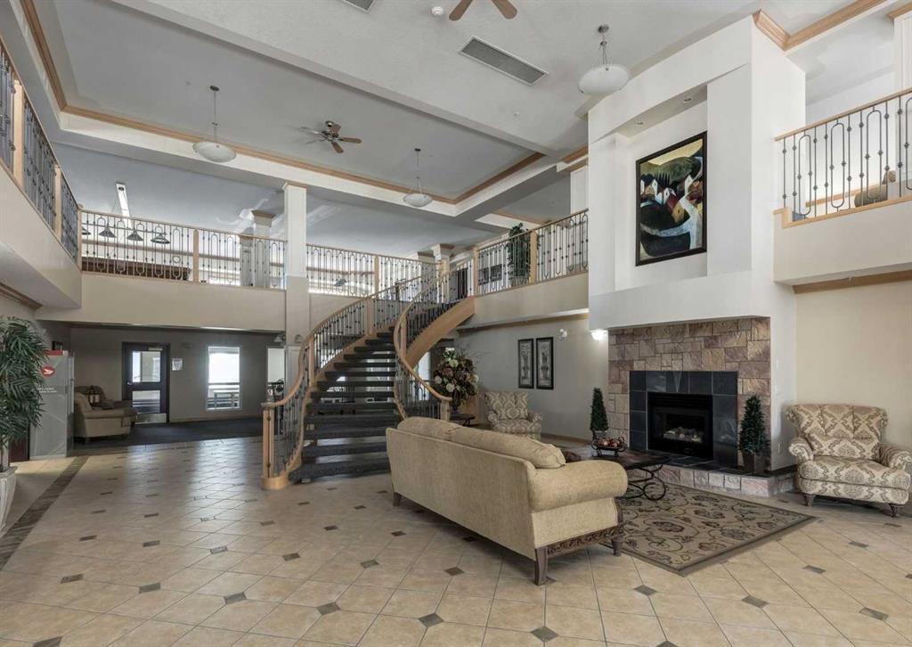 Rare opportunity to own in the highly sought-after Sierras of Tuscany, a vibrant 40+ adult living community offering a true resort-style lifestyle. This immaculate one-bedroom unit presents an exceptional entry price point and the convenience of condo living at its finest—no need to leave the building with the incredible amenities at your doorstep. The bright, open-concept layout features luxury vinyl plank flooring throughout, California shutters, and a cozy corner fireplace that anchors the living space. The well-designed kitchen flows seamlessly into the dining and living areas, creating an inviting space to relax or entertain. Enjoy year-round use of the fully enclosed balcony/sunroom, perfect for morning coffee or quiet evenings. The spacious primary bedroom includes a walk-in closet, while the in-suite laundry and storage room add everyday functionality. Heated underground parking and a large separate storage unit are also included. This well-managed building is known for its unmatched amenities, including an indoor saltwater pool and hot tub, fitness centre, bowling alley, billiards and games room, movie theatre, library, craft and woodworking rooms, Panorama Room/ballroom/party room, guest suites, and even a car wash. Ideally located just steps to green space and the Tuscany LRT station, with quick access to Crowchild Trail and Stoney Trail, plus nearby shopping and amenities. Condo fees include all utilities—heat, water, sewer, and electricity—offering outstanding value and peace of mind. An immaculate, move-in-ready home in one of NW Calgary’s most desirable adult communities—this is a must see.