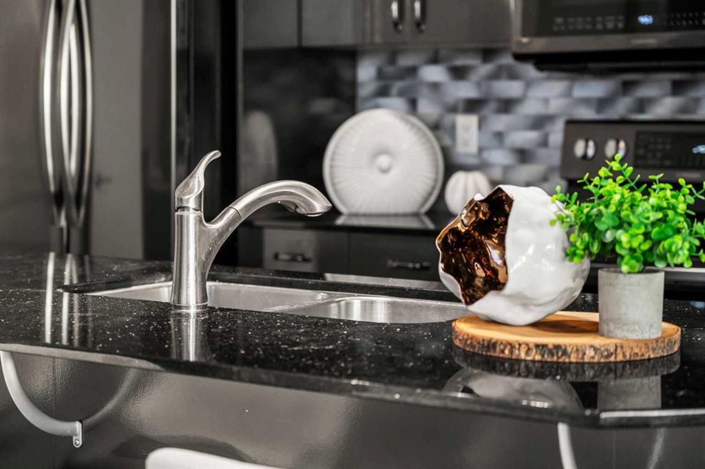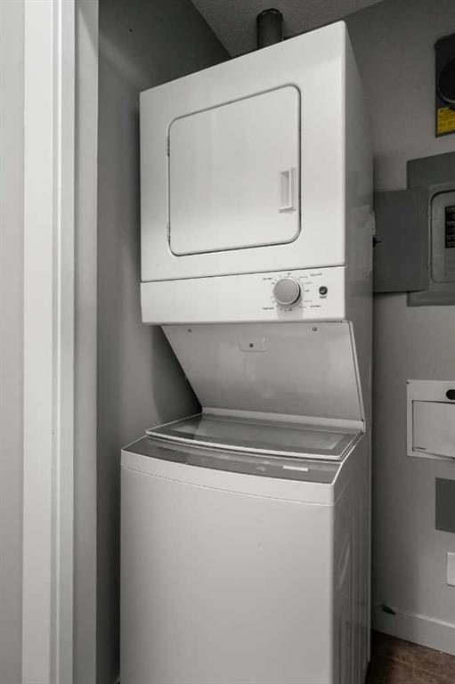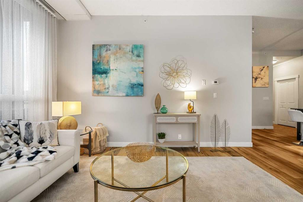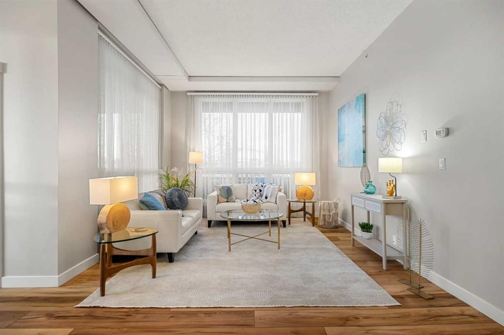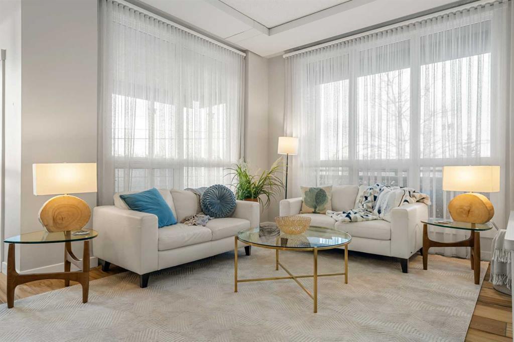 Welcome to this beautifully upgraded 2-bedroom, 2-bathroom , 2 parking stall – corner unit in the sought-after London at Heritage Station. Located on the second floor with 10-foot ceilings and a wrap-around balcony, this home offers a rare blend of space, light, and convenience and has over $50,000 in upgrades and renos— all in a concrete building with unbeatable access to amenities. This bright corner suite features windows facing north and west, allowing the home to be filled with natural light throughout the day. The open-concept layout is enhanced by wide-plank, high-end luxury vinyl plank flooring and stylish modern finishes. The kitchen has been thoughtfully updated with Newer gunmetal black appliances (all replaced within the last 3–4 years), including an electric stove with double oven option, refrigerator, microwave hood fan, and dishwasher. The cabinets have been updated with double coat of paint and new hardware in the kitchen and in both bathrooms.  Beautiful gold-flecked black granite countertops, a tile backsplash, and a double sink complete the space, making it as functional as it is striking. A new designer dining room light fixture adds a touch of elegance to the adjoining dining area that is more house sized than a typical condo perfect for family dinners or entertaining. Comfort and style continue throughout the home with automatic blinds in the bedrooms and dining room, custom drapery on all windows, new entry and primary closet doors, and additional storage above the closets in both the primary bedroom and front entry. The front entry allows for a desk space if desired or a added space for you favorite shoe collections. The living room has lots of light and lots of space for big sectionals and a large TV if desired. The primary bedroom has room for a king sized bed, lost of extra storage added above a large closet, with a lovely 4 pc ensuite. With the other bedroom on the opposite side of the unit its spacious giving everyone occupant privacy. The unit also includes a stacked washer and dryer and a tankless hot water system for added efficiency. Step outside onto your wrap-around balcony, perfect for enjoying morning coffee or evening sunsets with open sky views and great airflow from the corner positioning on the NW side. One of the biggest highlights of living at London at Heritage Station is the direct indoor access to shopping and services — no need to step outside to grab groceries, coffee, or daily essentials. Plus, you’re just steps to the C-Train station, making downtown commutes and city access effortless. Modern upgrades, generous storage, premium parking, and unmatched convenience — this is condo living at its best. Pet dog, cat or bird allowed with approval – The building has a dog run area on the north side of the building!