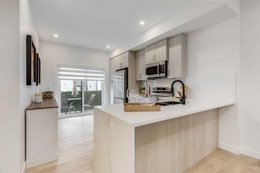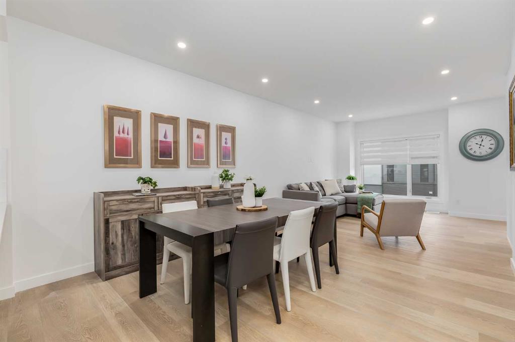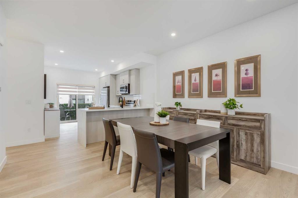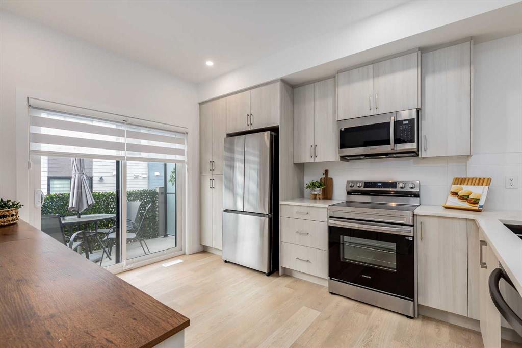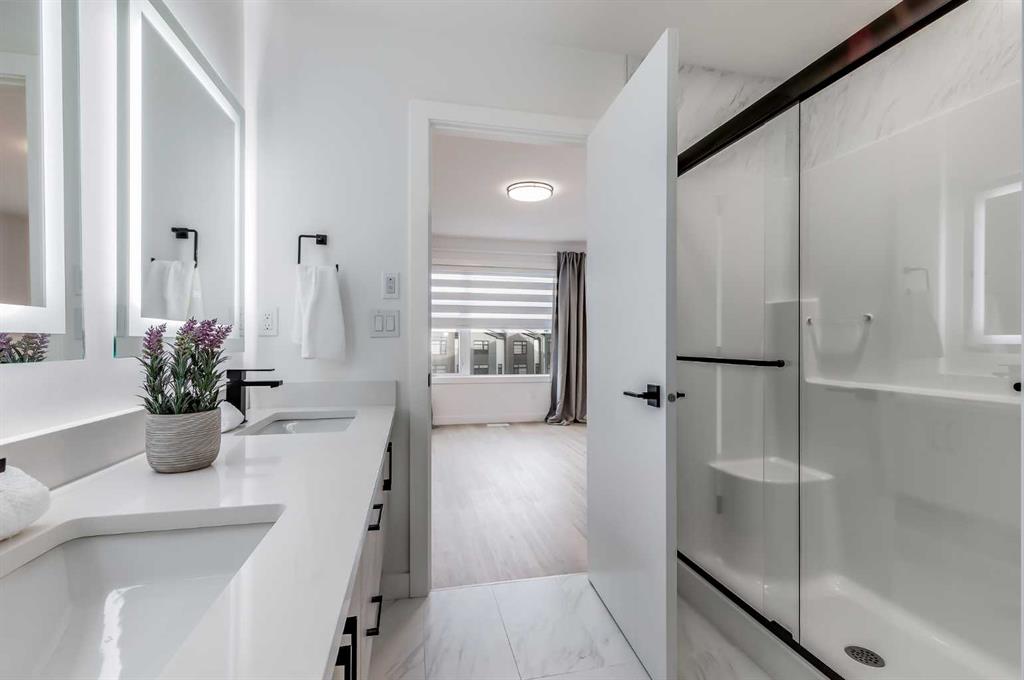 Nestled in the desirable lake community of Mahogany, this 2024-built three-storey townhouse by Mountain Pacific Homes combines modern design, high-end finishes, and functional living spaces. With over 1,500 square feet and lake access, this home offers comfort, convenience, and a vibrant lifestyle.The main level is designed for both everyday living and entertaining. Sunlight fills the open-concept kitchen, dining, and living areas, highlighted by sleek luxury vinyl plank flooring and 9-foot ceilings. The kitchen at the heart of the home features quartz countertops, upgraded stainless steel appliances, ample storage, and a breakfast bar for casual meals. A balcony just off the kitchen provides a perfect spot for morning coffee or evening relaxation. The dining area flows naturally into the living room, creating a seamless space for gatherings, and a conveniently located two-piece powder room completes this level. Upstairs, comfort and privacy take center stage. Both primary bedrooms feature walk-in closets and ensuite bathrooms, each with dual sinks for added convenience. One ensuite showcases a spa-inspired five-piece layout with an oversized shower and built-in bench, while the other offers a stylish and well-appointed four-piece design. Vinyl plank flooring continues throughout, and an upstairs laundry area adds practical convenience. The entry-level floor is designed with both functionality and flexibility in mind. A tandem garage with built-in shelving provides abundant storage, and part of the space could easily be adapted into a home gym or hobby area. The storage and utility room adds convenience, and direct access to the backyard makes moving between indoor and outdoor spaces effortless. Step outside to a private retreat in the fully fenced backyard, featuring a concrete patio and privacy glass. Modern features include air conditioning, automated blinds, a high-efficiency furnace, and a 50-gallon electric hot water tank, while durable construction with engineered floor joists, 30-year architectural shingles, R42 attic insulation, Hardie Board siding, and aluminum soffits ensures long-term peace of mind. As a new build, the home includes warranty coverage, smart home features, electronic blinds, and the option to purchase an extra outdoor parking stall. There is no waiting for possession, ongoing construction, or additional costs for landscaping, fencing, or window treatments because everything is already complete. Residents enjoy a vibrant lakeside lifestyle, with a 15-minute walk to Mahogany Beach Club, sandy beaches, a non-motorized marina, swimming, paddleboarding, kayaking, fishing, and year-round recreational activities. West and Central Beaches feature sports courts, playgrounds, picnic areas, and fire pits, while the community’s wetlands are nearby. Local amenities include Mahogany Village Market, Westman Village, restaurants, Seton YMCA, Calgary Public Library, and schools. Easy access to 52nd Avenue and Stoney Trail ensures simple commuting.