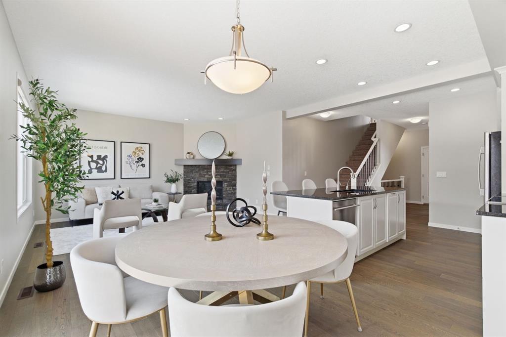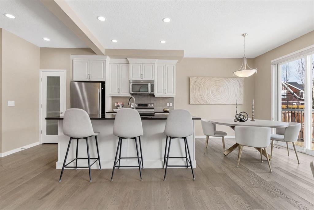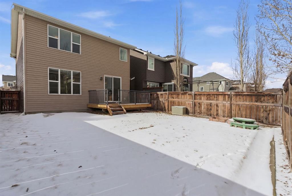 The main floor offers a spacious open-concept layout ideal for everyday living and entertaining. The functional kitchen features a large island with breakfast bar, generous pantry, and flows seamlessly into the dining area, which easily accommodates a large family table. The living room is warm and inviting with a fireplace, and you’ll love the morning sunlight — winter or summer! Laminate flooring throughout adds durability and style, especially important with children and/or pets. Patio doors lead to a deck that’s perfect for that early morning summer reading session or coffee and to a large, fenced backyard, providing the perfect space for children, pets, and gatherings. A convenient half bath completes the main level. The carpeted upper level offers three generously sized bedrooms, a full main bathroom, and a large bonus room—perfect for family movie nights or a kids’ play area. The huge primary suite includes a large walk-in closet and a 5-piece ensuite with a deep soaker tub. The straight staircase design makes moving furniture between levels easy and practical. The unfinished basement is a bright, blank canvas, featuring large windows and a bathroom rough-in, ready for your custom development. Car enthusiasts and hobbyists will love the attached heated 3-bay garage, with two bays side-by-side and one tandem bay—ideal for a third vehicle, seasonal storage, a workshop, or a home gym. Living in Auburn Bay means enjoying one of Calgary’s most family-friendly communities. Residents have access to the private lake with its many amenities: swimming, skating, and fishing, along with parks, playgrounds, sport courts, and scenic natural wetlands enhancing the experience of living here. Three schools are within walking distance, and you’re just minutes from shopping, dining, and recreation. This home is also close to South Health Campus, and there is easy access to major routes connecting you to downtown Calgary or weekend escapes out of the city. This is a bright, spacious, and well-cared-for home in an outstanding family community—ready for its next chapter.