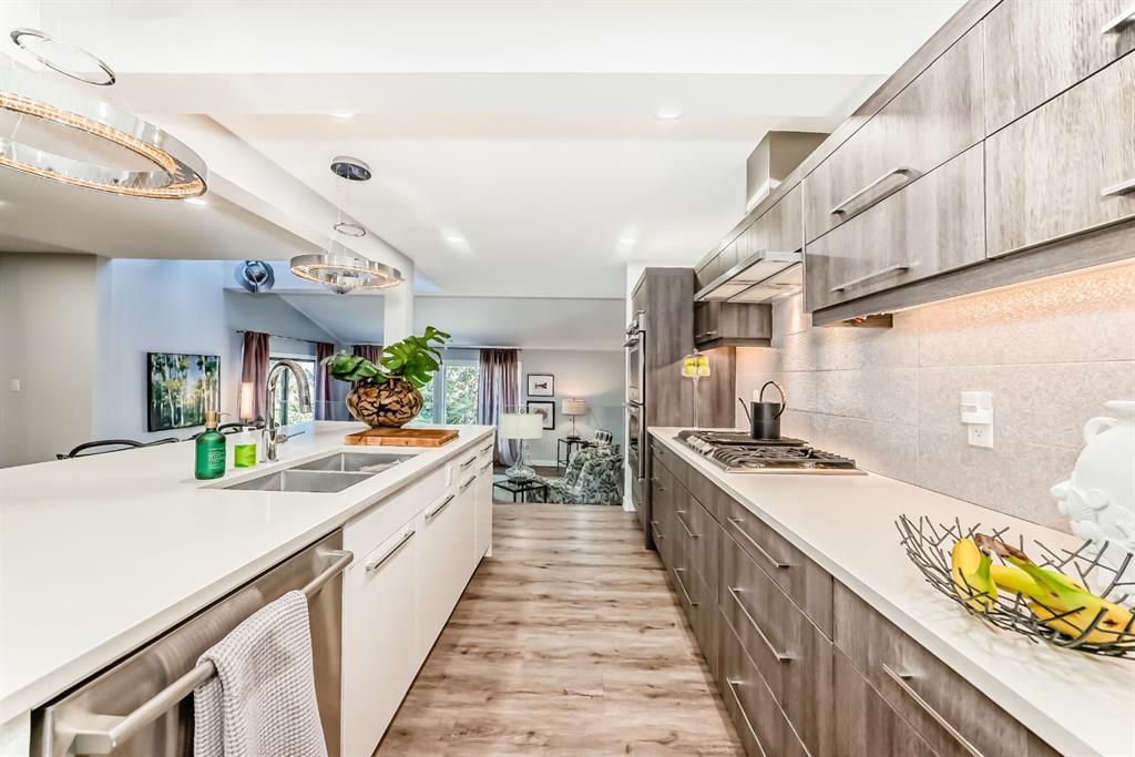 OPEN HOUSE SUNDAY FROM 12:30 to 2:30PM. One of the best townhome units and complex in Coach Hill. Over 2,600 sq. ft. of beautifully updated living space, designed with both comfort and entertaining in mind. This impressive townhome has been fully renovated from top to bottom, featuring high-end finishes throughout and the added convenience of an ensuite for every bedroom. The standout chef’s kitchen offers expansive cabinetry, quartz countertops, premium appliances, a full-size fridge and freezer, gas cooktop, double wall ovens, and a fully equipped spice kitchen with an additional fridge and dishwasher—perfect for hosting. The walk in pantry gives lots of storage for kitchen devices and food. You usually only see this type of kitchen in a million dollar home. The main floor showcases a bright, open-concept layout with a sunken living room, feature fireplace, glass railings, and a spacious dining area, all framed by oversized windows that bring in plenty of natural light. The generous primary retreat includes a spa-inspired ensuite, large walk-in closet, and beautiful city views. The media/games room is thoughtfully designed for sound, creating an ideal space to relax or entertain. There’s also an unfinished basement with a bathroom rough-in, ready for your personal touch. Enjoy outdoor living with both front and back decks, plus the benefit of a double attached garage and additional driveway parking. The exterior just went through an extensive $50,000 worth of upgrades durable Hardie board siding, stonework, and new triple-pane PELLA windows at the rear. There is also another 1,000 sq. ft. of undeveloped space in the basement. There is also a rough-in for another bathroom. This move-in ready home offers a rare combination of space, style, and thoughtful upgrades in a fantastic setting. A few of the photos have been virtually staged.
