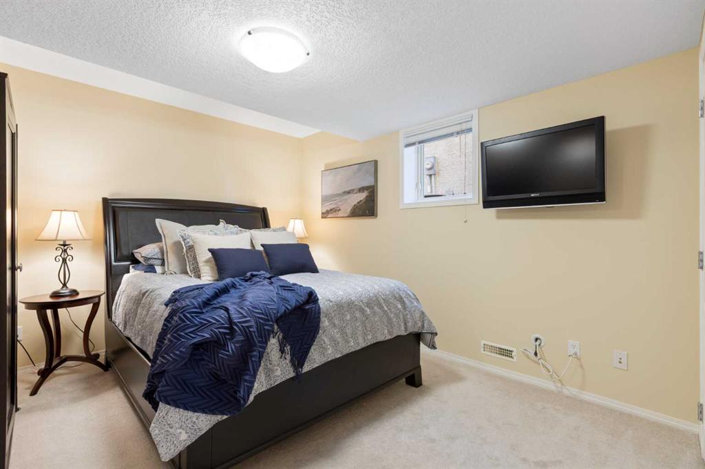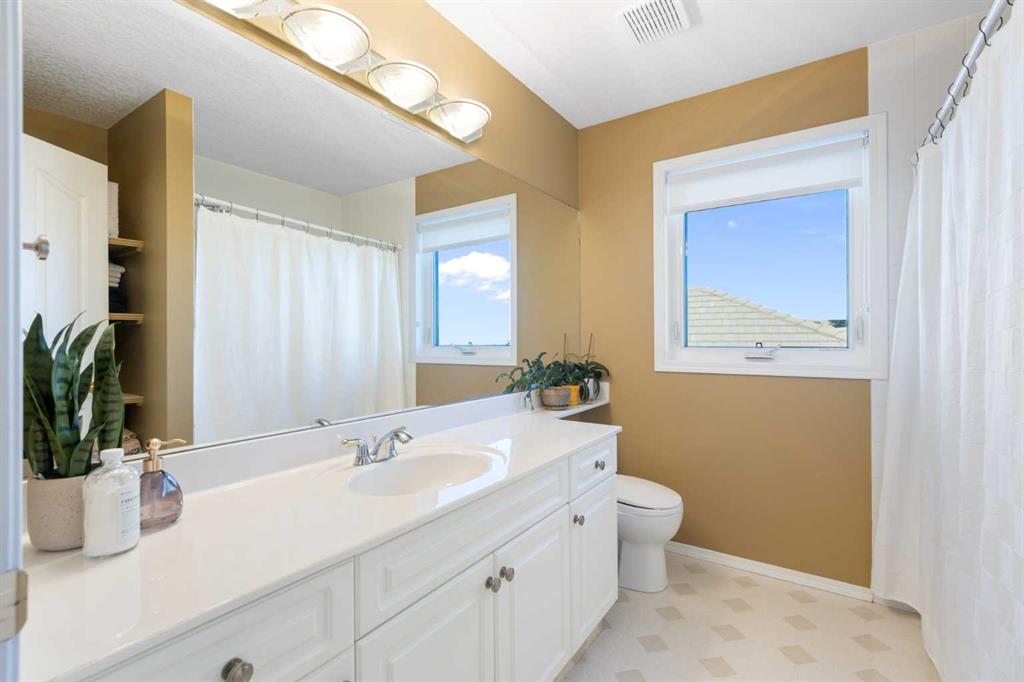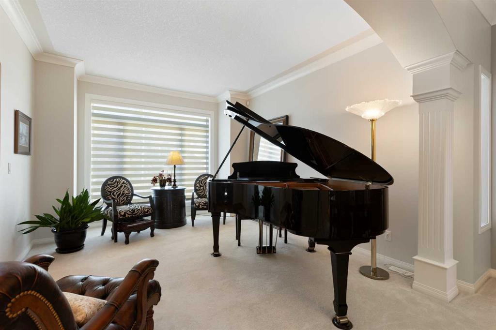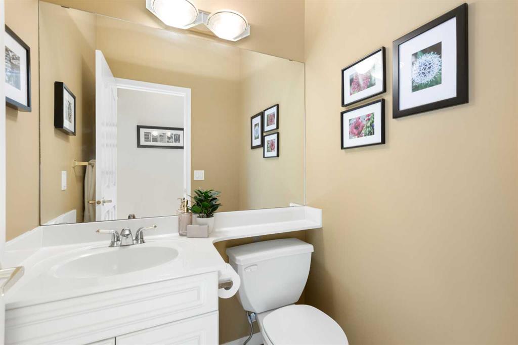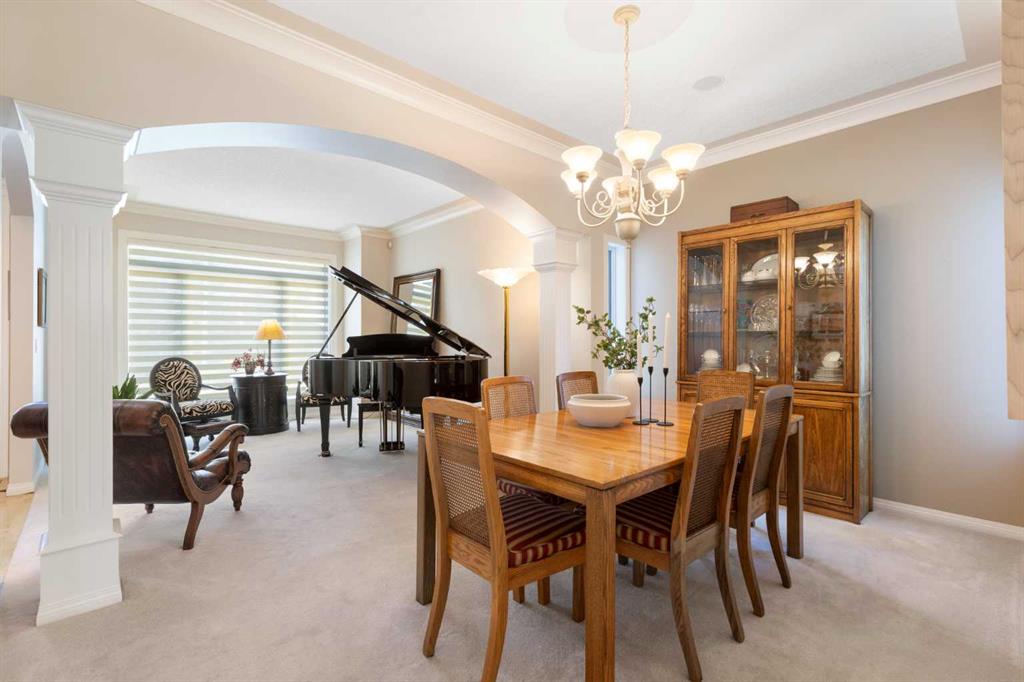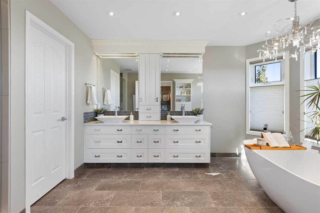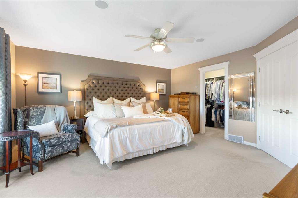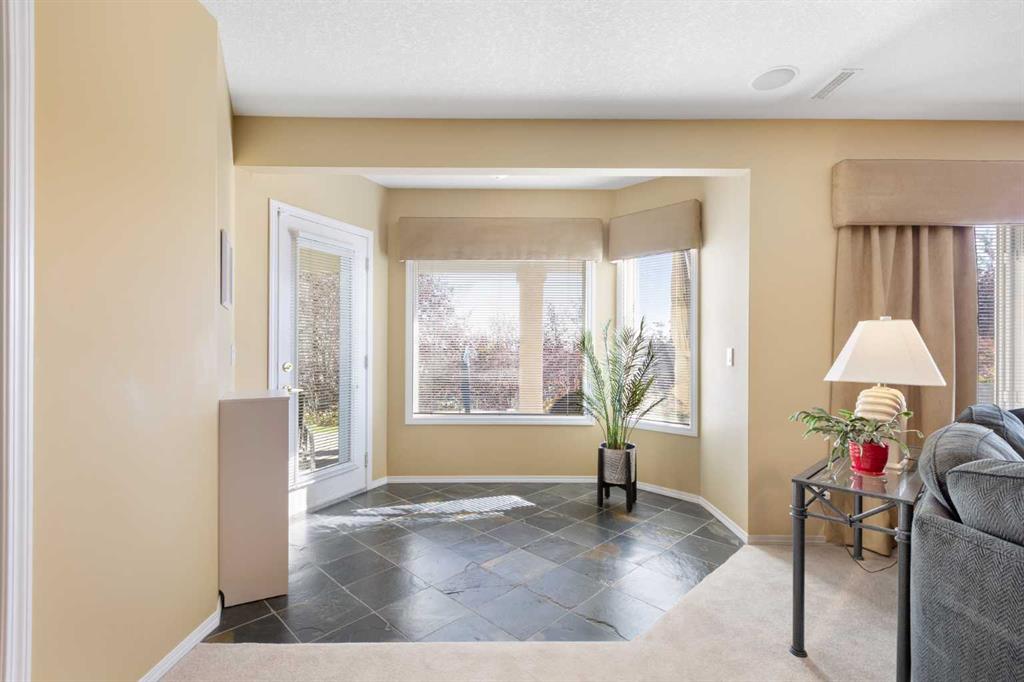 Backing onto the 16th hole of The Hamptons Golf Course, this meticulously maintained, single-owner walkout home offers nearly 4,000 sq. ft. of developed living space. Enjoy unobstructed east-facing sunrise views over the fairway, pond, and city, plus night-time city lights. The main floor features an open-concept kitchen, dining, and family area with gas-burning fireplace, main floor den with built-in cabinetry, and an upper deck with frameless glass railing and two gas connections for flexible outdoor living. The kitchen includes Sub-Zero 36” built-in fridge/freezer, Wolf 30” dual-fuel range, Panasonic microwave, Miele dishwasher, and hood fan, while Hunter Douglas window coverings enhance the main spaces. Upstairs, the home offers four spacious bedrooms, including a primary suite with custom ensuite (2015) featuring a standalone soaking tub, in-floor heating, glass-enclosed shower with rain head, custom cabinetry, and Kohler designer fixtures. TV mounts are in the living room and master bedroom. The walkout basement extends living space with a large office wired for internet and dual phone lines, custom maple cabinetry with media centre and bookcase, second gas-burning fireplace, and additional flex room ideal as a bedroom, gym, or hobby space. Direct access to a large interlocking patio provides private golf course views. An oak standalone bookcase at the bottom of the stairs is included. Other features include LG washer & dryer, two Amana high-efficiency furnaces, central A/C, two water heaters (2025), Kinetico water system, Vacu-Flo system with attachments, updated vinyl-clad windows (2015–2021), oversized two-and-a-half-car garage with large driveway, and a programmable in-ground irrigation system. Located on a quiet street and maintained as a no-pet home, this property combines exceptional design, premium finishes, and a premier golf course setting in The Hamptons, close to parks, schools, walking paths, and convenient access to Stoney Trail, Country Hills Boulevard, and Shaganappi Trail.