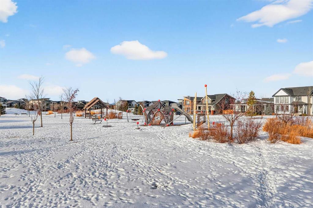 Experience the height of sophisticated living in this highly coveted luxury townhome, where a generous floor plan meets modern comfort and refined finishes. Proudly presented by StreetSide – this thoughtfully designed unit features 3 bedrooms, 2.5 bathrooms, and a front attached double car garage. The heart of the home is a spacious kitchen with a large central island, quartz countertops, modern slab style cabinets and drawers with soft close mechanisms, under cabinet lighting, and stainless-steel appliances. Luxury vinyl plank flooring throughout the main floor with tile options at the front and rear entrance, powder room, and laundry room. Plush carpet on the stairs, upper hallway, and bedrooms. The primary ensuite is a private sanctuary, complete with tile flooring, double sinks, a freestanding soaker tub, and an oversized tile-and-glass shower delivering spa-inspired comfort at home. The unfinished basement with roughed-in plumbing provides future potential for additional living space tailored to your needs. Professional landscaping and fencing complete your new home. Ideally located in the award-winning community of Harmony, residents enjoy Mickelson National Golf Course, private lake amenities, scenic walking and biking trails, and a wellness-focused lifestyle—just a shorty drive from Calgary city minutes and 45 minutes from the Rocky Mountains, where nature and convenience come together effortlessly.