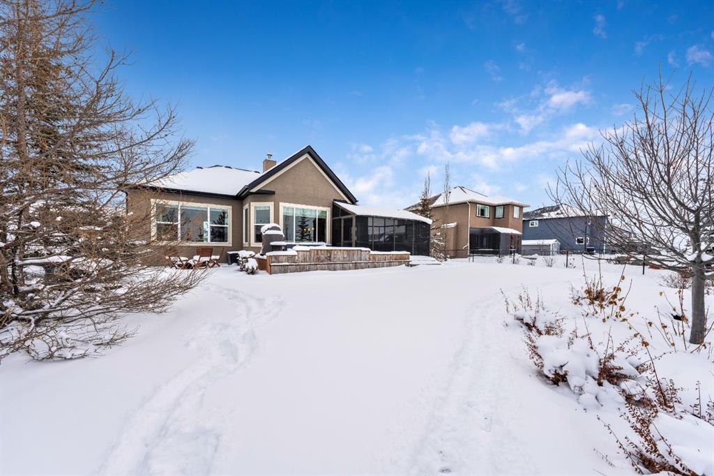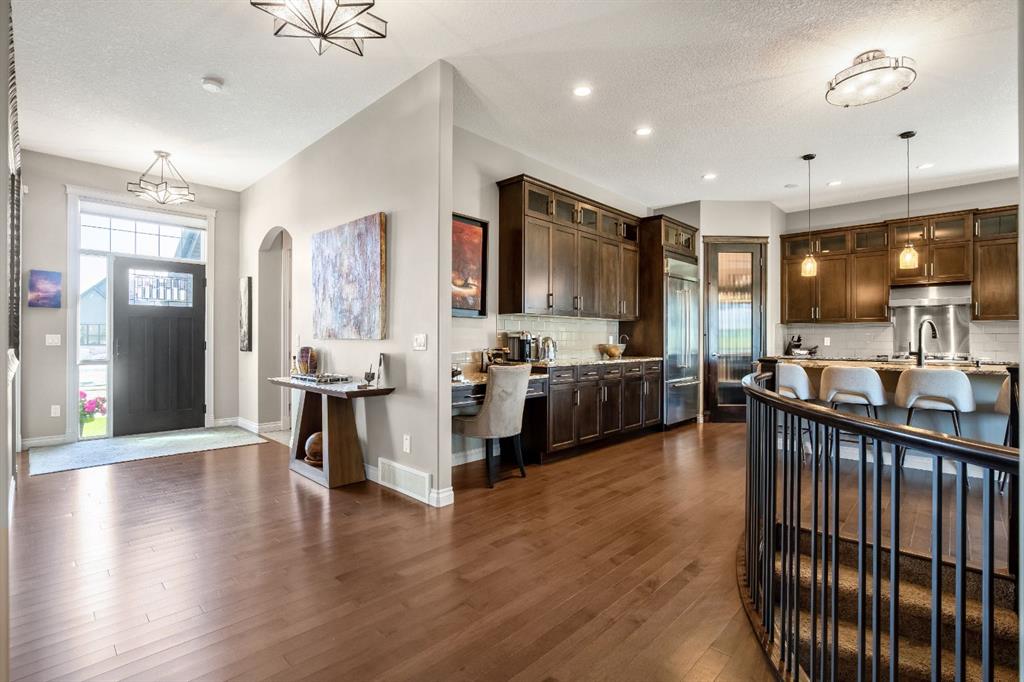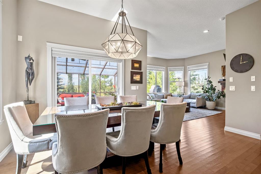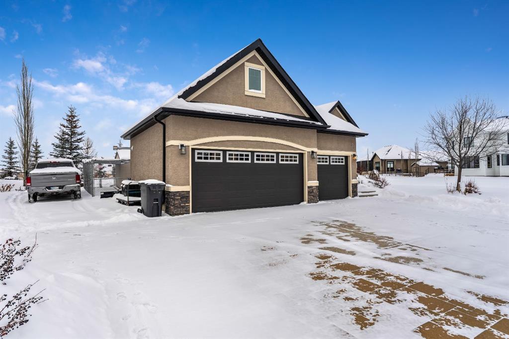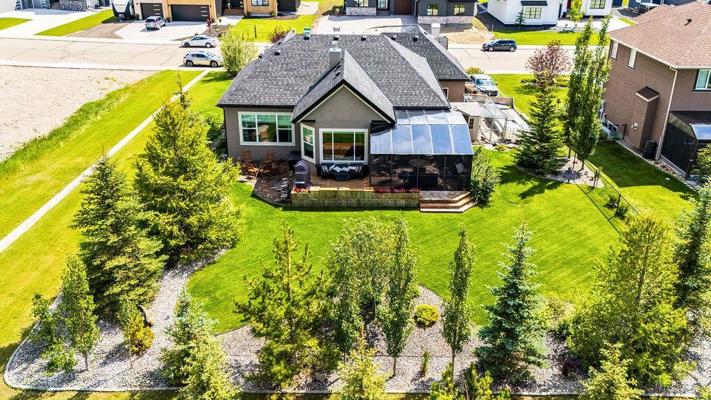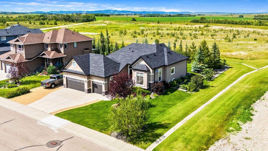 Recent upgrades include central air conditioning, a main-floor home speaker system, Hunter Douglas Silhouette blinds, a new roof with fascia and eavestroughs (2025), and new high end front and garage doors. The oversized, heated triple garage is exceptionally well equipped with 220V power, a large commercial sink, and plenty of room for vehicles, toys, and storage, with additional parking available. Outdoors, enjoy the expansive sunroom and tiered deck, all surrounded by your own private forest of trees and a dedicated dog run—creating a tranquil, secluded retreat. Located on a quiet street just minutes from Cochrane and a short drive to Canmore and Banff, this exceptional home delivers luxury, functionality, and the very best of city conveniences and country living in one remarkable package.
