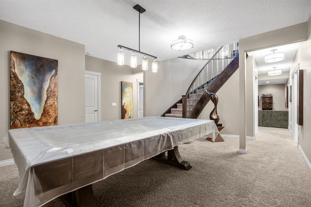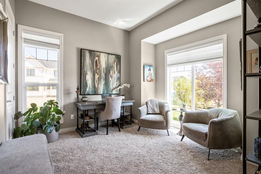 The primary suite is a true retreat, featuring double-door entry, a walk-in closet, and a spa-inspired 5-piece ensuite with soaker tub, tiled shower, and dual sinks. A front office or additional bedroom, full bathroom, and well-appointed laundry/mudroom complete the main level. The beautifully finished lower level offers a cozy media room, wet bar and games area, along with an expansive recreation area, three generous bedrooms, and a 5-piece bathroom—providing exceptional versatility for family and guests alike.