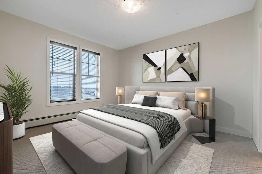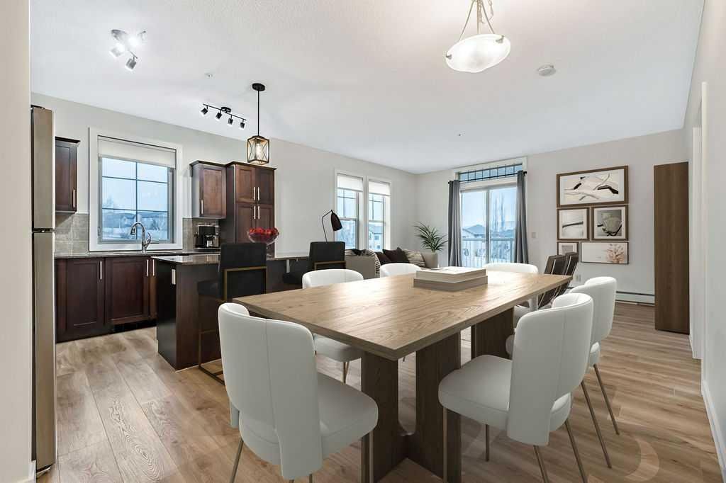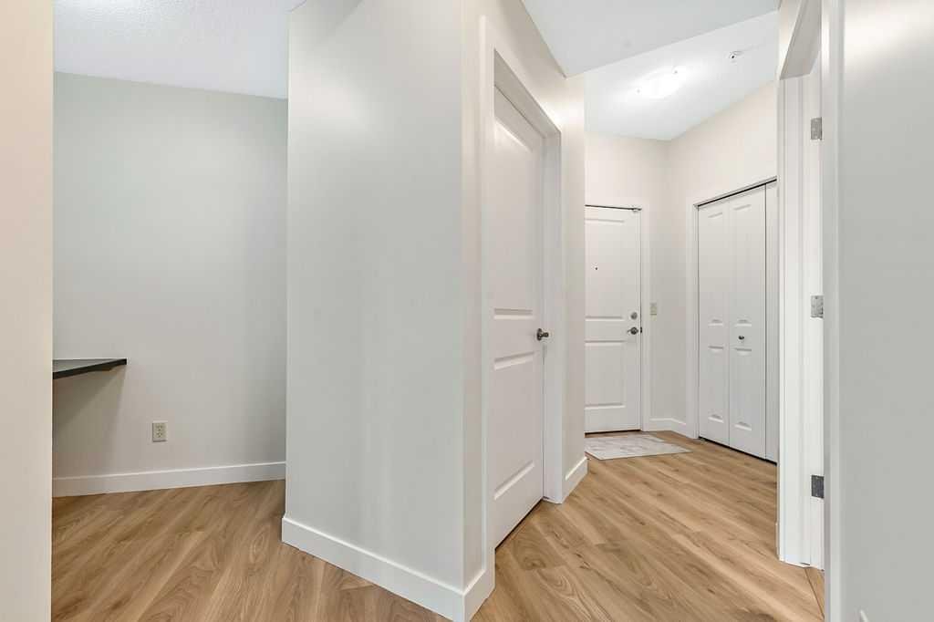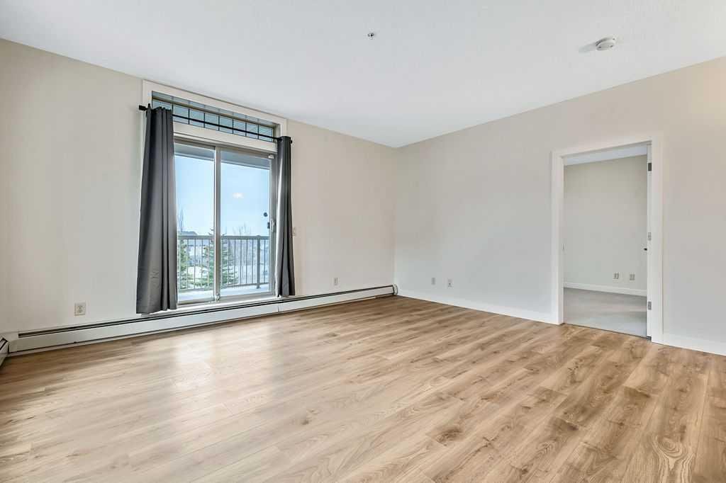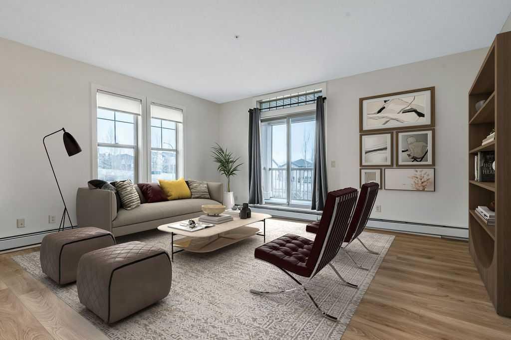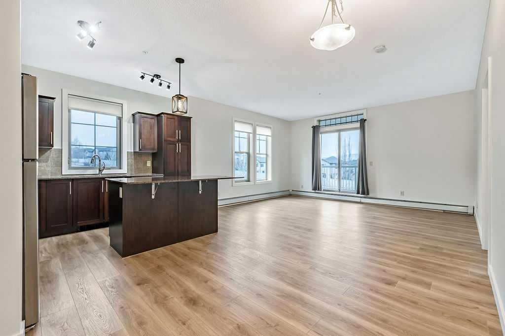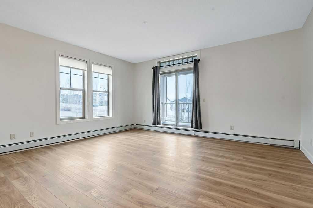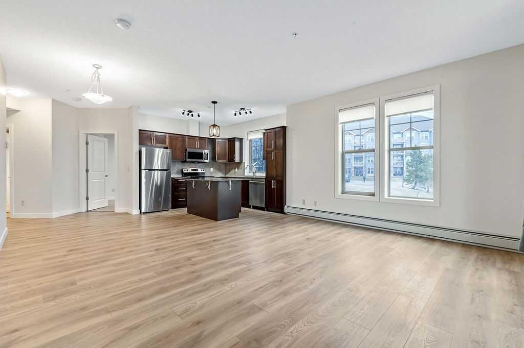 Bright corner unit at ‘Alora at Sunset Ridge’ — rare and ready to enjoy! This recently updated 2 bedroom + den condo is situated at the end of the floor, next to the stairwell, so it actually has no common walls! This lovely unit offers 2 full baths, in-suite laundry, brand new vinyl floors, fresh paint throughout and a recently replaced dishwasher. The open-plan living area is bright and spacious, filled with natural light thanks to the corner placement, and flows seamlessly to a very large southwest facing deck with stunning mountain views on a clear day — perfect for morning coffee or evening sunsets. The primary bedroom includes a walk-in closet and private ensuite for added comfort and convenience. The second bedroom is ideally situated on the opposite side of the unit, next to the second bathroom. You’ll also appreciate two parking stalls and a large storage locker. Alora is well managed and maintained, with an active social club, fitness facility, and a guest suite for visiting family and friends. Cochrane is a vibrant, growing centre that still feels like small-town living — close-knit, friendly, and full of amenities. If you’re looking for a bright, move-in ready home with great facilities and spectacular views, this one’s worth a look — contact your Realtor to arrange a showing.