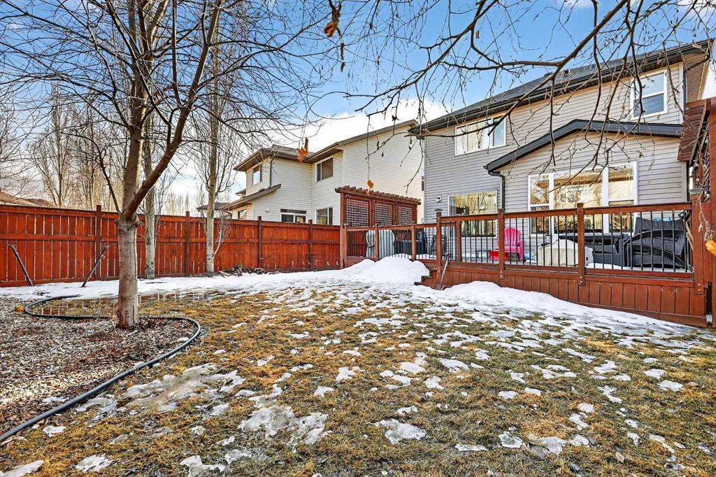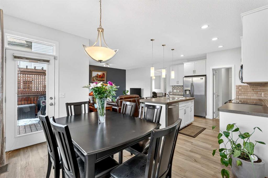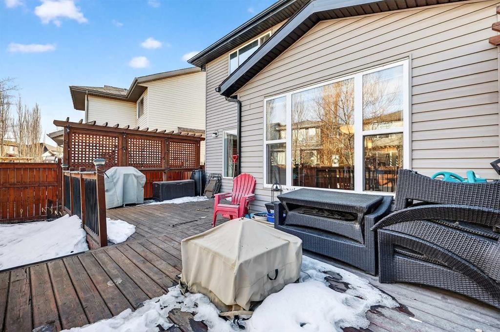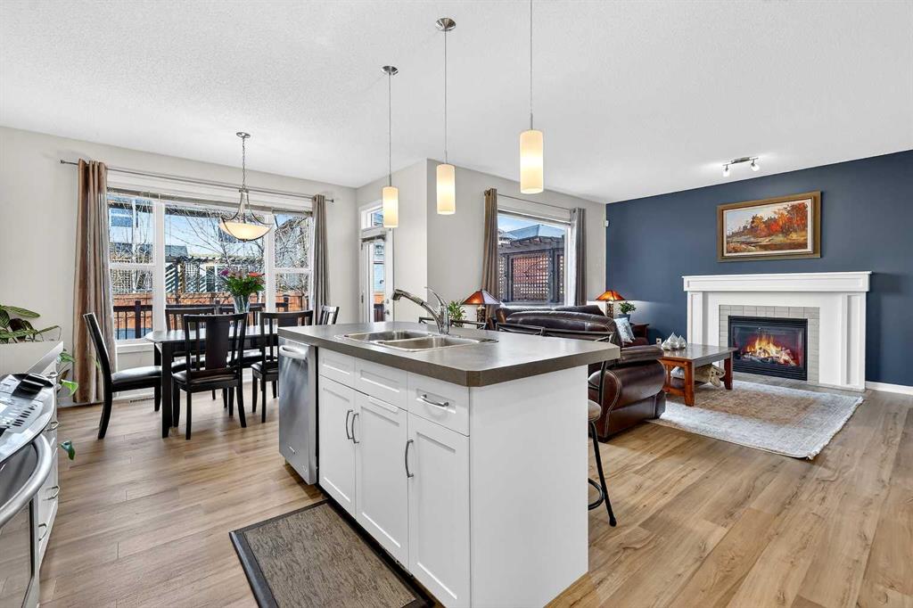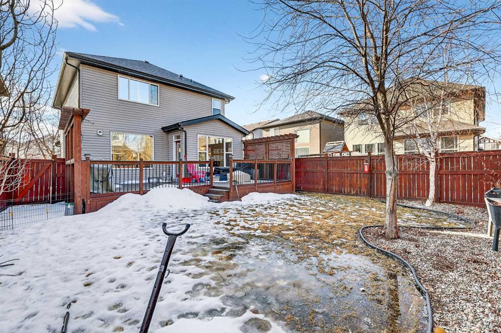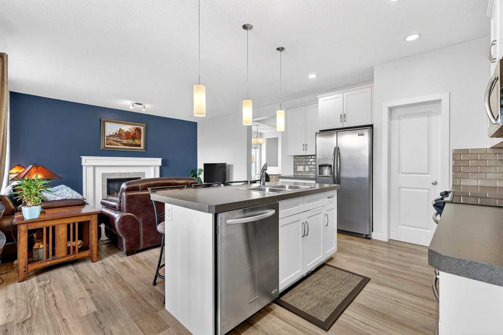 Welcome to this fully finished 5-bedroom home in the highly desirable lake community of Auburn Bay in southeast Calgary. A neighborhood known for its year-round lake community amenities, parks, pathways, strong community atmosphere, and access to quality schools that make it especially attractive for families. Offering three levels of developed living space, this home delivers exceptional flexibility and long-term value. The main floor features durable luxury vinyl plank flooring and a bright open-concept layout that seamlessly connects the kitchen, dining, and living areas — ideal for both everyday living and entertaining. The modern white kitchen is anchored by a large island, stainless steel appliances, and ample cabinetry. A front flex room provides versatility for a home office, formal dining space, or additional sitting area. The living room is warmed by a gas fireplace, creating a comfortable gathering space year-round. Upstairs, you’ll find four bedrooms, including a spacious primary suite complete with a full ensuite featuring a tile-and-glass shower and separate soaker tub. The fourth upper bedroom offers flexibility as a bedroom, playroom, or bonus room depending on your needs. An additional full bathroom and newly installed carpet throughout the upper level adds comfort and move-in-ready appeal. The fully finished lower level expands the home’s functionality with a fifth bedroom, full bathroom, generous family room with a second gas fireplace, and a dedicated tech or study space — ideal for guests, teenagers, or multi-generational living. Step outside to enjoy the fully landscaped east-facing backyard, complete with an oversized full-width deck designed to capture the warm sun. Perfect for summer entertaining and relaxing evenings. A double attached garage adds convenience and storage. Recent updates provide peace of mind, including new shingles (2025), new hot water tank (2025), and furnace cleaning and maintenance completed in 2025. Located in a community celebrated for its lake amenities, nearby schools, playgrounds, and quick access to major routes and shopping, this home offers the space families need with the lifestyle and value today’s buyers are seeking.