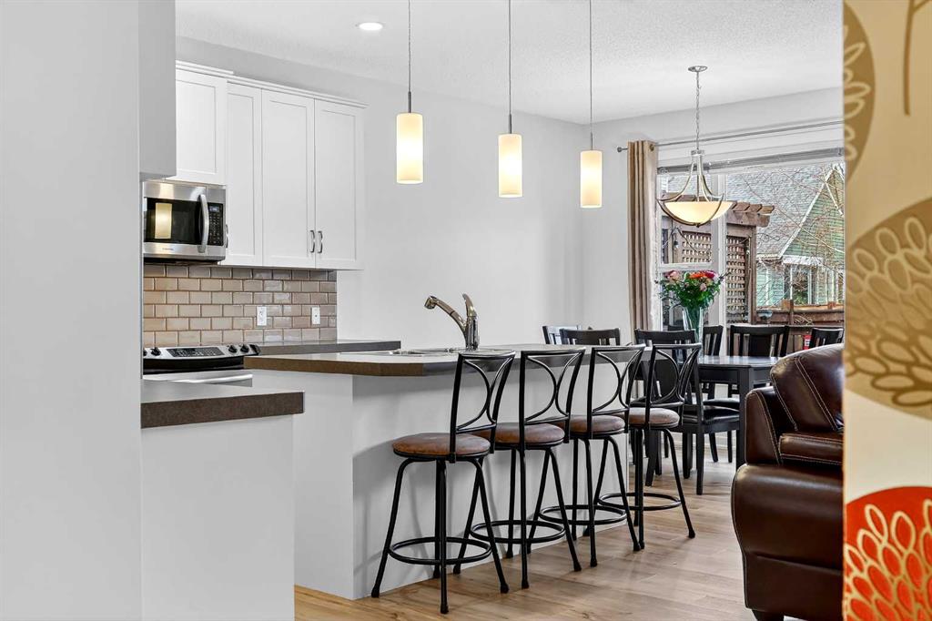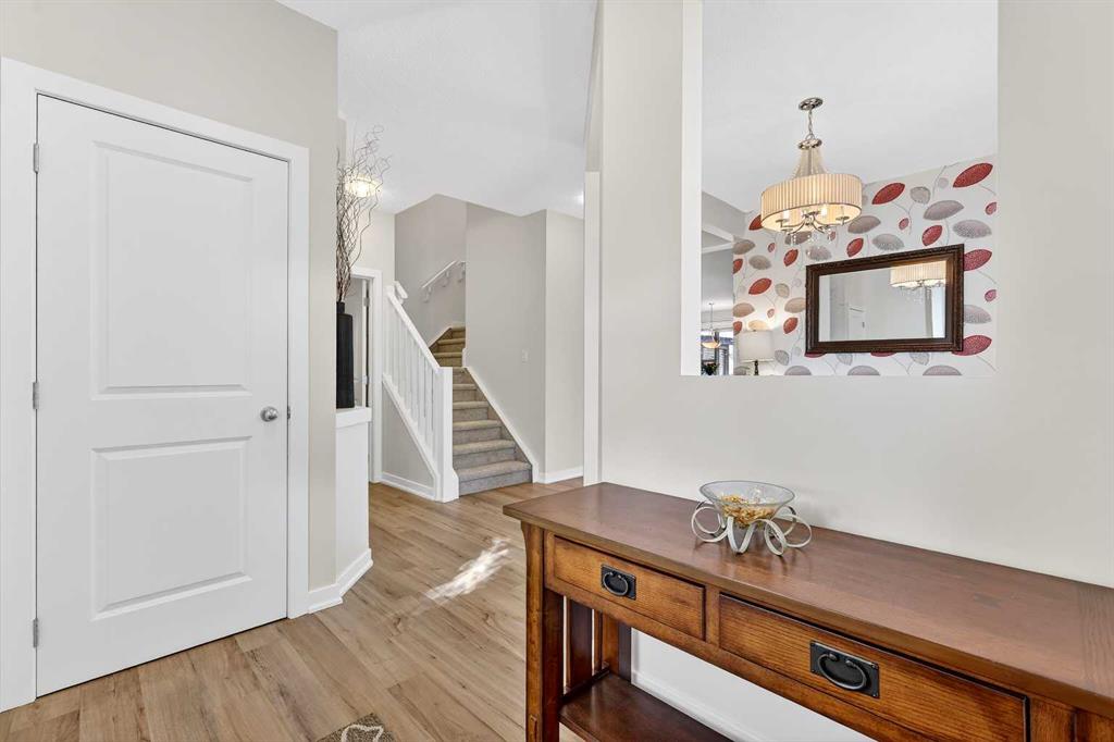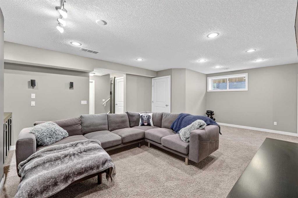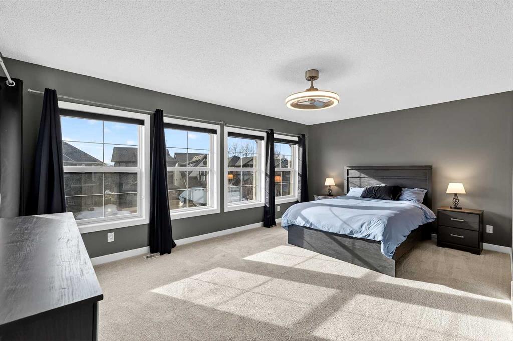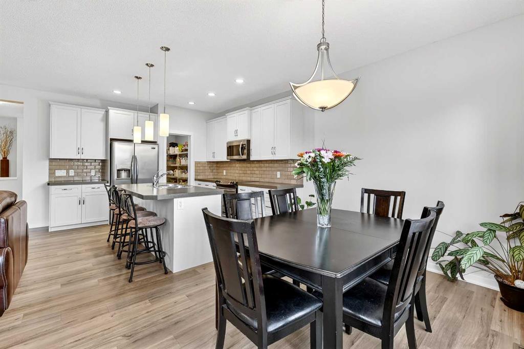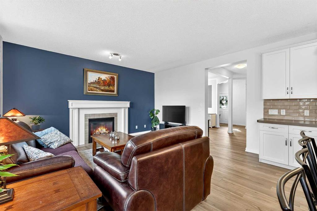 Welcome to this fully finished 5-bedroom home in the highly desirable lake community of Auburn Bay in southeast Calgary. A neighborhood known for its year-round lake community amenities, parks, pathways, strong community atmosphere, and access to quality schools that make it especially attractive for families. Offering three levels of developed living space, this home delivers exceptional flexibility and long-term value. The main floor features durable luxury vinyl plank flooring and a bright open-concept layout that seamlessly connects the kitchen, dining, and living areas — ideal for both everyday living and entertaining. The modern white kitchen is anchored by a large island, stainless steel appliances, and ample cabinetry. A front flex room provides versatility for a home office, formal dining space, or additional sitting area. The living room is warmed by a gas fireplace, creating a comfortable gathering space year-round. Upstairs, you’ll find four bedrooms, including a spacious primary suite complete with a full ensuite featuring a tile-and-glass shower and separate soaker tub. The fourth upper bedroom offers flexibility as a bedroom, playroom, or bonus room depending on your needs. An additional full bathroom and newly installed carpet throughout the upper level adds comfort and move-in-ready appeal. The fully finished lower level expands the home’s functionality with a fifth bedroom, full bathroom, generous family room with a second gas fireplace, and a dedicated tech or study space — ideal for guests, teenagers, or multi-generational living. Step outside to enjoy the fully landscaped east-facing backyard, complete with an oversized full-width deck designed to capture the warm sun. Perfect for summer entertaining and relaxing evenings. A double attached garage adds convenience and storage. Recent updates provide peace of mind, including new shingles (2025), new hot water tank (2025), and furnace cleaning and maintenance completed in 2025. Located in a community celebrated for its lake amenities, nearby schools, playgrounds, and quick access to major routes and shopping, this home offers the space families need with the lifestyle and value today’s buyers are seeking.