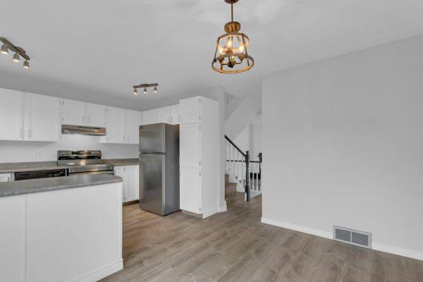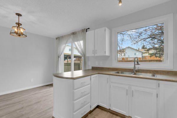 OPEN HOUSE SUN APRIL 19th: 12 -3PM. This home checks the boxes! NO CONDO FEES! Many upgrades which include many brand new windows, and a brand new stainless steel fridge and stove, dishwasher in 2019, washer in 2021 and dryer in 2020. The roof shingles were new in 2019 and the furnace in 2020. The hot water tank was replaced in 2022. There are upgraded laminate floors, upgraded bathroom vanities and a beautiful new Bathfitter tub & surround in the upstairs bathroom. With LED lights, a fresh coat of paint throughout, and so many updates, this property will provide a safe and secure place to call home for years to come! There are a total of 4 bedrooms with one in the basement plus a recreation room that just needs the ceiling finished. Enjoy the big south facing deck off the new patio doors, and a big pie-shaped backyard with a covered pergola. The garden shed is powered with electricity. Previously, the occupants parked two cars off street behind the back fence, but there is plenty of room to build a garage or plan other off street parking on the lot, plus there is on street parking as well. The living room features a cozy woodburning fireplace and the primary bedroom features a vaulted ceiling and a modern ceiling fan. Located on a quiet cul-de-sac across from a huge park space, you’ll appreciate that the community centre, schools, churches, playgrounds, shops, and bus are all within walking distance. Close to South Glenmore Park, Costco, Southcentre and so much more with easy access to the Stoney Trail ring road.