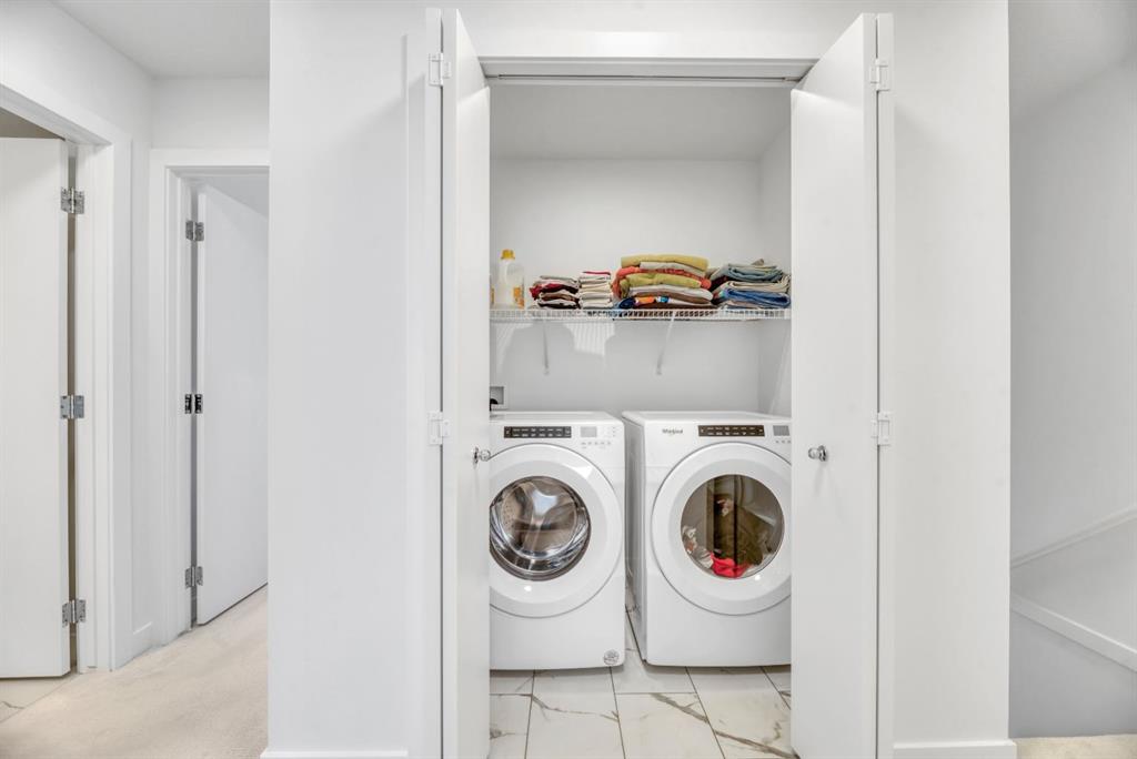 The upper level hosts three well-sized bedrooms, including a comfortable primary suite with a walk-in closet and private ensuite. A full laundry area and an additional bathroom complete this level.