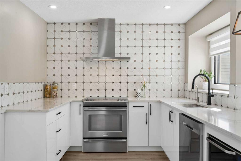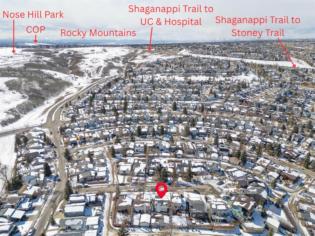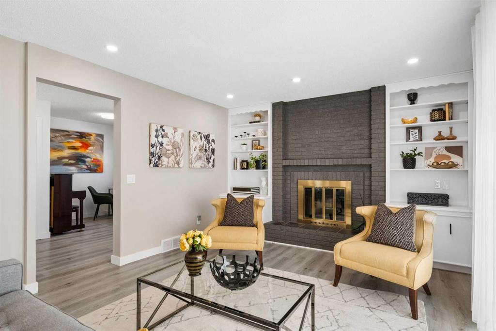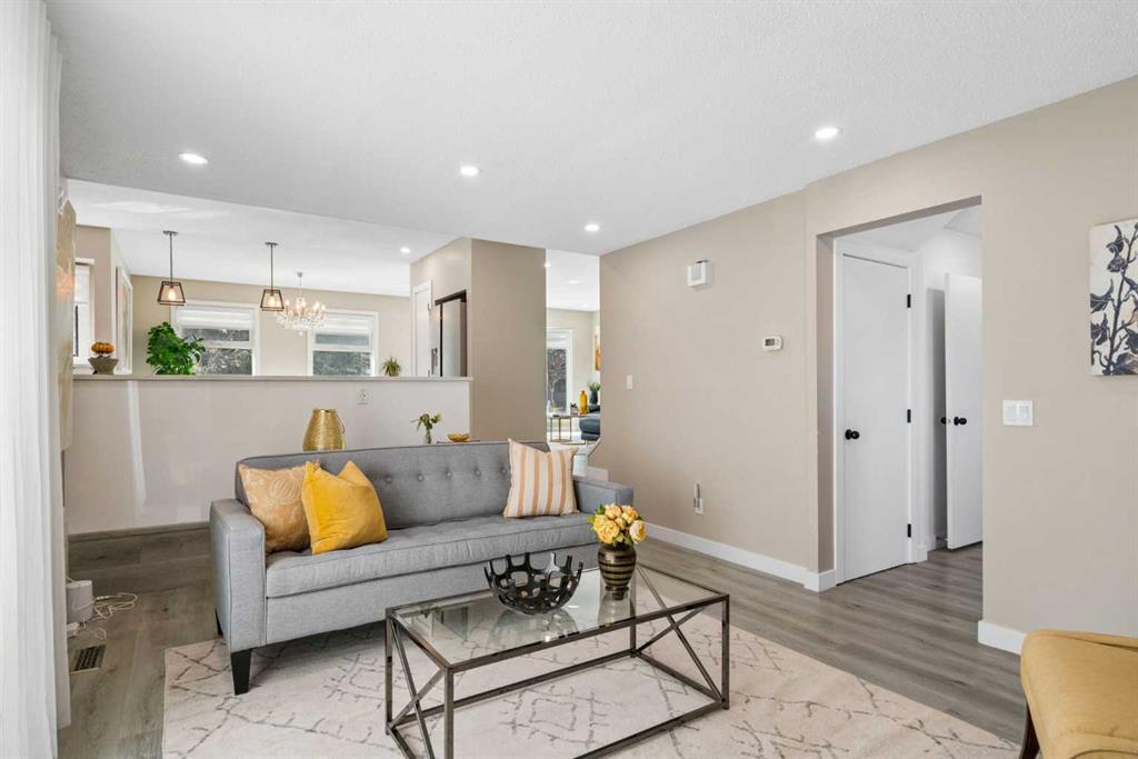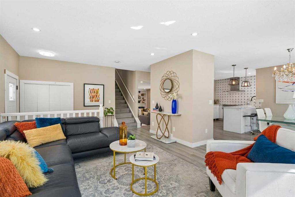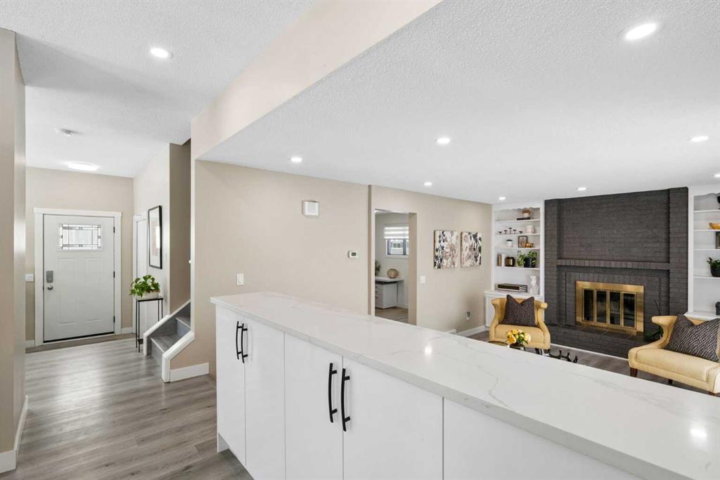 Welcome to this thoroughly renovated over 2150sqft of finished living spaces featuring a total of 4 bedrooms, 1 office, 1 den and 3.5 Bathrooms nested on a quiet cul-de-sac in very family-oriented community MacEwan Glen. Just steps from Nose Hill Park, easy access to scenic walking paths and green space, quick connections to Stoney Trail, Deerfoot Trail, and a convenient commute downtown via 14th Street. Upon entering, you will be impressed by the fully renovated atmosphere and open concept layout. The main floor begins with a bright living room with a new west facing bay window and a dining area with two new west facing picture windows. The thoroughly renovated stunning kitchen has extended white cabinetry, nice quartz countertops, and high-end stainless-steel appliances. The adjacent spacious family room offers a wood fireplace, built-in bookcase, and a French Door leading to the side new composite deck. Behind is a nice office with a big window and a door towards the backyard deck. A convenient new powder room with a laundry area completes the main level. Upper level features a primary bedroom with two side picture windows, walk-in closet and 4-piece bathroom, two other bedrooms, and one 3-piece family bathroom. The basement is fully finished with one nice kitchen, one spacious recreation room, one bedroom with an egress window, a den, and a 3-piece full bathroom. Outside, the fully fenced yard offers large extended deck for seating, enjoying sunshine, and barbecue with family. Other updates include Siding (2016), Hot Water Tank (2017), Part Windows (2023-2024), Shed (2024), Roof (2025), Deck & Fence & Patio (2025), Furnace (2025) and Washer & Dryer (2025). MacEwan Glen is a quiet, family-friendly community in NW Calgary with tree-lined streets, parks, close to schools, and quick connections to transit, shopping, and the extensive trails of Nose Hill Park. An easy commute to downtown, U of C, and SAIT. Best opportunity to own a thoroughly renovated house! Check 3D Tour and Book your showing Today!