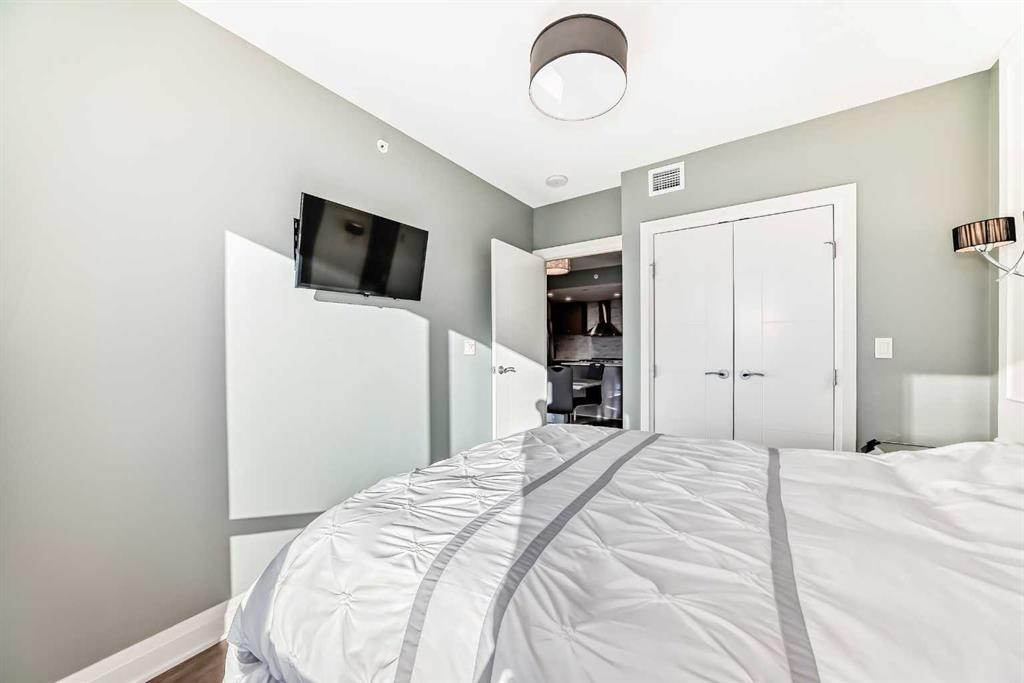 Experience the pinnacle of downtown luxury in this 2 bedroom, 2 bathroom, titled parking, SW-facing corner unit at VOGUE. Sold fully furnished and turnkey, this “Orion” floorplan is situated on one of the exclusive “Bedouin Suites” floors, featuring elite upgrades not found in the rest of the building. Floor-to-ceiling windows frame breathtaking mountain and river views, flooding the space with natural light. The interior boasts premium walnut built-ins, custom bedroom paneling, and a chef-inspired kitchen with an upgraded central island and quartz finishes. Both bedrooms act as private retreats, flanking the living area for maximum privacy. Perfect for investors, professionals and empty nesters. Beyond the unit, enjoy executive amenities including a 36th-floor Sky Gym and 24/7 concierge. Prime West End location steps to the river pathway, C-Train, downtown, and trendy Kensington. Condo fees are $610.35/month, including all utilities except electricity.