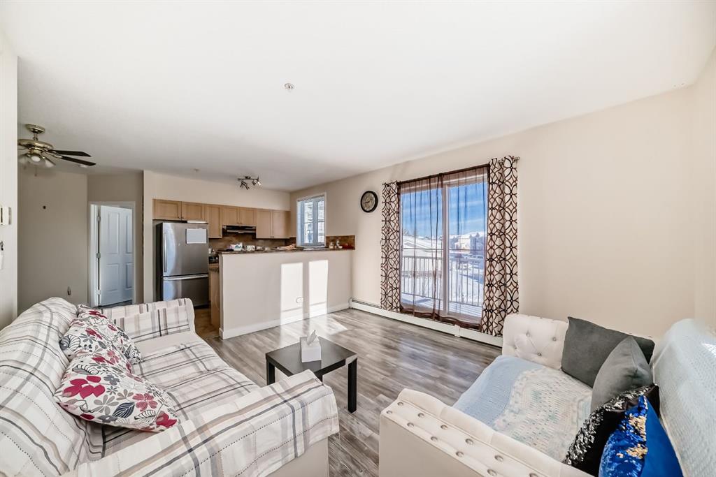 Welcome to this beautiful, bright, and spacious 2-bedroom, 2 full bathroom corner apartment located in the highly desirable community of Taradale. Offering 883.50sq. ft. of well-designed living space, this unit is filled with natural sunlight throughout the day thanks to its corner positioning and large windows in both bedrooms, the kitchen, and living area. The open-concept layout creates a comfortable and airy feel, perfect for both everyday living and entertaining. The primary bedroom features a walk-in closet and private ensuite, while the second full bathroom provides added convenience for family or guests. Enjoy a private balcony with an open view, along with the practicality of in-unit laundry, separate storage, and one assigned parking stall, plus ample street parking. This secure building is ideally situated just steps from everyday amenities, including Taradale Lake, schools, playgrounds, grocery stores, restaurants, and public transit, as well as being close to 80 Plaza. Perfect for first-time buyers, small families, or investors, this well-maintained home offers exceptional value in a vibrant and convenient location.