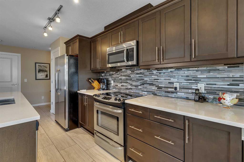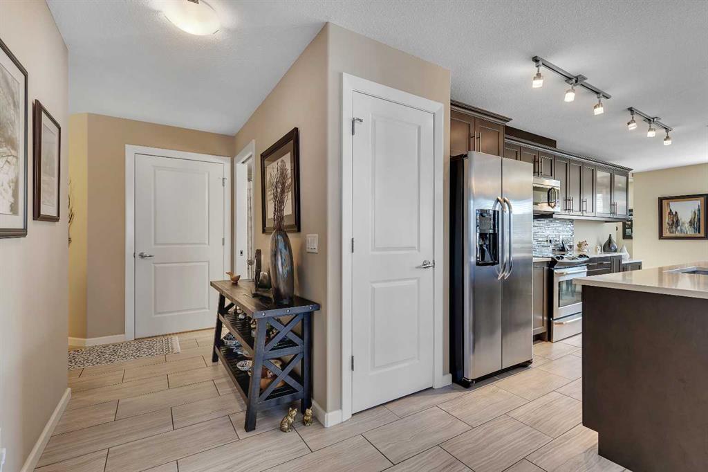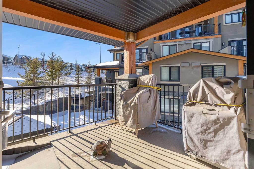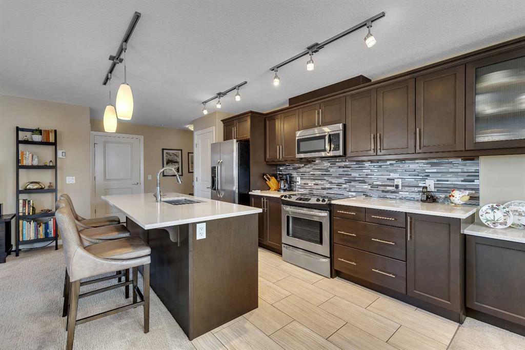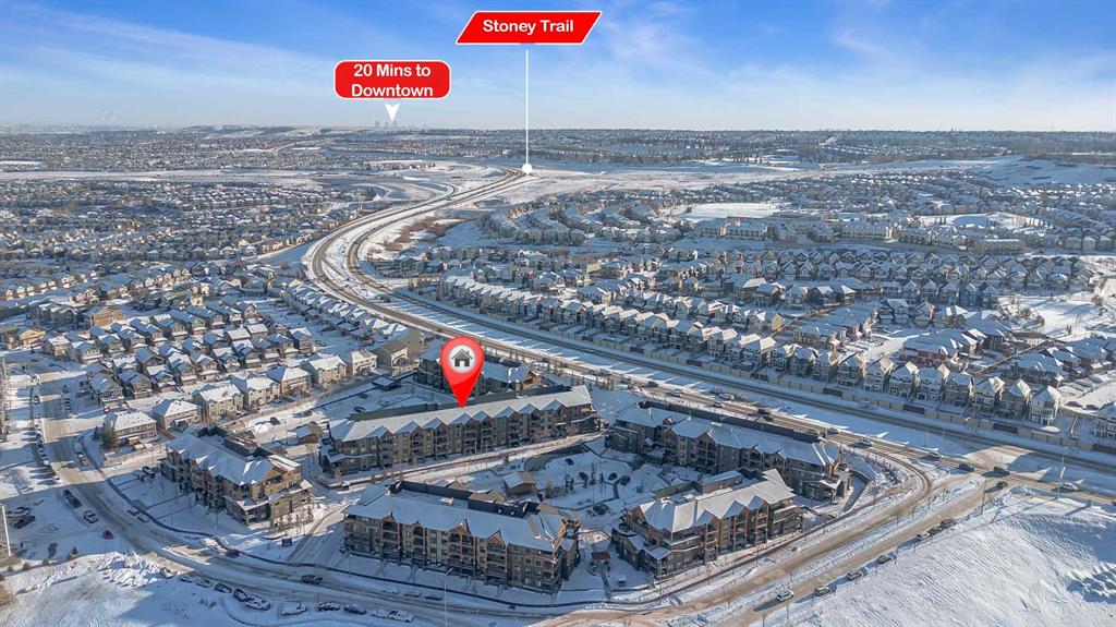 Stunning 1145 sq. Ft apartment, 2 heated underground titled parking stalls, 2 Bedrooms + Den, Corner End-Unit in the Luxurious Adult (18+) Complex of Kincora Summit. This Elegant Condo offers spacious open concept w/ In-Floor Heating, A/C & designer touches throughout, custom built in shelves in pantry, laundry & storage closets, living Room with Access to private covered balcony, gourmet kitchen w/ Quartz Counters & upgraded extended cabinets, Island, top of the line Stainless Steel Appliances & Tiled Floors, Master Quarter with Walk-through Closet & 3 pc Ensuite, Second Bedroom & Large Den with built in custom cabinets, 4 pc Main Bath, Convenient In-Suite Laundry, Titled Storage Locker on the Same Floor next to Elevator & Secure Titled Underground Parking Stalls. Well, Maintained Complex w/ Ample Visitor Parking. Walking Distance to Walmart, T&T Market, McDonalds and a variety of other restaurants and services. Also close to green spaces, bus & all other amenities. Easy access to Stoney Trail, Airport & University of Calgary. This unit shows pride of ownership. Click on link to view 360 tour.
