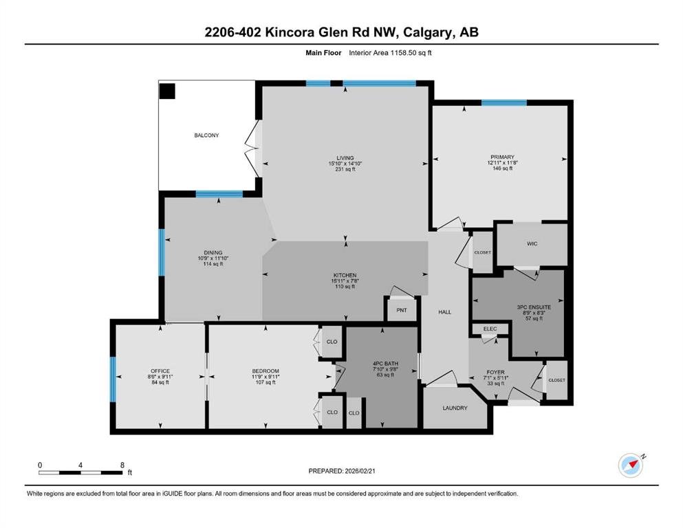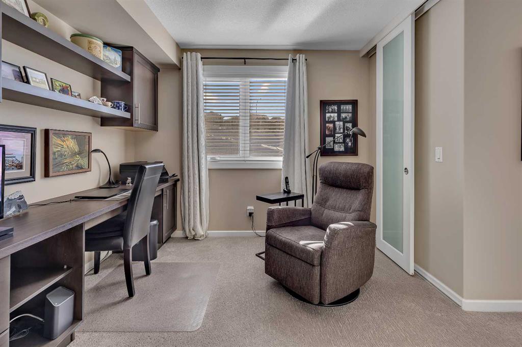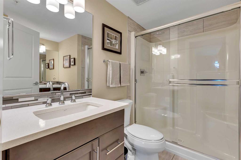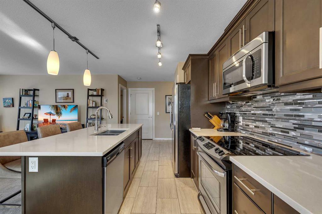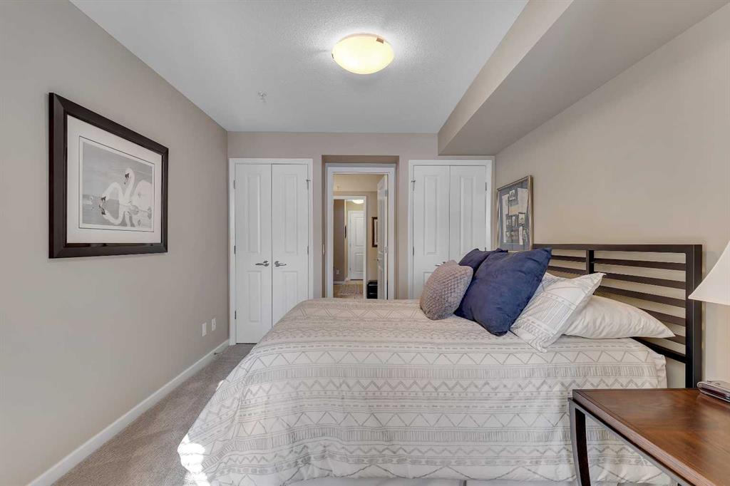 Stunning 1145 sq. Ft apartment, 2 heated underground titled parking stalls, 2 Bedrooms + Den, Corner End-Unit in the Luxurious Adult (18+) Complex of Kincora Summit. This Elegant Condo offers spacious open concept w/ In-Floor Heating, A/C & designer touches throughout, custom built in shelves in pantry, laundry & storage closets, living Room with Access to private covered balcony, gourmet kitchen w/ Quartz Counters & upgraded extended cabinets, Island, top of the line Stainless Steel Appliances & Tiled Floors, Master Quarter with Walk-through Closet & 3 pc Ensuite, Second Bedroom & Large Den with built in custom cabinets, 4 pc Main Bath, Convenient In-Suite Laundry, Titled Storage Locker on the Same Floor next to Elevator & Secure Titled Underground Parking Stalls. Well, Maintained Complex w/ Ample Visitor Parking. Walking Distance to Walmart, T&T Market, McDonalds and a variety of other restaurants and services. Also close to green spaces, bus & all other amenities. Easy access to Stoney Trail, Airport & University of Calgary. This unit shows pride of ownership. Click on link to view 360 tour.