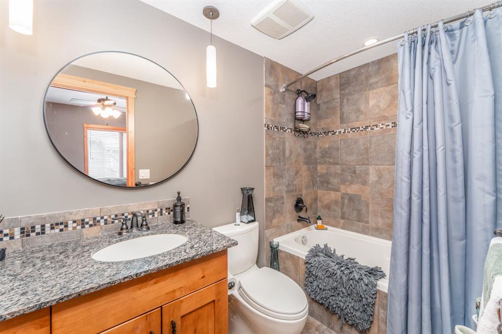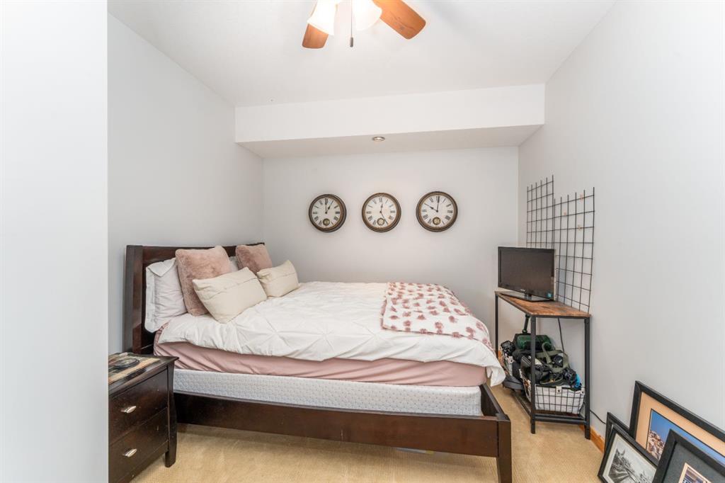 This warm and inviting 1 bedroom plus den, 2 bathroom condo features an open-concept layout highlighted by rich hardwood floors, timber accents, and a stunning stone gas fireplace that creates the perfect alpine atmosphere. The kitchen offers granite countertops, stainless steel appliances, slate tile backsplash, and a spacious eating bar ideal for entertaining. Large windows and sliding doors bring in plenty of natural light and lead to a private covered balcony where you can relax and take in the peaceful mountain surroundings. The primary bedroom features a well-appointed ensuite, while the second bedroom provides flexible space for guests, family, or a home office. Additional features include in-suite laundry, ample storage, and quality finishings throughout. Located in the desirable community of Stewart Creek, you’ll enjoy easy access to walking trails, golf, and all the amenities of Canmore while being surrounded by the beauty of the Rockey Mountains.