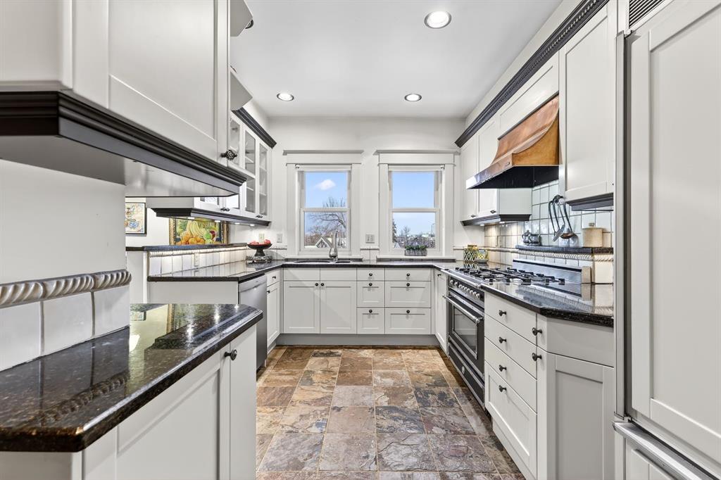The kitchen and views are true standouts—updated by Empire Kitchen & Bath, featuring Downsview cabinetry, a Sub-Zero refrigerator, and city-facing windows that flood the space with natural light. Empire remains on standby should the next owner wish to further enhance the space with one of Calgary’s premier renovation teams.