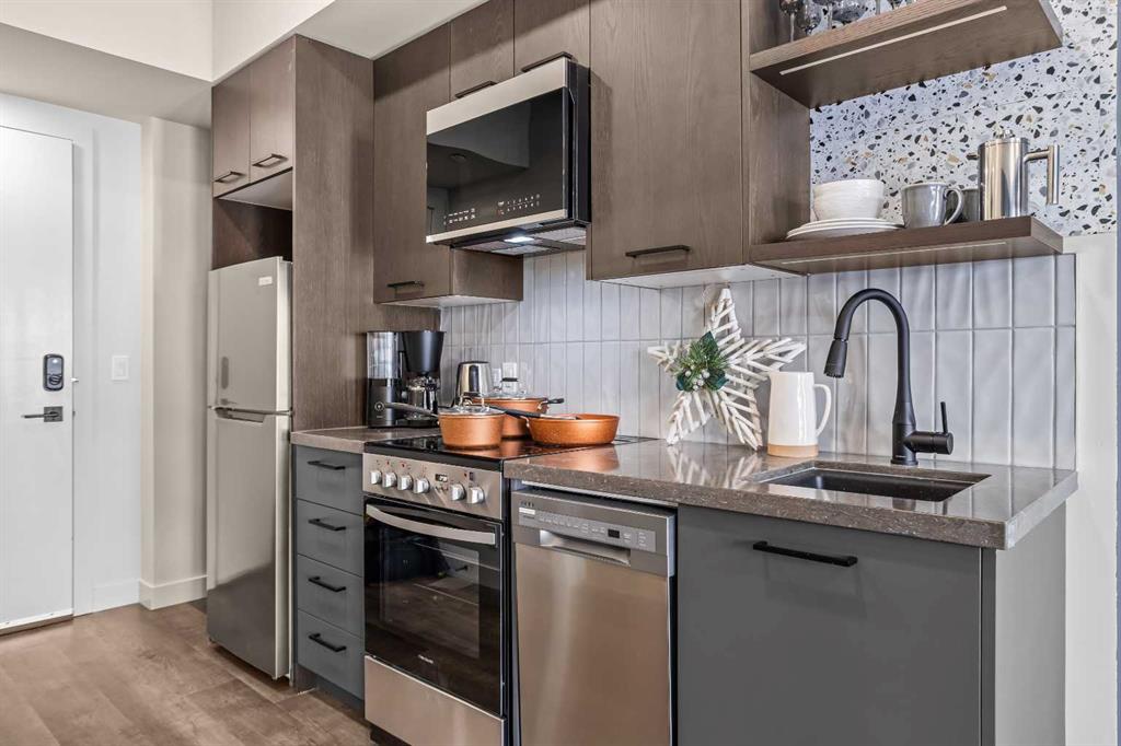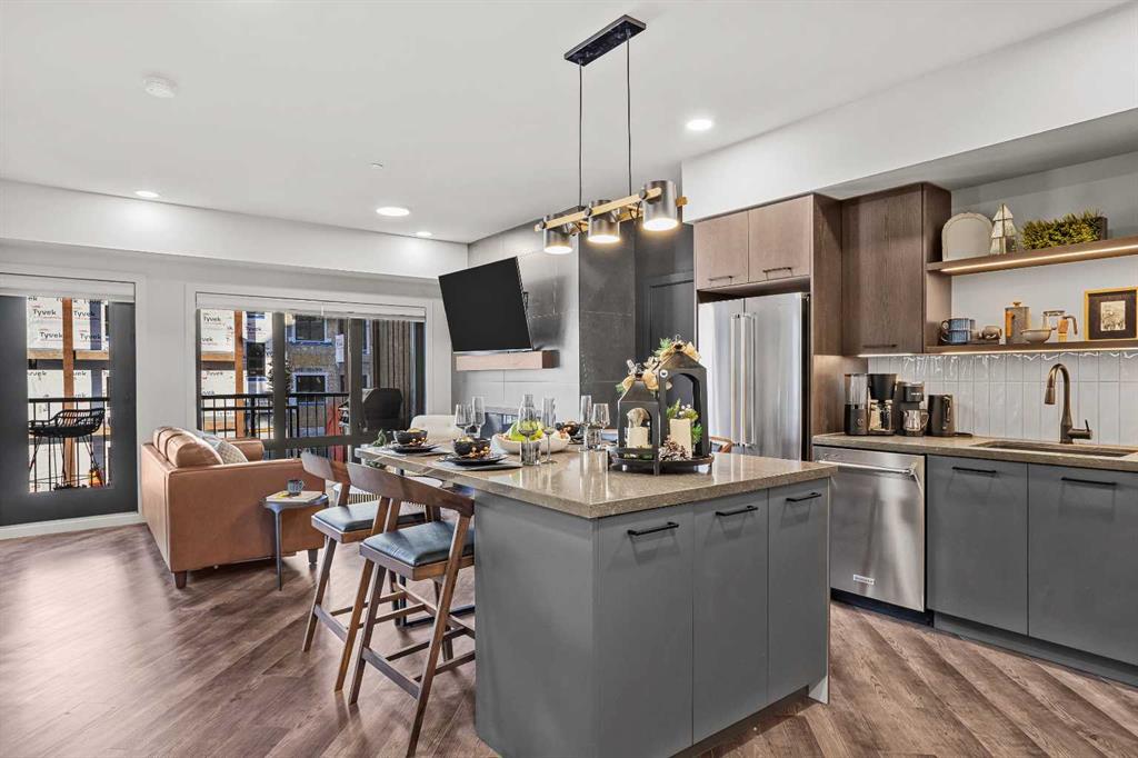 Brand new three bedroom, three bathroom lockoff residence in Ascent Canmore, Canmore’s newest luxury mountain development, offering exceptional flexibility, comfort, and long term appeal. This intelligently designed home can be enjoyed as a full three bedroom residence or separated into a two bedroom suite plus a fully self contained lockoff studio with its own full kitchen, creating excellent options for personal use, hosting guests, or short term rental opportunities. Stunning south facing mountain views can be enjoyed from every window, while three private decks provide the perfect place to relax and take in the surrounding scenery throughout the seasons. The bright open concept layout features a well appointed kitchen with island seating, generous dining space, and a welcoming living area, all designed to flow seamlessly and maximize natural light. Over $80,000 has been invested in luxury upgrades including high end furnishings, kitchenwares, custom window coverings, and professionally curated décor, making the unit completely turnkey and ready for immediate enjoyment. Thoughtful details such as secure owner storage, excellent bedroom separation, and three full bathrooms enhance both functionality and privacy. Ascent Canmore offers resort style amenities including an outdoor swimming pool and hot tub where you can unwind while enjoying mountain views, as well as a spacious and fully equipped fitness center. Underground parking and a dedicated storage locker provide year round convenience. This lockoff configuration is well suited to Canmore’s short term rental environment while still offering a refined and comfortable mountain retreat. CONSULT YOUR ACCOUNTANT ABOUT GST DEFERRAL