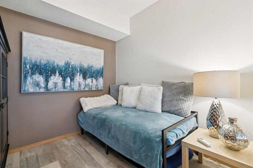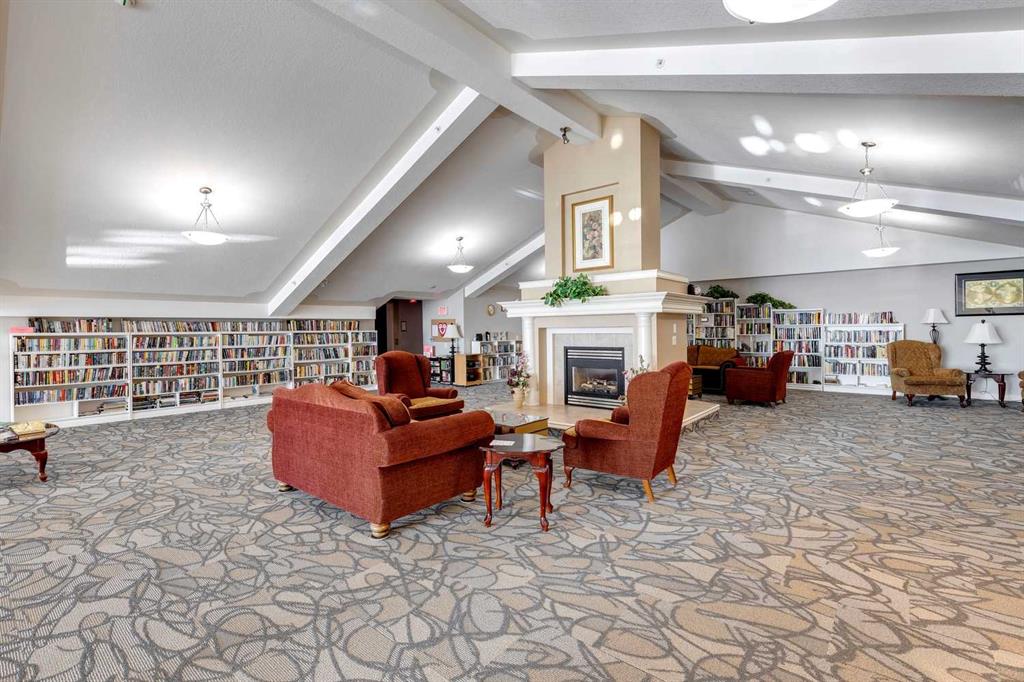 Welcome to this beautifully maintained 2 bedroom plus condo in the highly sought-after 40+ adult-living community of Sierras of Tuscany. Offering a perfect blend of comfort, space, and lifestyle. The spacious living area is warm and inviting, featuring a cozy gas fireplace—perfect for relaxing evenings. The classic kitchen is both functional and timeless, complete with quartz countertops and ample cabinetry, flowing seamlessly into a bright eating area filled with natural light. The large primary bedroom offers a peaceful retreat with a walk-in closet and private ensuite while a separate bedroom/den provides the perfect space for a home office or guest area. An additional 3-piece bathroom adds convenience for visitors. What truly sets this property apart is the exceptional range of amenities available within the complex. Residents enjoy access to an impressive indoor saltwater pool, hot tub, fitness facilities, bowling alley, movie theatre, ballroom, games room with pool tables, workshop, car wash, and more. Creative spaces like the arts & crafts room and community kitchen foster connection, while the library and quiet reading areas showcase stunning panoramic views of the Rocky Mountains. For visiting family and friends, well-appointed guest suites are also available. A rare opportunity to enjoy resort-style living in a vibrant and welcoming community.