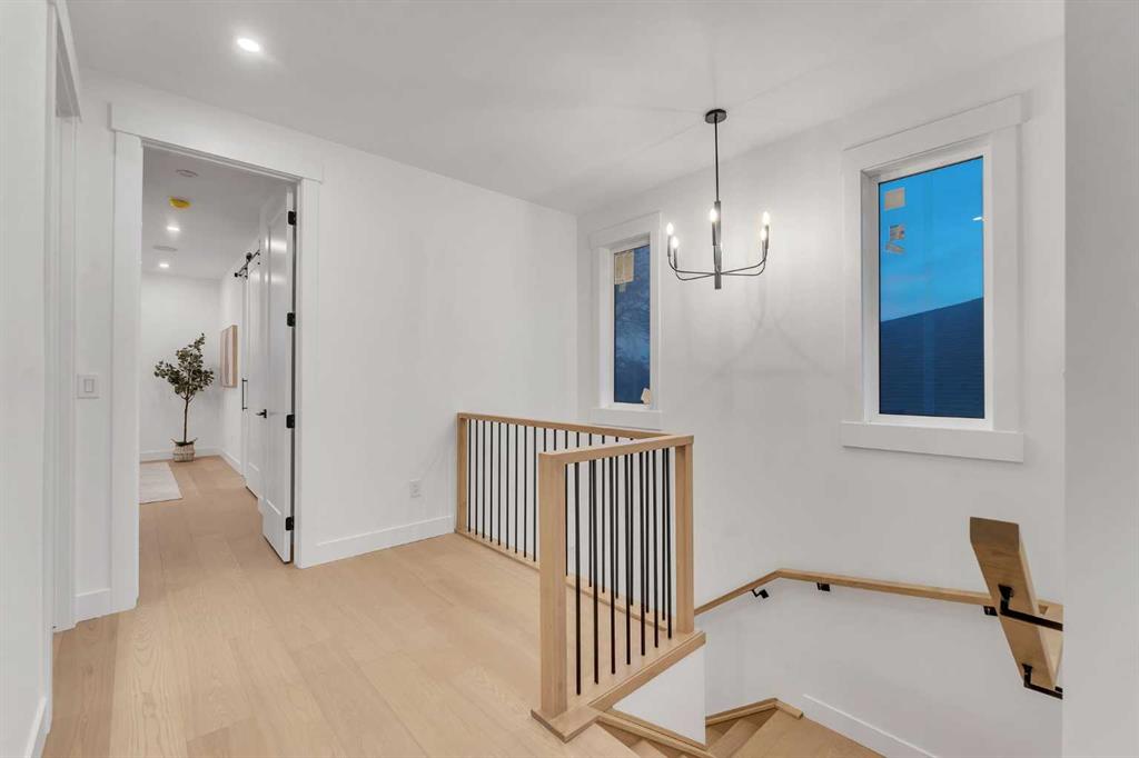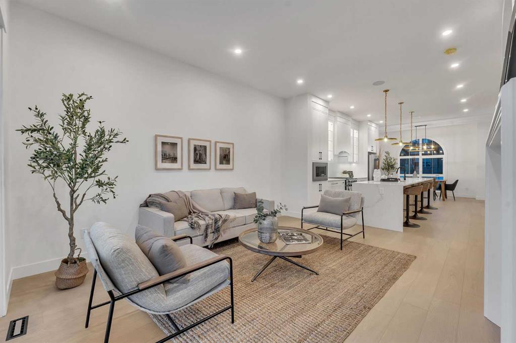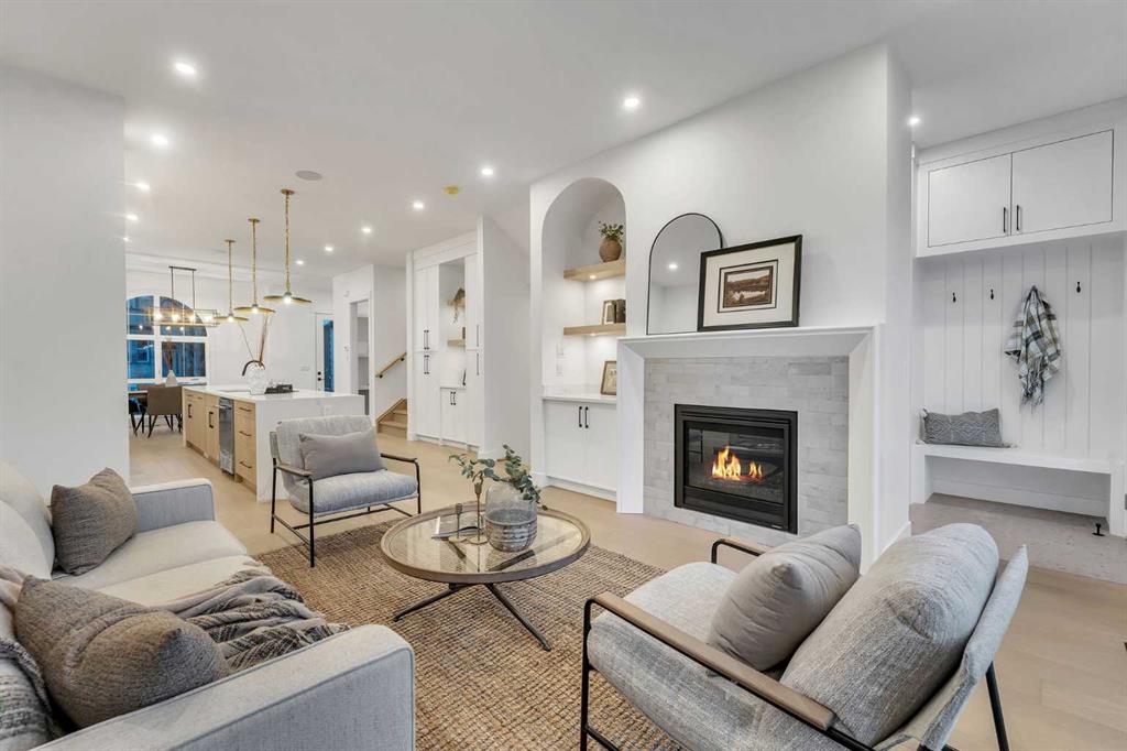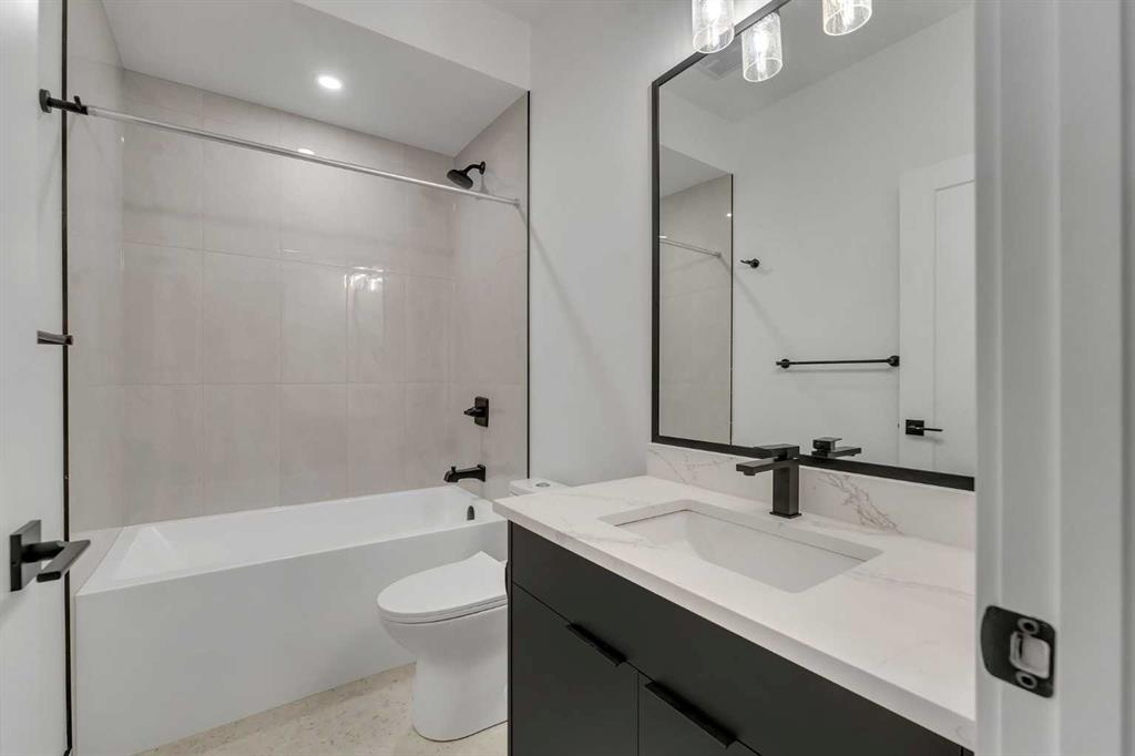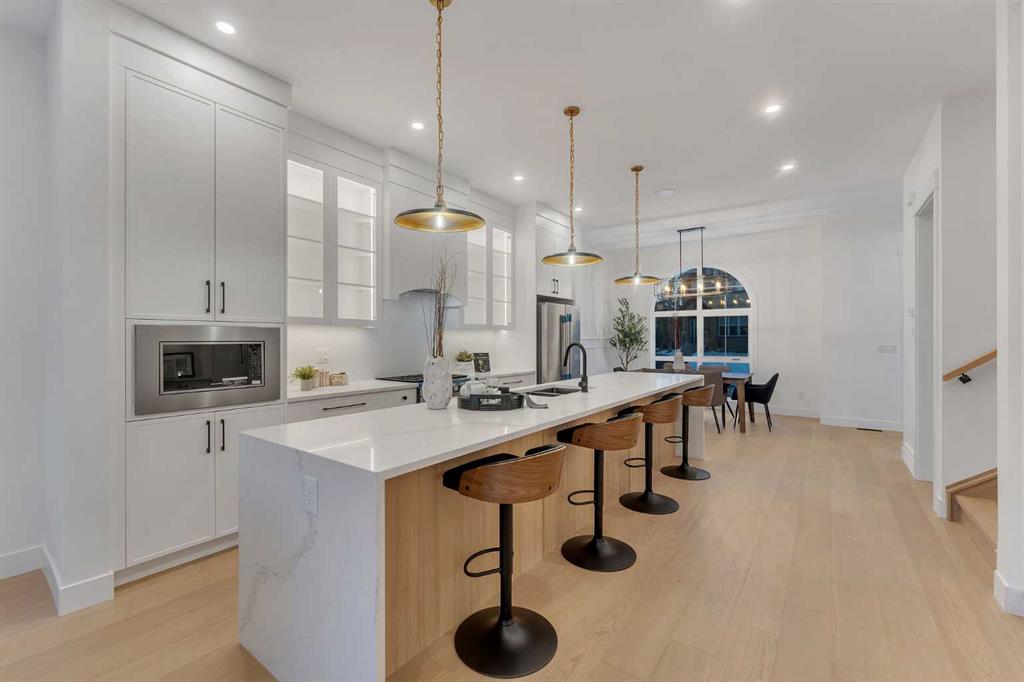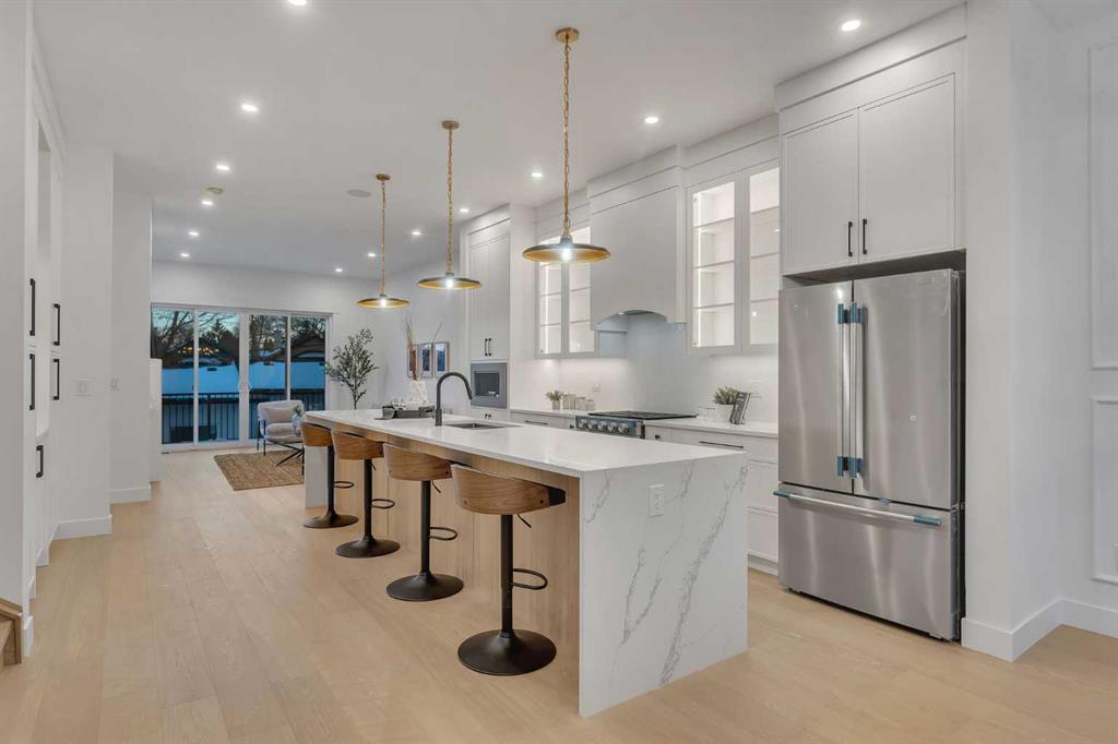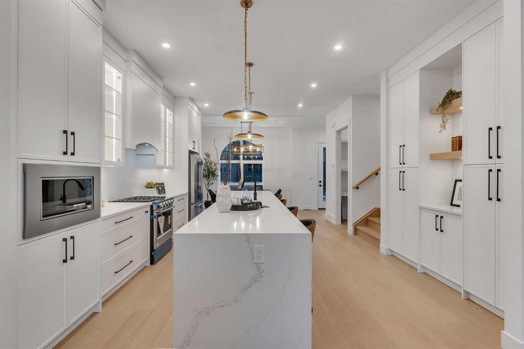 OPEN HOUSE FEB 28 & MAR 1ST 1:30-4PM **FREE A/C INSTALLED IF THE SALE IS FIRM BEFORE MARCH 16TH** IMMEDIATE POSSESSION AVAILABLE | 4 BEDROOMS | 3.5 BATHROOMS | WALK-OUT BASEMENT WITH GYM, REC ROOM & WET BAR | SUNNY SOUTH FACING BACKYARD WITH DOWNTOWN VIEWS | Welcome to this brand-new, move-in ready infill that perfectly blends modern sophistication with smart, functional design and an open concept layout. This home has been thoughtfully curated with high-end finishes, tons of natural light, and a layout that combines luxury with practicality. Stepping inside, you’re greeted with soaring 10-foot ceilings and expansive windows bringing in an array of natural light. The open-concept main floor flows seamlessly, starting with a welcoming foyer featuring custom built-in cabinetry and a bench – offering convenience, storage, and a stylish first impression. The dining area, bathed in sunlight, sets the tone for everything from casual family dinners to elegant hosting. Just steps away from the dining area – the gourmet kitchen is a true centrepiece and a chef’s dream. The kitchen boasts floor-to-ceiling custom cabinetry, quartz countertops, LED under-cabinet and built-in lighting, and top-tier KitchenAid stainless steel appliances. A striking and expansive waterfall island anchors the space – perfect for prepping meals, morning coffees, evening cocktails, or just to get some work done. Extras like a built-in pantry with custom cabinetry, tiled coffee station, and floating shelves with integrated lighting elevate both form and function. Just off the kitchen, you have your own private home office offering a custom glass door and providing a quiet retreat for remote work or study. The spacious living room features a stunning tiled fireplace and oversized double sliding glass patio doors that extend your living space outdoors to the backyard patio offering downtown views – ideal for summer entertaining, morning coffees, or quiet evenings. A well-designed mudroom with built-in cabinets provides additional storage space and helps keep daily essentials organized. A chic powder room with a quartz vanity, designer fixtures, LED under lighting, and stunning wallpaper adds a refined touch to the main floor. Upstairs, the primary suite is a showstopper. Custom detailing, an expansive walk-in closet, and a spa-inspired ensuite with IN-FLOOR HEATING, a quartz double vanity, LED accent lighting, backlit mirror, free-standing tub, and oversized glass shower make this a true retreat. Two additional bedrooms, each with their own spacious walk-in closets, provide cozy, private spaces and share a beautifully appointed four-piece bathroom. A dedicated laundry room with custom cabinetry, quartz countertops, and a sink finish off this masterful upper level. The fully finished WALK-OUT basement is thoughtfully designed and features an additional bedroom, four-piece bathroom, gym/exercise area, a wet bar, and recreation area perfect for additional living space.