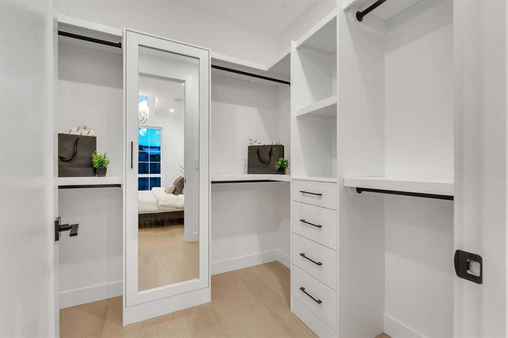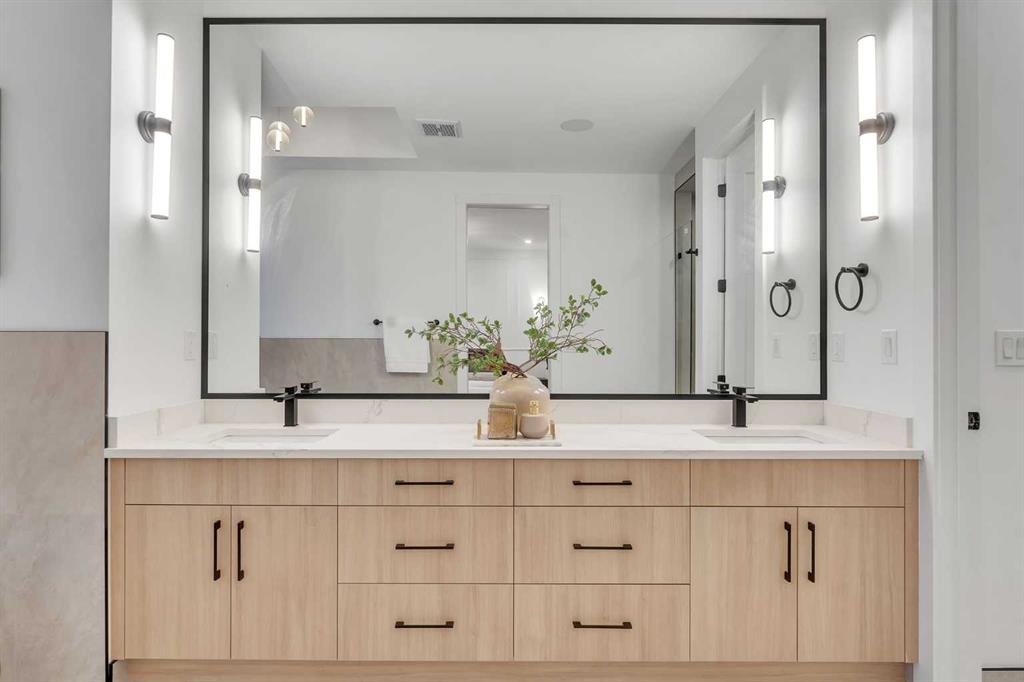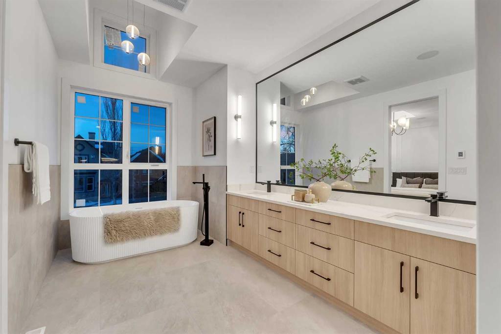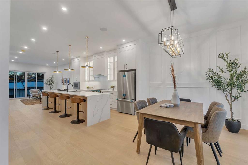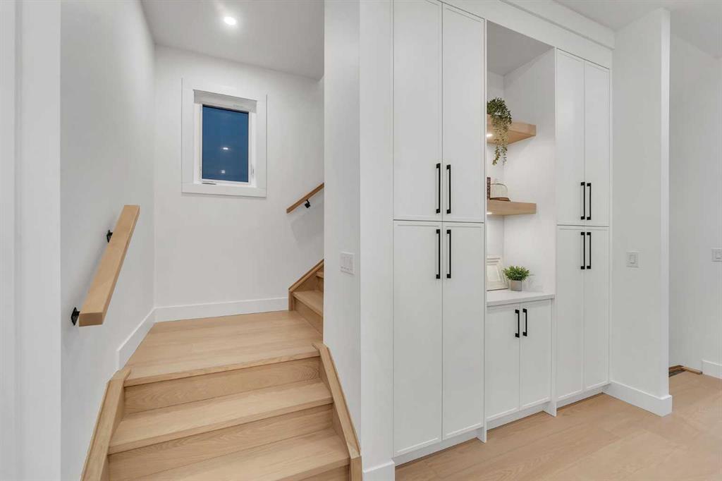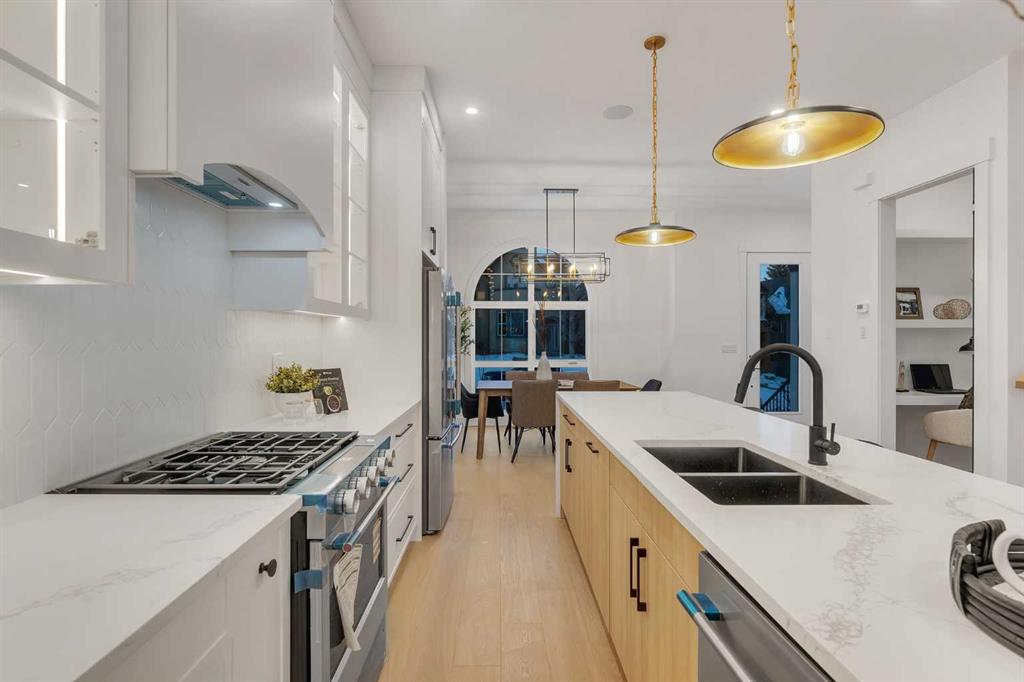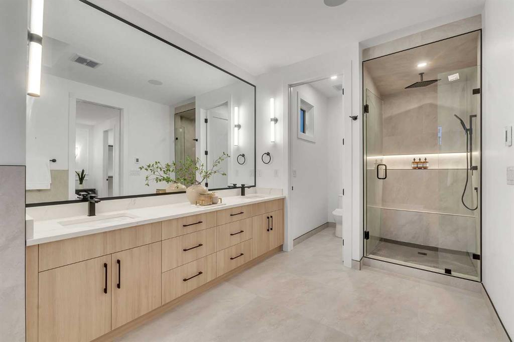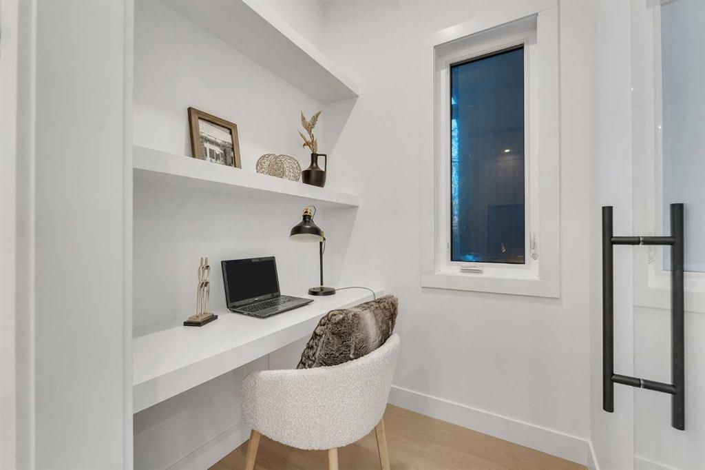 OPEN HOUSE FEB 28 & MAR 1ST 1:30-4PM **FREE A/C INSTALLED IF THE SALE IS FIRM BEFORE MARCH 16TH** IMMEDIATE POSSESSION AVAILABLE | 4 BEDROOMS | 3.5 BATHROOMS | WALK-OUT BASEMENT WITH GYM, REC ROOM & WET BAR | SUNNY SOUTH FACING BACKYARD WITH DOWNTOWN VIEWS | Welcome to this brand-new, move-in ready infill that perfectly blends modern sophistication with smart, functional design and an open concept layout. This home has been thoughtfully curated with high-end finishes, tons of natural light, and a layout that combines luxury with practicality. Stepping inside, you’re greeted with soaring 10-foot ceilings and expansive windows bringing in an array of natural light. The open-concept main floor flows seamlessly, starting with a welcoming foyer featuring custom built-in cabinetry and a bench – offering convenience, storage, and a stylish first impression. The dining area, bathed in sunlight, sets the tone for everything from casual family dinners to elegant hosting. Just steps away from the dining area – the gourmet kitchen is a true centrepiece and a chef’s dream. The kitchen boasts floor-to-ceiling custom cabinetry, quartz countertops, LED under-cabinet and built-in lighting, and top-tier KitchenAid stainless steel appliances. A striking and expansive waterfall island anchors the space – perfect for prepping meals, morning coffees, evening cocktails, or just to get some work done. Extras like a built-in pantry with custom cabinetry, tiled coffee station, and floating shelves with integrated lighting elevate both form and function. Just off the kitchen, you have your own private home office offering a custom glass door and providing a quiet retreat for remote work or study. The spacious living room features a stunning tiled fireplace and oversized double sliding glass patio doors that extend your living space outdoors to the backyard patio offering downtown views – ideal for summer entertaining, morning coffees, or quiet evenings. A well-designed mudroom with built-in cabinets provides additional storage space and helps keep daily essentials organized. A chic powder room with a quartz vanity, designer fixtures, LED under lighting, and stunning wallpaper adds a refined touch to the main floor. Upstairs, the primary suite is a showstopper. Custom detailing, an expansive walk-in closet, and a spa-inspired ensuite with IN-FLOOR HEATING, a quartz double vanity, LED accent lighting, backlit mirror, free-standing tub, and oversized glass shower make this a true retreat. Two additional bedrooms, each with their own spacious walk-in closets, provide cozy, private spaces and share a beautifully appointed four-piece bathroom. A dedicated laundry room with custom cabinetry, quartz countertops, and a sink finish off this masterful upper level. The fully finished WALK-OUT basement is thoughtfully designed and features an additional bedroom, four-piece bathroom, gym/exercise area, a wet bar, and recreation area perfect for additional living space.