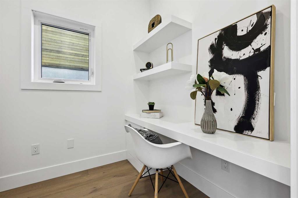 Enter the bright, open-concept main floor, where the living room flows seamlessly into the dining area and a gourmet kitchen. Complete with high-end appliances, quartz countertops, and an oversized island, the kitchen is perfect for entertaining. A main-floor office offers a dedicated space for work or study.