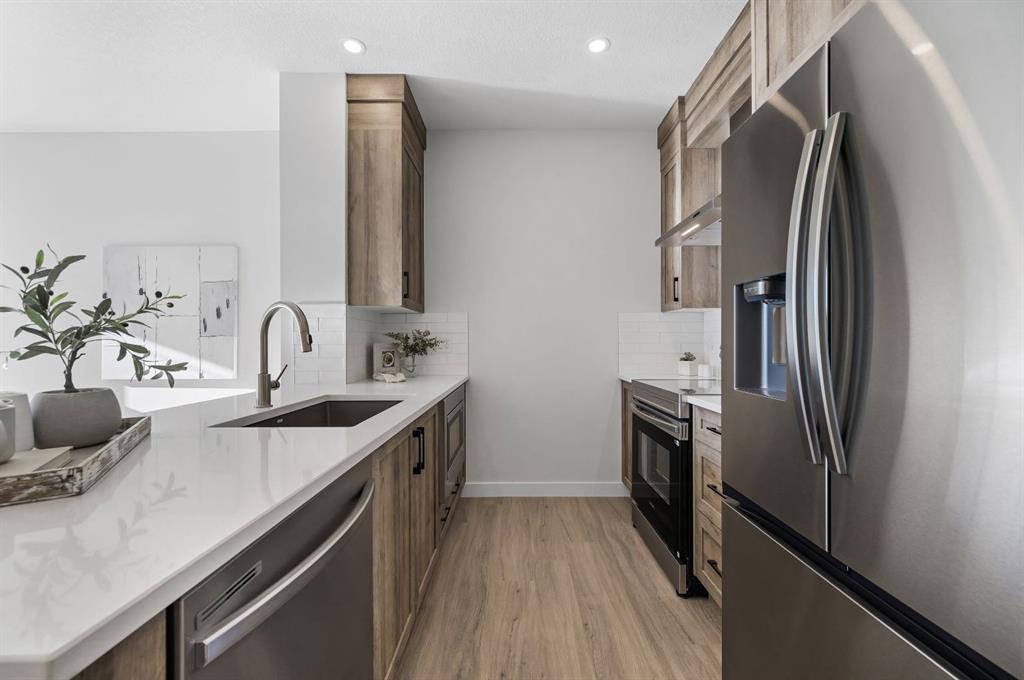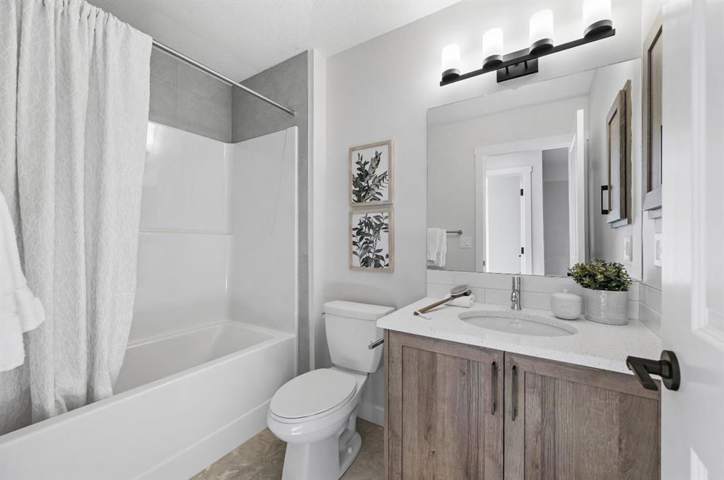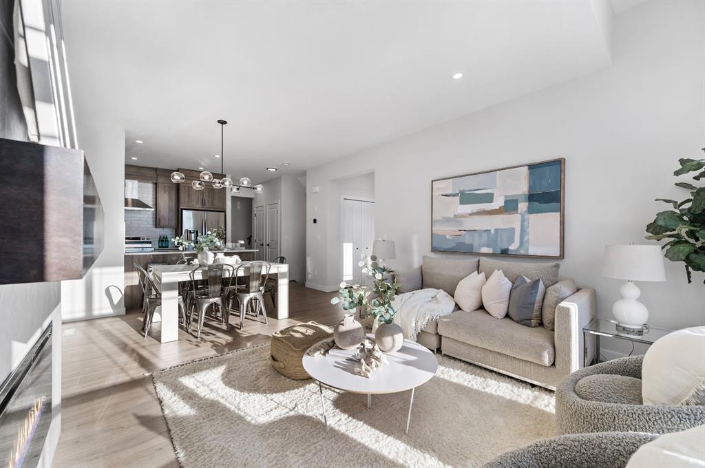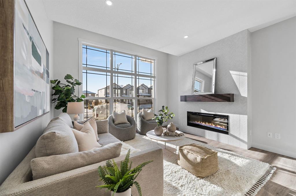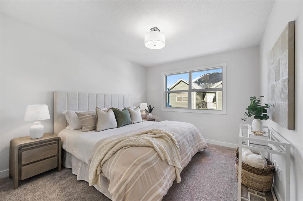 Genesis introduces the Jasper, a street-side luxury townhome with NO CONDO FEES! The Jasper townhome features an attached double garage, a rooftop patio, and low-maintenance living. The tastefully designed home offers over 1400 sq ft. of above-grade living space plus an unfinished basement with 9′ ceilings, ready for your design ideas. On the main floor, you will find soaring ceilings in the open-concept living space and large windows that let natural light flow through. The chef-inspired kitchen offers sleek cabinetry and stone countertops and is well-equipped with stainless steel appliances. The kitchen is open to the dining and living room, perfect for entertaining family and friends. Complimenting the main floor is a convenient half bath, storage and entry from the attached 20 x 22 garage. Venturing upstairs, you will find a spacious primary retreat with a spa-like ensuite, a spacious shower, and a generous walk-in closet. Two additional bedrooms, a full bath, a 4-piece bath and laundry complete the upper level. Outside, enjoy spending time on your upper rooftop patio, which is situated above the garage. Bayview is a beautiful community with parks, benches and pathways that meander throughout the community and along the canals. Kids and adults alike will enjoy the outdoor basketball nets, gym, amphitheatre, and tennis courts, which convert into a skating rink in the winter. Come and see all the amenities the community offers for yourself! Area size was calculated by applying the RMS to the blueprints provided by the builder.
