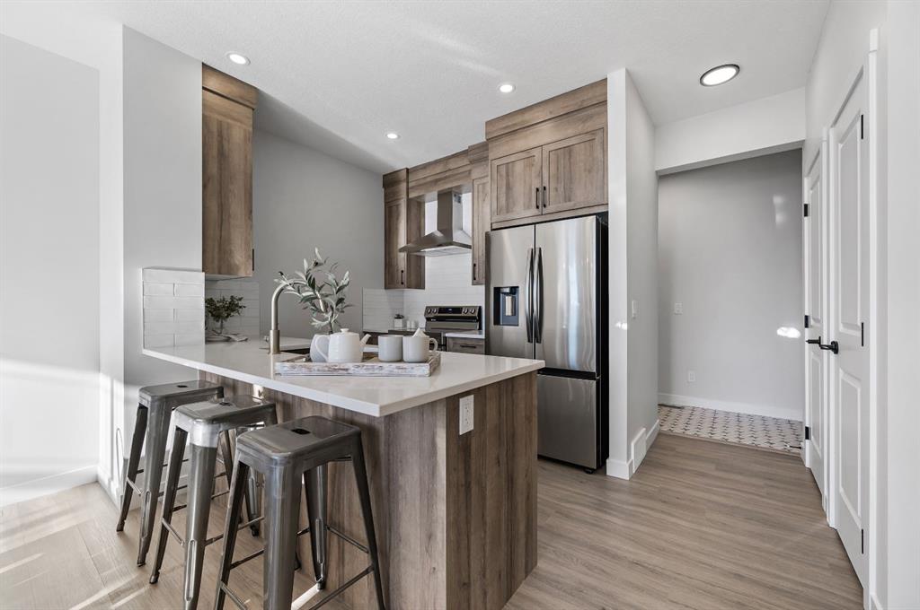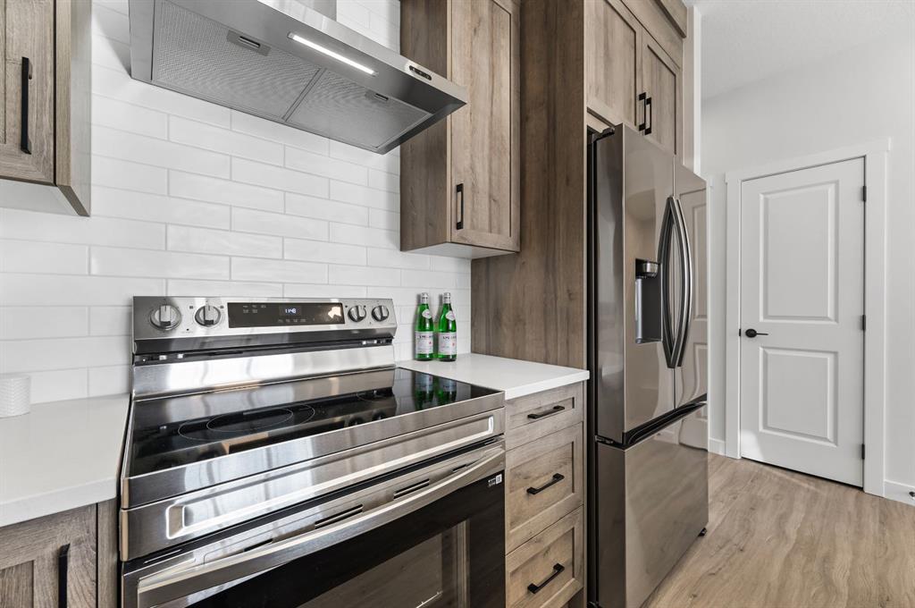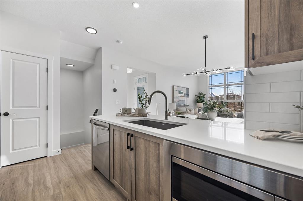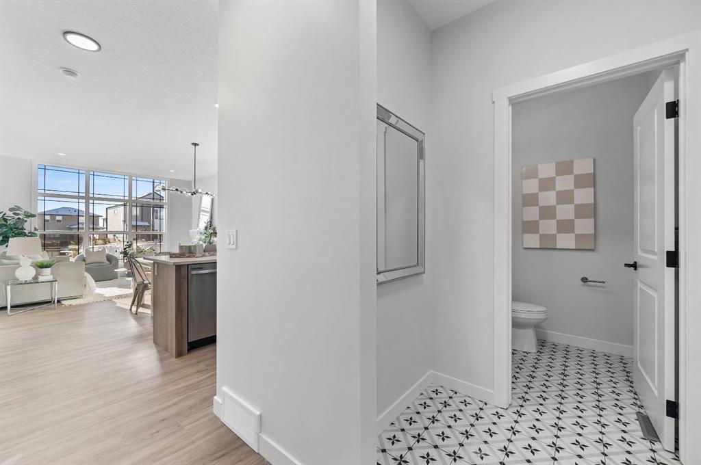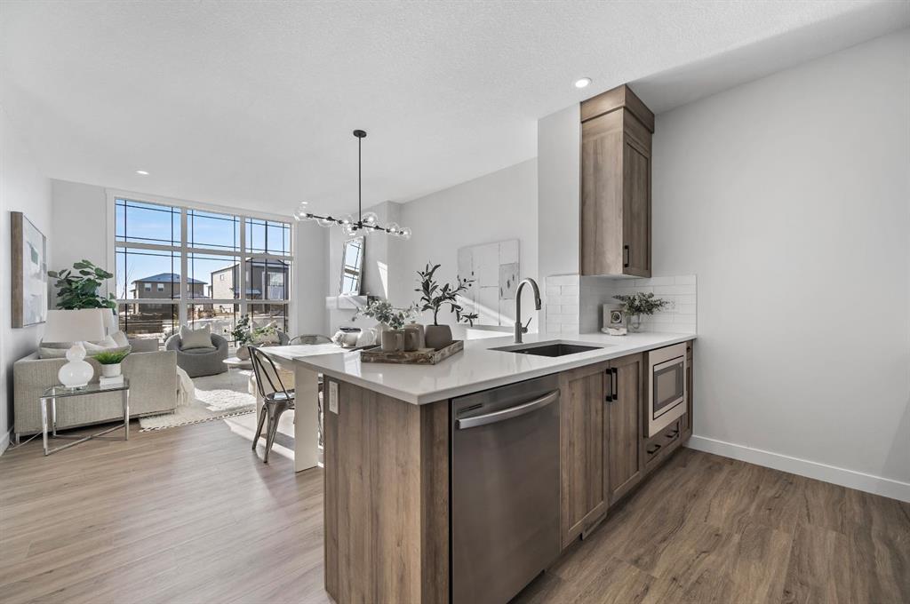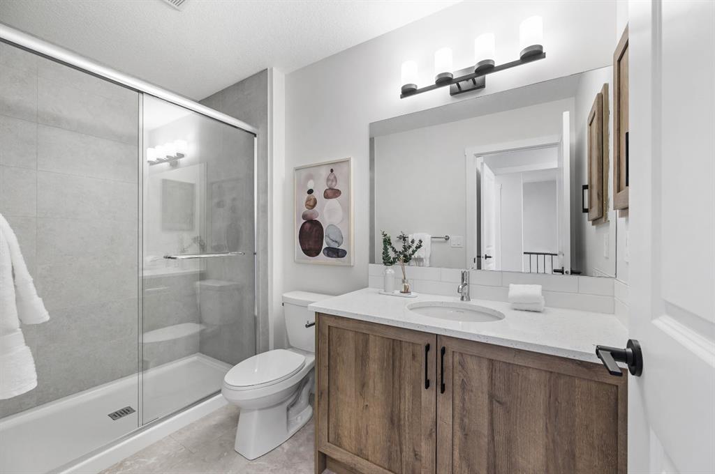 Genesis introduces the Jasper, a street-side luxury townhome with NO CONDO FEES! The Jasper townhome features an attached double garage, a rooftop patio, and low-maintenance living. The tastefully designed home offers over 1400 sq ft. of above-grade living space plus an unfinished basement with 9′ ceilings, ready for your design ideas. On the main floor, you will find soaring ceilings in the open-concept living space and large windows that let natural light flow through. The chef-inspired kitchen offers sleek cabinetry and stone countertops and is well-equipped with stainless steel appliances. The kitchen is open to the dining and living room, perfect for entertaining family and friends. Complimenting the main floor is a convenient half bath, storage and entry from the attached 20 x 22 garage. Venturing upstairs, you will find a spacious primary retreat with a spa-like ensuite, a spacious shower, and a generous walk-in closet. Two additional bedrooms, a full bath, a 4-piece bath and laundry complete the upper level. Outside, enjoy spending time on your upper rooftop patio, which is situated above the garage. Bayview is a beautiful community with parks, benches and pathways that meander throughout the community and along the canals. Kids and adults alike will enjoy the outdoor basketball nets, gym, amphitheatre, and tennis courts, which convert into a skating rink in the winter. Come and see all the amenities the community offers for yourself! Area size was calculated by applying the RMS to the blueprints provided by the builder.