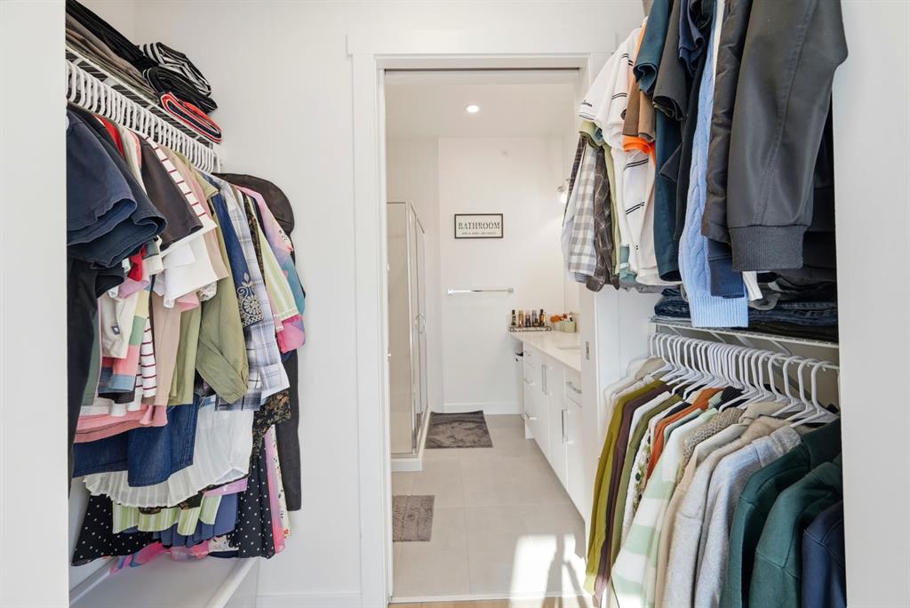This level further includes a comfortable sitting area with access to a private east-facing balcony, perfect for enjoying your morning coffee or relaxing in the evening. Elegant metal spindle railings add a modern architectural touch to the main floor, enhancing the overall aesthetic appeal. A convenient stackable laundry area completes this level.