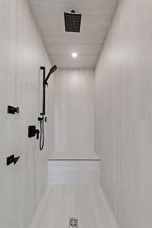 At the back of the home, a mudroom with sleek built-in storage & bench seating adds everyday convenience without compromising the streamlined design.