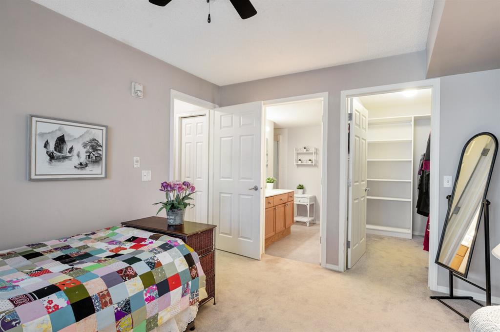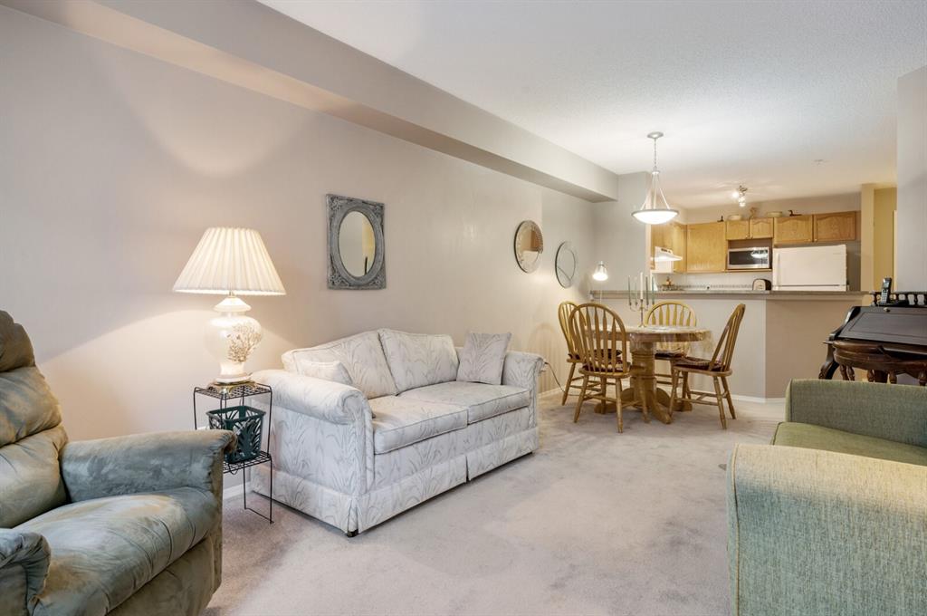 Welcome to this 2 bedroom plus den 2 bathroom in sought after Arbour Lake Landing. Note the pride of ownership as you enter. This home boasts an open kitchen with raised eating bar, dining area and large living room. The living area opens out to the spacious and very private deck (11’2″x7’8″) nestled in the evergreens. The master bedroom has a large walk-in closet with beautiful built in shelving with organizer and 3 piece en suite with shower. The second bedroom offers a custom built in cupboard in addition to a closet organizer. Enjoy additional space in the den or flex room with glass window allowing light to flood the den from the hallway. A four piece bath finishes this area There is an underground assigned parking space #262 conveniently located close to the elevator, storage locker #30, bike rack, along with exercise/amenities room located off the parkade just steps from the elevator. Close to all amenities including: Arbour Lake offering boating, swimming, paddle boarding, kayaking, skating and tennis, pickleball & tennis courts (your HOA allows you access to Arbour Lake), Crowfoot Center with shopping and restaurant, YMCA, and c-train.
