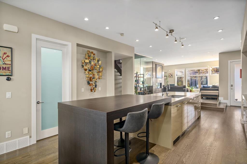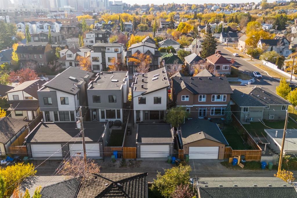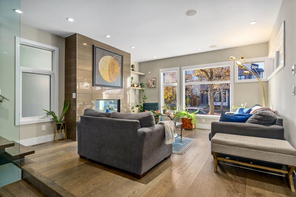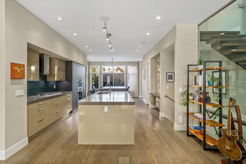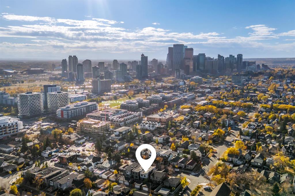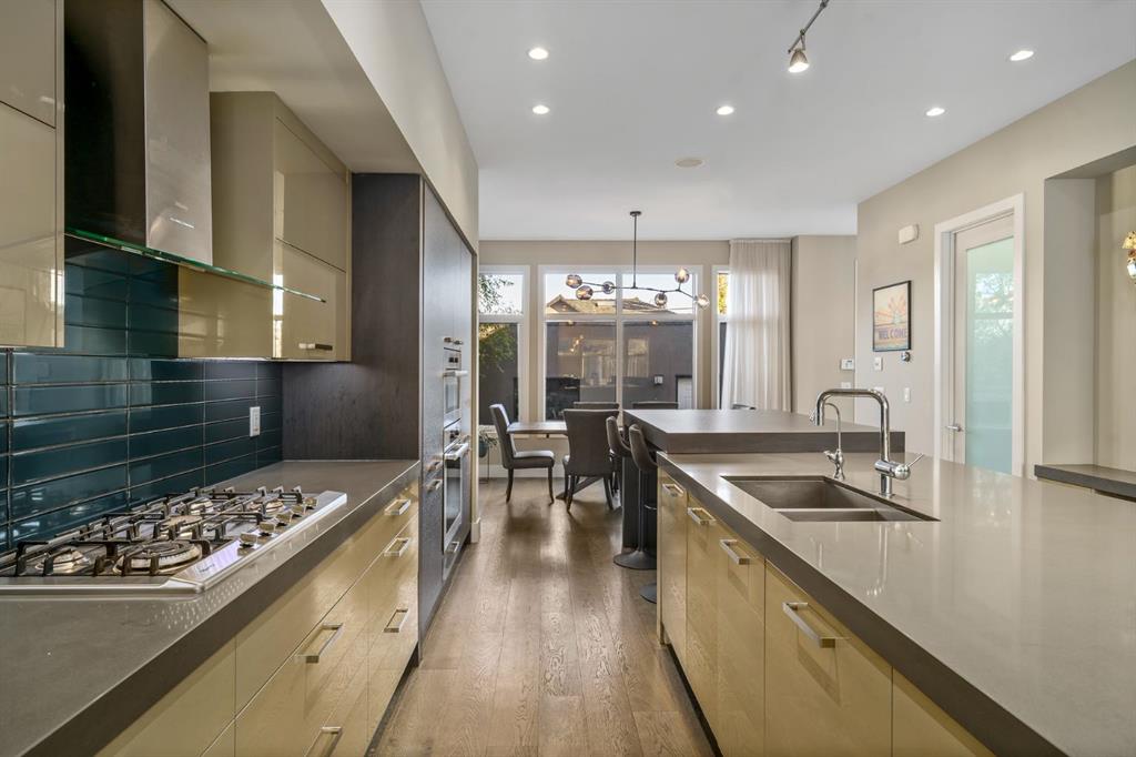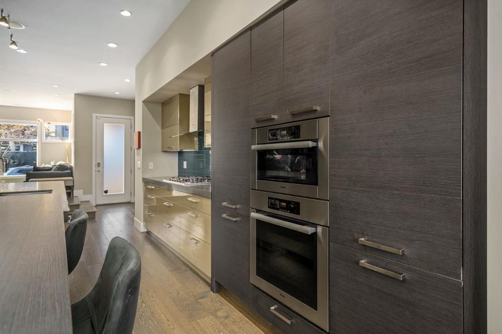 OPEN HOUSE Saturday Oct 25th 2-4PM! Welcome to this spectacular custom built residence by Panache Homes: a fully finished, fully loaded inner-city retreat that perfectly balances modern luxury with stylish functionality. Situated in the vibrant, walkable community of Bridgeland, this contemporary 2-storey home is a rare find, offering upscale design, premium finishings, and exceptional living space across all three levels. Step inside to a bright, open-concept main floor with soaring 10-foot ceilings and dark oak wide-plank hardwood floors that set a tone of understated elegance. The European-inspired kitchen is a true showstopper, complete with professional-grade Miele appliances, integrated fridge, gas cooktop, sleek tile backsplash, Caesarstone quartz countertops, custom oak cabinetry, a massive center island with seating, and a full walk-in pantry; perfect for hosting or simply elevating your everyday. An illuminated back dining area connects to the mudroom and out into the rear patio and private backyard space with built-in gas line—ideal for grilling or evening lounging. The expansive kitchen space flows effortlessly into the stunning living room, featuring a gas fireplace focal point, built-in shelving/bookcase feature, and oversized windows that fill the home with natural light. Ascend the open riser staircase to a dazzling pendant light up top, where you’ll find three spacious bedrooms, including a west-facing primary retreat with a vaulted ceiling, dreamy walk-in closet, and a decadent 5-piece ensuite spa with in-floor heating. A central loft area with skylight adds flexibility and privacy, separating the primary from two additional bedrooms, a stylish 4-piece bath, and a convenient upper laundry room. The fully developed lower level is an entertainer’s dream featuring extra-high ceilings, a large family/media room with 5.1 theatre surround sound, wet bar, dedicated fitness area with mirrors, a 4th bedroom and an additional 4-piece bathroom with a steam shower. It’s also roughed-in for in-floor heating, offering future comfort and efficiency. The cherry on top is a drywalled and insulated double detached garage, along with numerous upgrades including new A/C, furnace, hot water tank, water softener and improvement to the exterior grading. This home is not just a place to live—it’s a lifestyle. Located in one of Calgary’s most desirable communities, mere steps from Bridgeland Market, Lil Empire, Made by Marcus, and an array of coffee shops, restaurants, and parks, along with the Bow River pathway network and the Downtown Core. Homes of this quality, in this location, rarely become available—don’t miss your chance to make it yours.