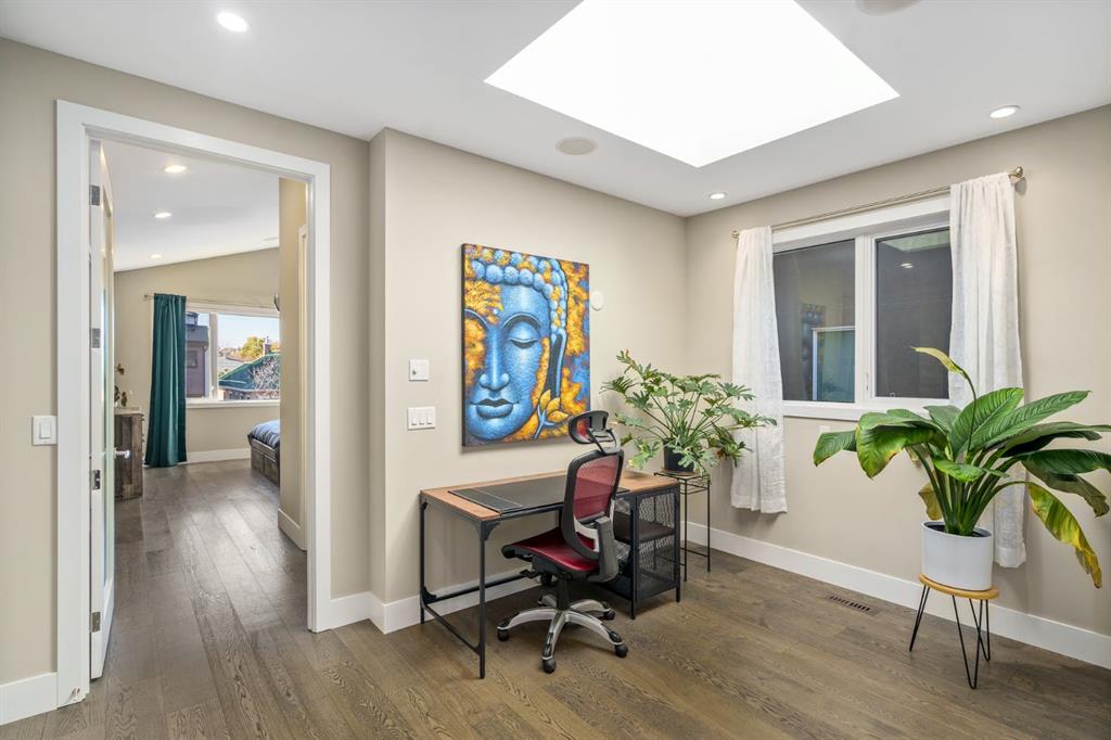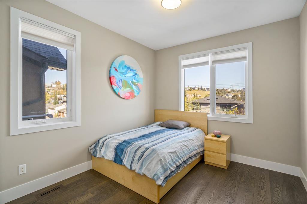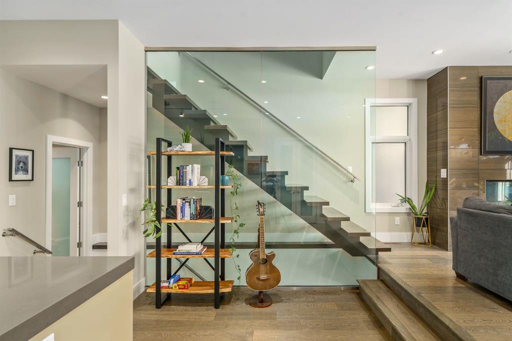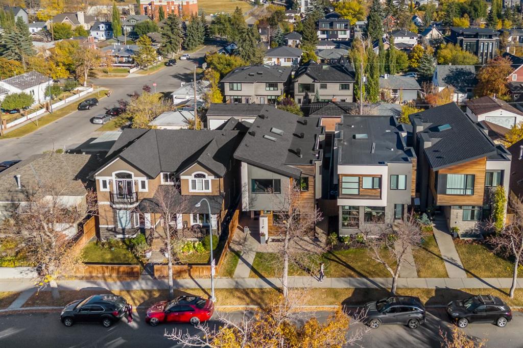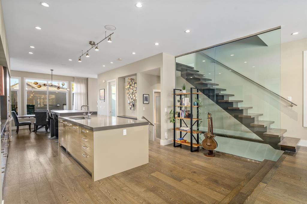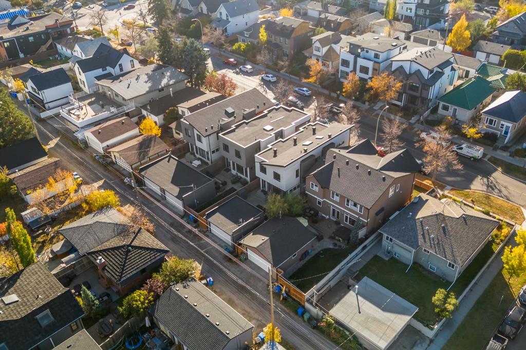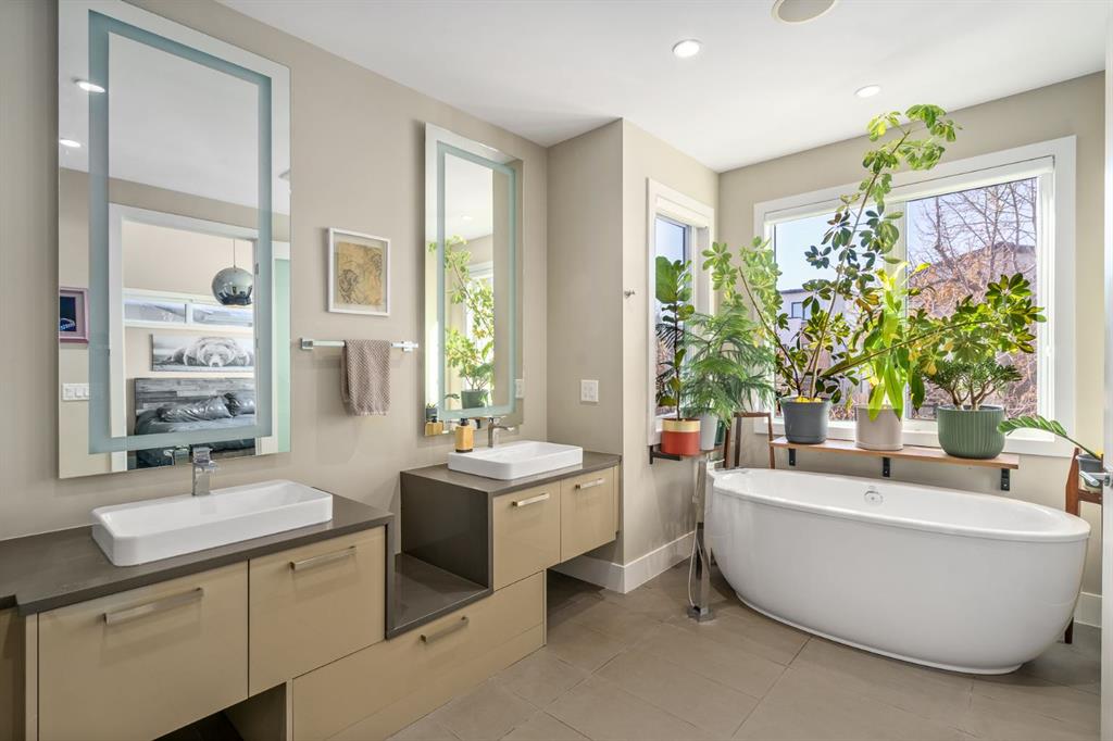 OPEN HOUSE Saturday Oct 25th 2-4PM! Welcome to this spectacular custom built residence by Panache Homes: a fully finished, fully loaded inner-city retreat that perfectly balances modern luxury with stylish functionality. Situated in the vibrant, walkable community of Bridgeland, this contemporary 2-storey home is a rare find, offering upscale design, premium finishings, and exceptional living space across all three levels. Step inside to a bright, open-concept main floor with soaring 10-foot ceilings and dark oak wide-plank hardwood floors that set a tone of understated elegance. The European-inspired kitchen is a true showstopper, complete with professional-grade Miele appliances, integrated fridge, gas cooktop, sleek tile backsplash, Caesarstone quartz countertops, custom oak cabinetry, a massive center island with seating, and a full walk-in pantry; perfect for hosting or simply elevating your everyday. An illuminated back dining area connects to the mudroom and out into the rear patio and private backyard space with built-in gas line—ideal for grilling or evening lounging. The expansive kitchen space flows effortlessly into the stunning living room, featuring a gas fireplace focal point, built-in shelving/bookcase feature, and oversized windows that fill the home with natural light. Ascend the open riser staircase to a dazzling pendant light up top, where you’ll find three spacious bedrooms, including a west-facing primary retreat with a vaulted ceiling, dreamy walk-in closet, and a decadent 5-piece ensuite spa with in-floor heating. A central loft area with skylight adds flexibility and privacy, separating the primary from two additional bedrooms, a stylish 4-piece bath, and a convenient upper laundry room. The fully developed lower level is an entertainer’s dream featuring extra-high ceilings, a large family/media room with 5.1 theatre surround sound, wet bar, dedicated fitness area with mirrors, a 4th bedroom and an additional 4-piece bathroom with a steam shower. It’s also roughed-in for in-floor heating, offering future comfort and efficiency. The cherry on top is a drywalled and insulated double detached garage, along with numerous upgrades including new A/C, furnace, hot water tank, water softener and improvement to the exterior grading. This home is not just a place to live—it’s a lifestyle. Located in one of Calgary’s most desirable communities, mere steps from Bridgeland Market, Lil Empire, Made by Marcus, and an array of coffee shops, restaurants, and parks, along with the Bow River pathway network and the Downtown Core. Homes of this quality, in this location, rarely become available—don’t miss your chance to make it yours.