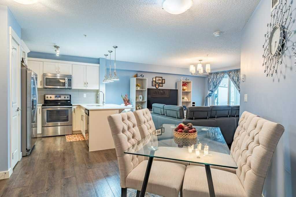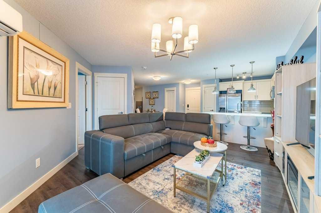 Welcome home to this bright and spacious 2-bedroom + den suite featuring an open-concept floor plan, sunny south exposure, and true move-in-ready condition. Located in one of Calgary’s best communities – Auburn Bay featuring LAKE ACCESS that offers a wide range of fantastic outdoor activities for both Summer & Winter and proximity to South Health Campus, shopping and restaurants. Thoughtfully designed with durable vinyl plank flooring, in-suite air conditioning, and abundant natural light throughout