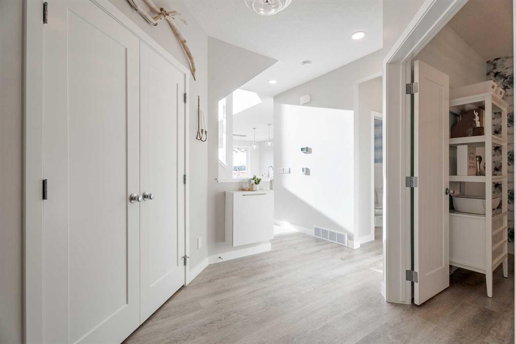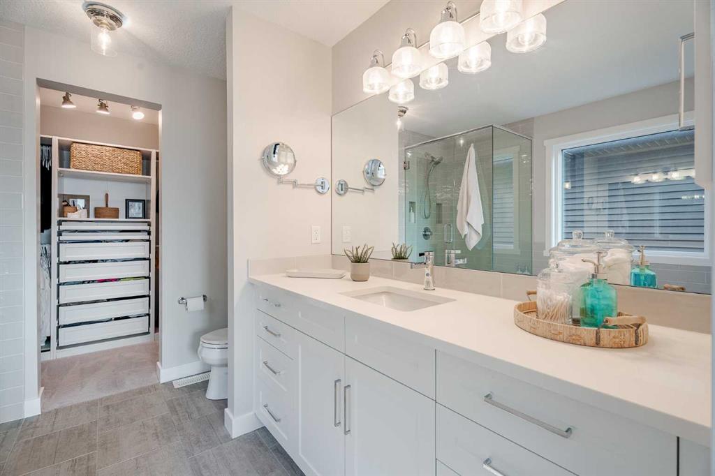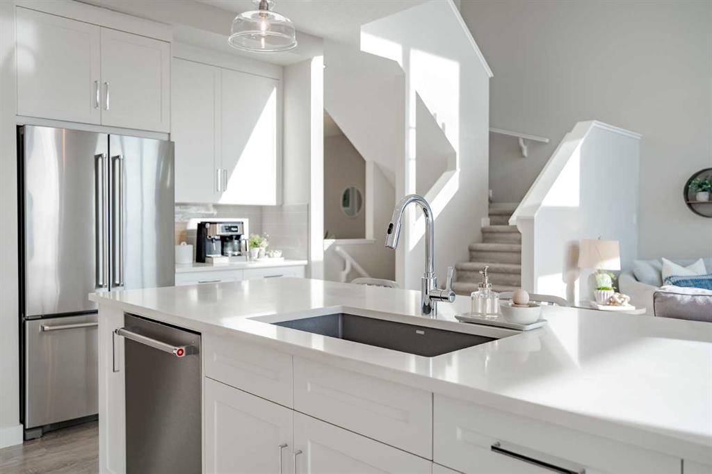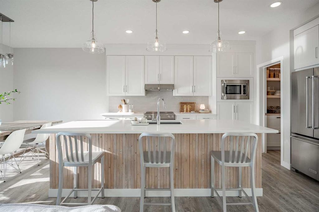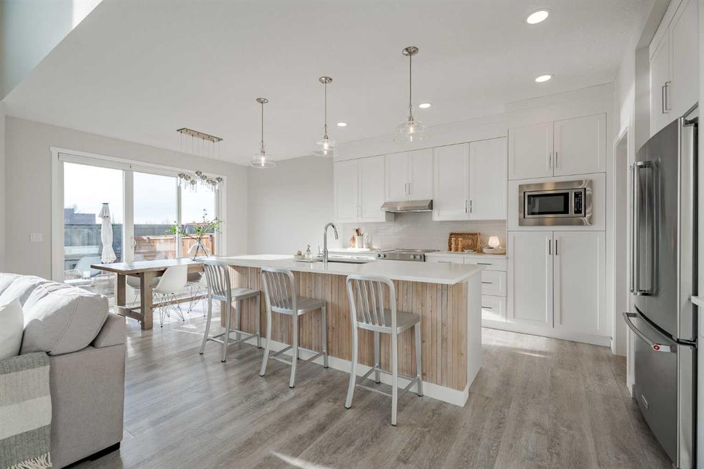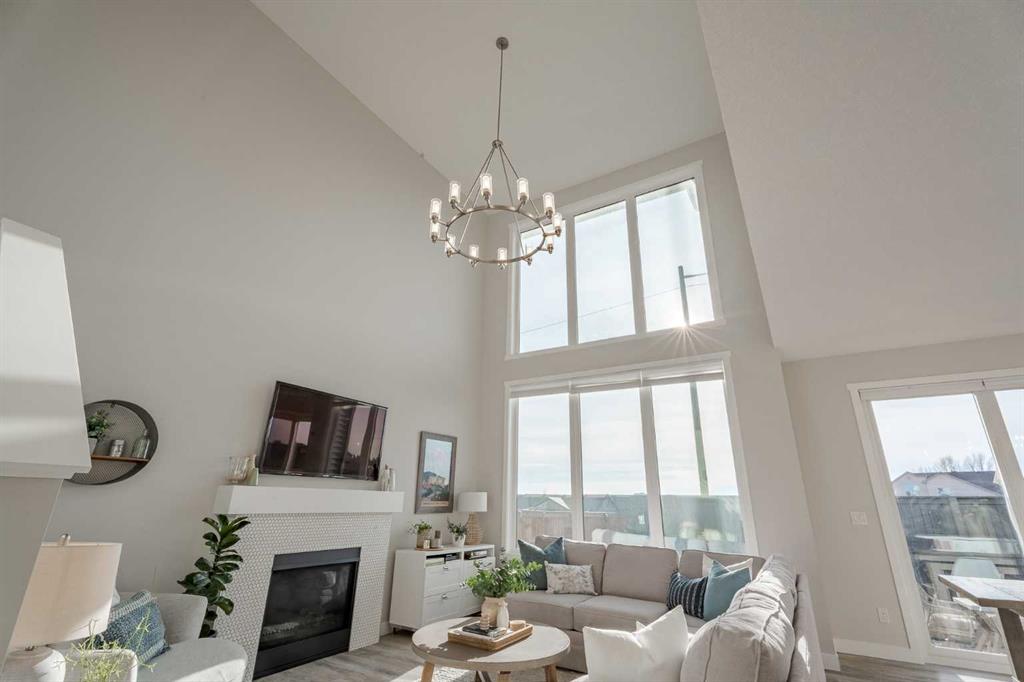 Welcome home to this stunning property in one of Airdrie’s most loved south communities, Kings Heights; with easy and quick access to Deerfoot. Perfectly tucked away on a quiet crescent, this home backs onto beautiful acreage properties, offering a rare sense of space and peaceful, country-style living just minutes from Kingsview Market, its amenities, and a nice selection of nearby schools. Inside, soaring two-storey windows flood the main living area with natural light — a breathtaking view you can also enjoy from the second level. The main floor features ultra-durable laminate floors, a spacious living room centered around a stunning feature fireplace, and a chef’s kitchen with upgraded appliances, and sleek quartz counter throughout. A main floor office/den conveniently placed by the front entrance provides an ideal space for work or study. Upstairs, you’ll find three spacious bedrooms, including a primary suite with a large walk-in closet with built-ins and a spa-inspired 5pc ensuite. You’ll love the open view of the main living area below, where sunlight pours through the dramatic windows. A spacious vaulted ceiling bonus room, along with wainscoting and feature walls throughout, add timeless charm and a perfect amount of living space. The undeveloped basement with a rough-in bathroom awaits your finishing ideas, while the double attached garage provides everyday convenience. Step outside to a large backyard with plenty of room to play, relax, and grow. This home perfectly blends light, luxury, and livability, offering the warmth of country charm with the convenience of city life.