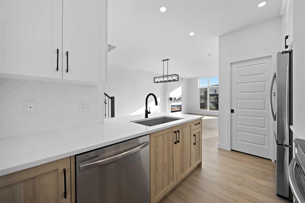 Welcome to 2226 Bayview Drive, the “Eli” – the largest floor plan option available by Genesis Builders Group. This beautifully finished NO CONDO FEE street-side townhome offers almost 1600 sq ft. of well-designed living space with 3 bedrooms, 2.5 bathrooms and a flex space on the 2nd floor, plus an unfinished basement with 9-foot ceilings, ready for your ideas. Large windows and soaring ceilings on the main floor let natural light fill the open-concept living space. The chef-inspired kitchen features sleek cabinetry and stone countertops and is well-equipped with stainless-steel appliances. The kitchen is tucked away yet still feels open and inviting, providing ample room for activities in the open-concept dining and living room. A floor-to-ceiling tiled fireplace is the living room’s focal point. Complementing the main floor is a convenient half bath, storage, and access to the attached double garage, which is large enough for a truck. Venturing upstairs, you will find a spacious primary retreat with a spa-like ensuite featuring a shower, his-and-hers sinks, and a walk-in closet. Two additional bedrooms, a full bathroom, a flex room, a 4-piece bathroom, and laundry facilities complete the upper level. Enjoy spending time on your upper rooftop patio, situated above the garage, which is an excellent space for entertaining. Bayview is a beautiful community with parks, benches and pathways that meander throughout the community and along the canals. Kids and adults alike will enjoy the outdoor basketball nets, gym, amphitheatre, and tennis courts, which will convert into a skating rink in the winter. Come and see for yourself all the amenities the community has to offer! *RMS has been applied to the construction drawings provided by the builder. Taxes to be assessed*