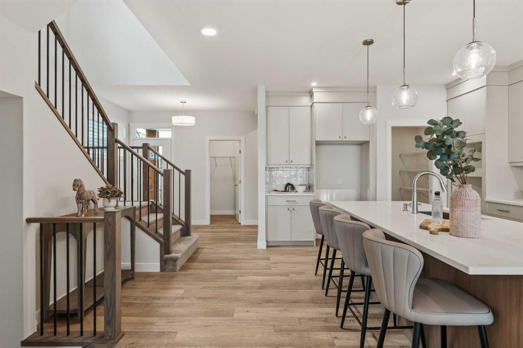 The stunning Columbia 24 model, built by Brookfield Residential, has been thoughtfully designed with an incredibly functional layout. Featuring an open-concept main living space, it boasts an expansive gourmet kitchen with an oversized island, endless storage, and a main-level office/flex room with french doors for added privacy! With nearly 2,500 square feet of living space above grade, this property is ideal for those looking to upsize to a more spacious home without compromising on features. This home offers 3 bedrooms above grade, 2.5 bathrooms, and a basement with 9′ foundation walls and a private side entrance – offering limitless potential. The kitchen features beautiful timeless cabinets, warm quartz countertops and sleek tile backsplash. A suite of built-in appliances, including a chimney hood fan, built-in cooktop, wall oven, and microwave, complete the kitchen. The large main level living area offers ample room for all your furniture and includes a central dining area that divides the living room and kitchen. Rounding out the main level is a rear office overlooking the south-facing backyard, a spacious walk-through pantry, a mudroom off the garage, a walk-in front closet, and a 2-piece powder room. On the upper level you’ll find a central bonus room separating the primary bedroom from the secondary rooms. The primary suite is a private retreat, featuring a massive walk-in closet and a luxurious 5-piece ensuite, complete with a large soaker tub, walk-in tiled shower, dual sinks, and a private water closet. Two more bedrooms (1 with a vaulted ceiling) each complete with their own walk-in closets, a full main bathroom, and an oversized laundry room with ample workspace completes the second level. The basement is a blank canvas, ready for the new owner’s imagination. It comes equipped with 9-foot foundation walls and rough-ins for a bathroom, laundry and sink – making future development easier. This stunning home is steps away from major amenities adding to your everyday convenience. **Please note: photos are from a show home model and are not an exact representation of the property for sale – estimated possession is Summer 2025! Interior selections are noted in the last photo.